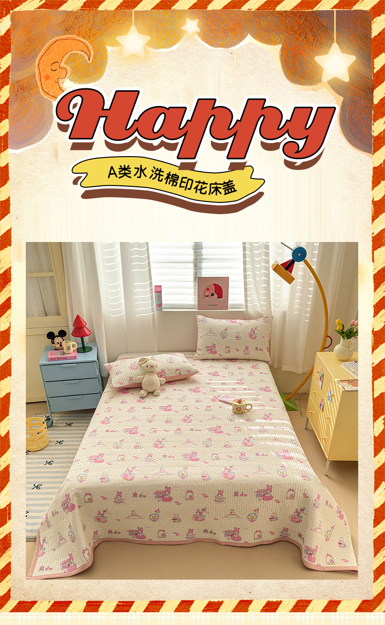 罗亿家纺 2025新款水洗棉双层纱夹棉绗缝床盖(提供买家秀) 小美摩天轮
