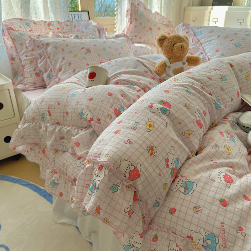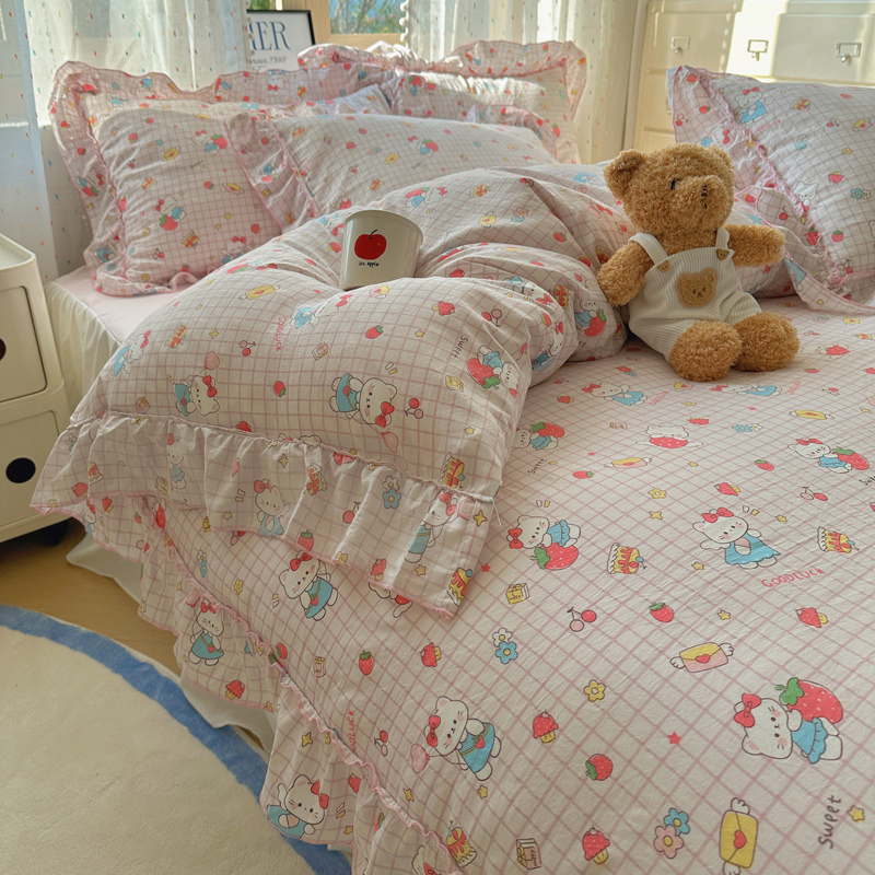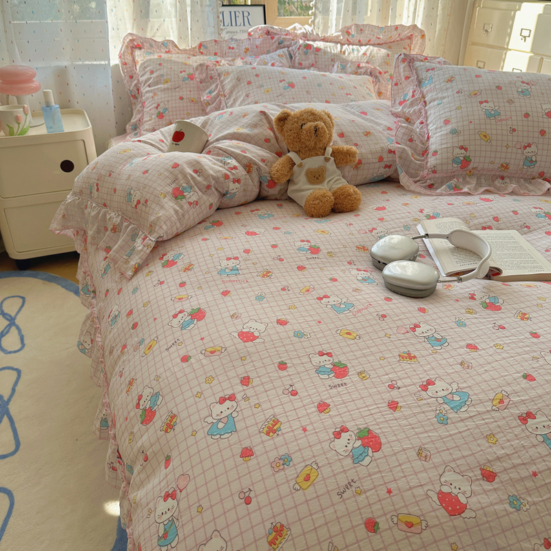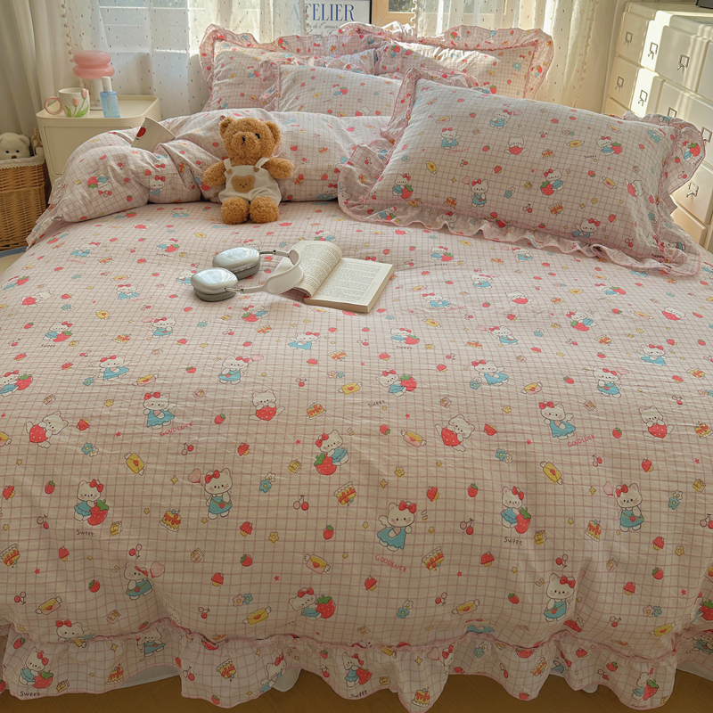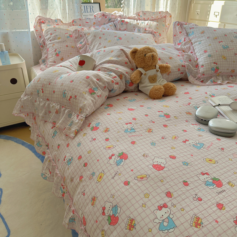 当前位置: 91家纺网 > 商品网购 > 床品套件 > 四件套 > 其它四件套 > 盼季家纺 2025新款公主风花边小清新水洗棉床上四件套床单被套床裙三件套-风格二 格格猫咪