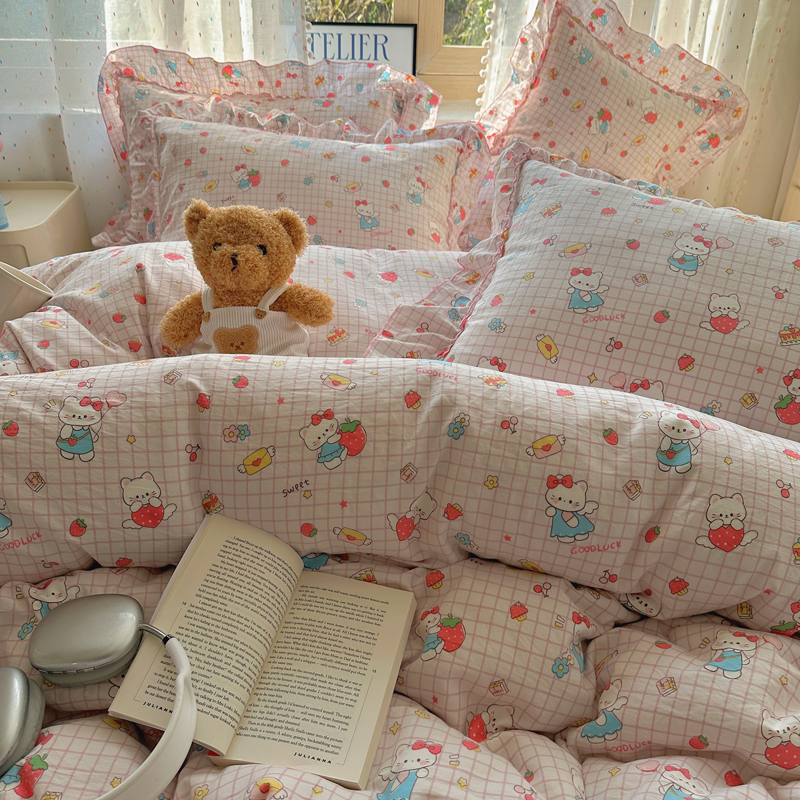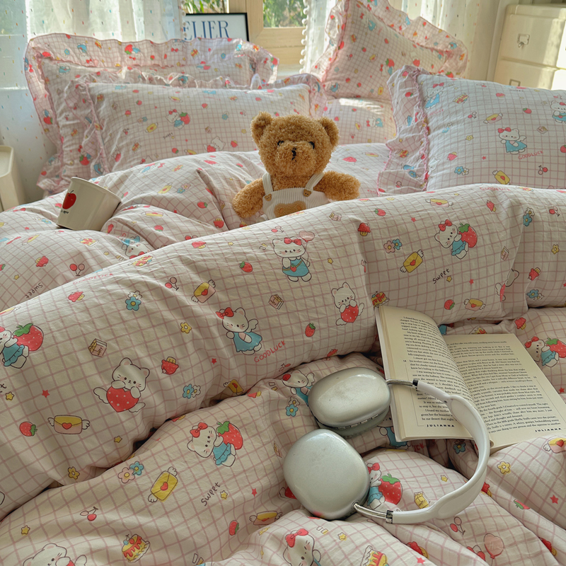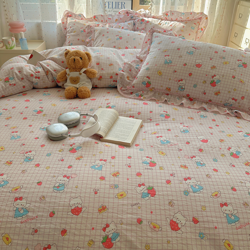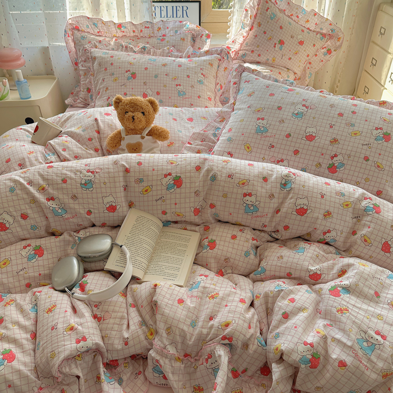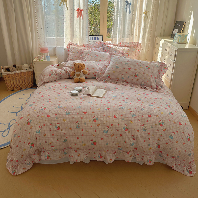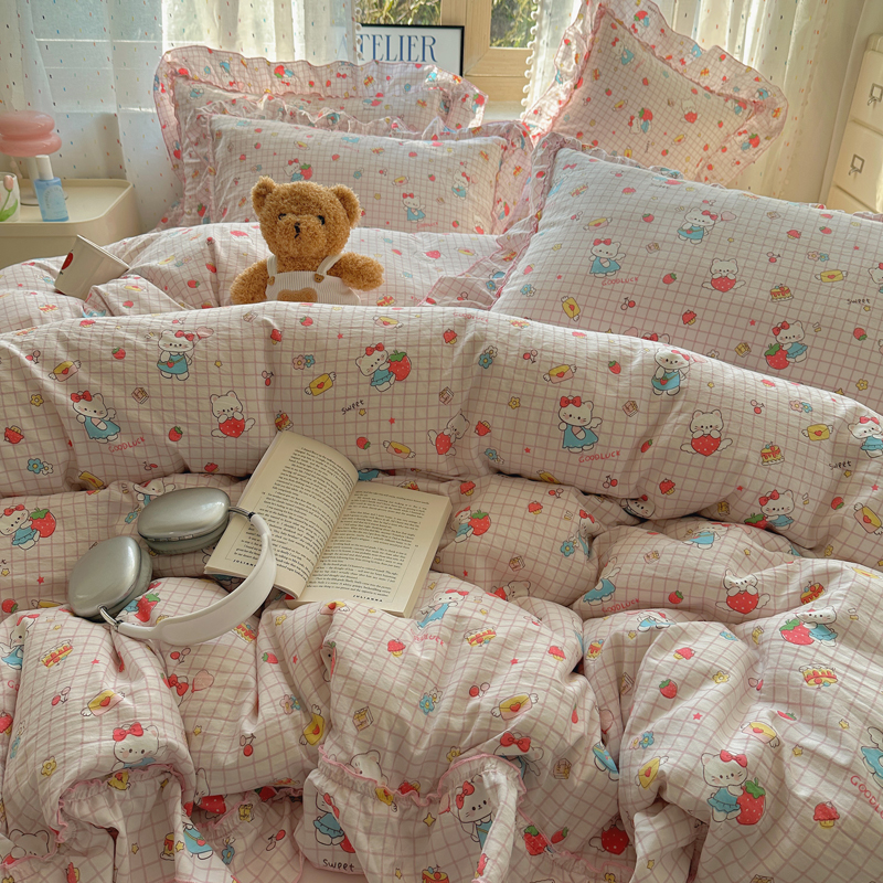 当前位置: 91家纺网 > 商品网购 > 床品套件 > 四件套 > 其它四件套 > 盼季家纺 2025新款公主风花边小清新水洗棉床上四件套床单被套床裙三件套-风格二 格格猫咪