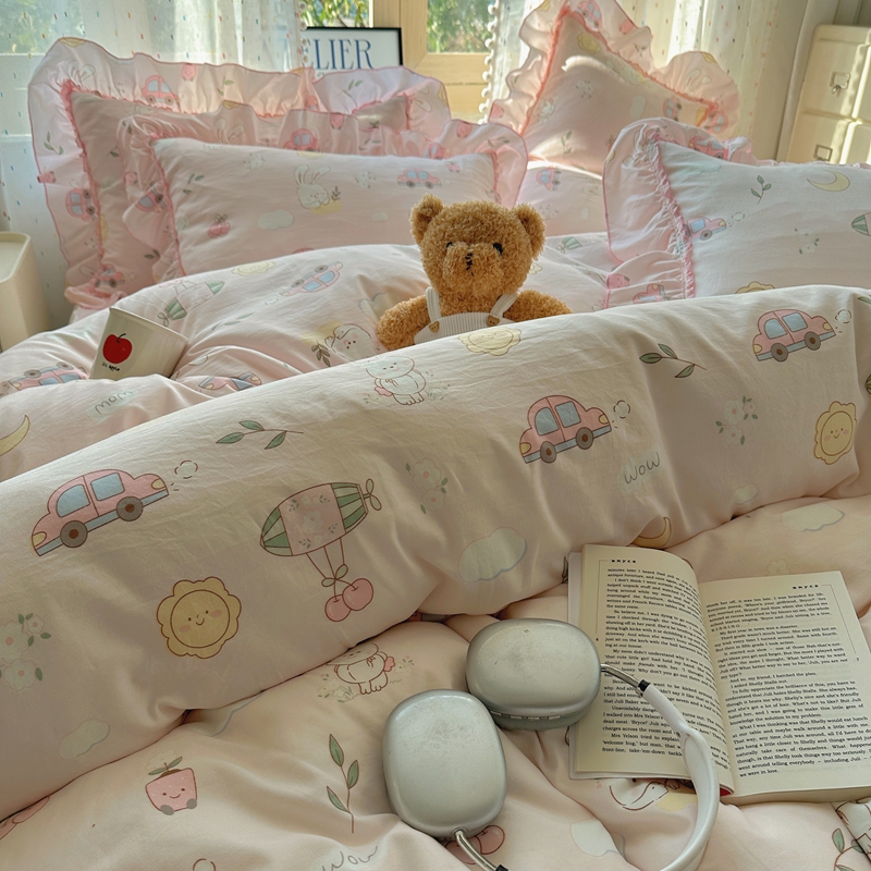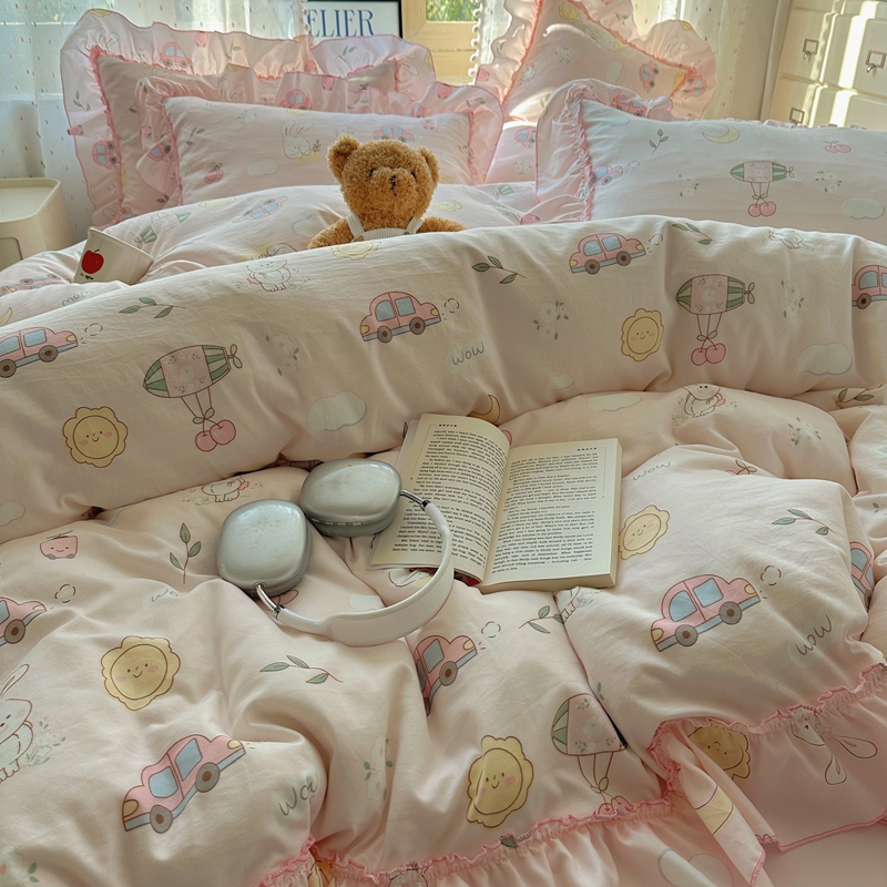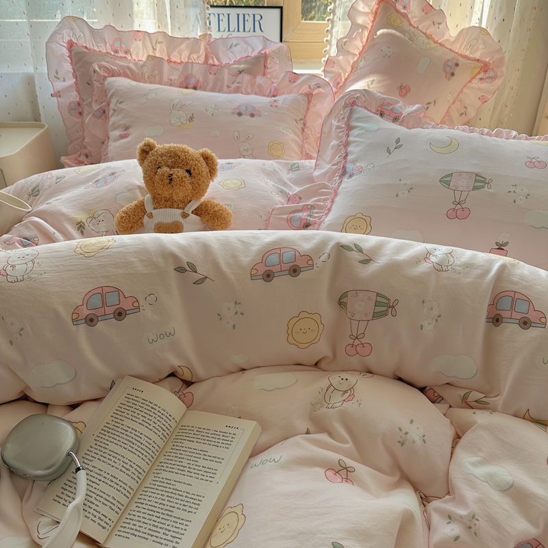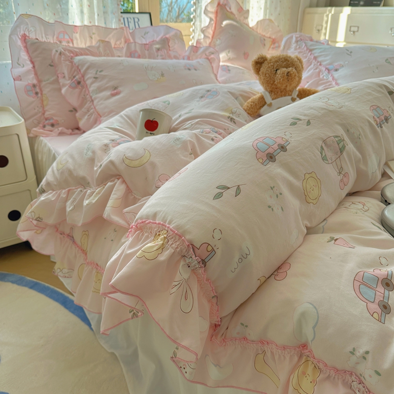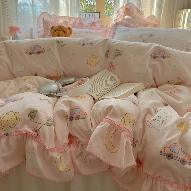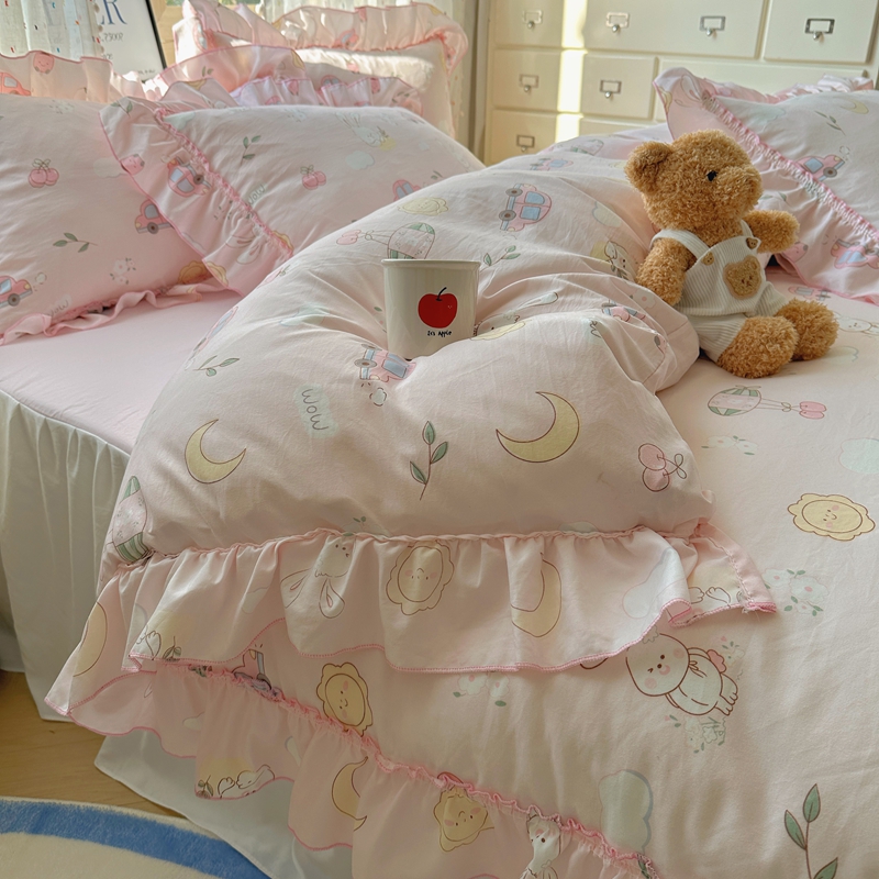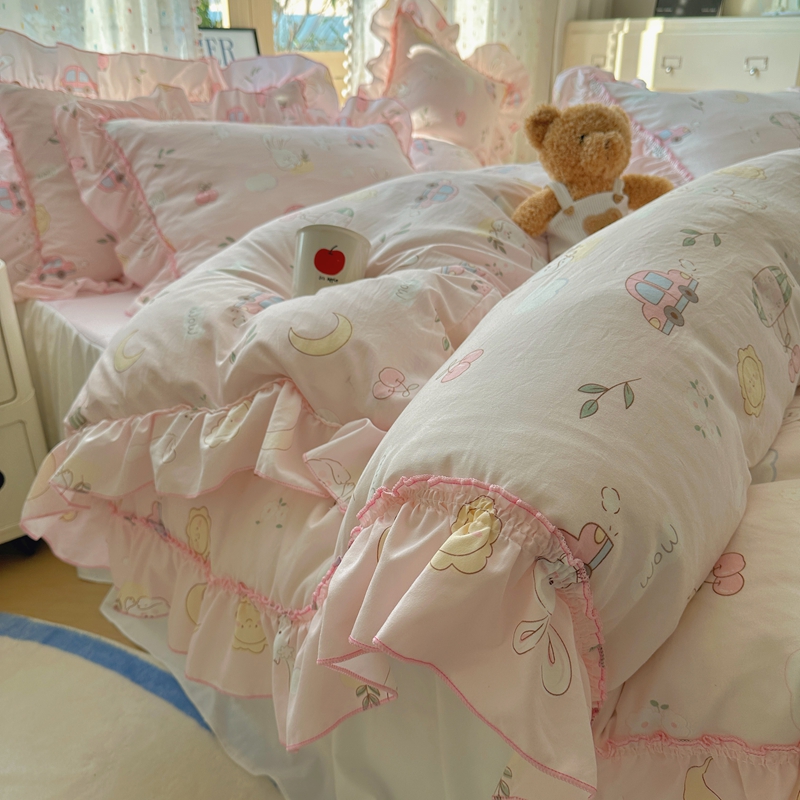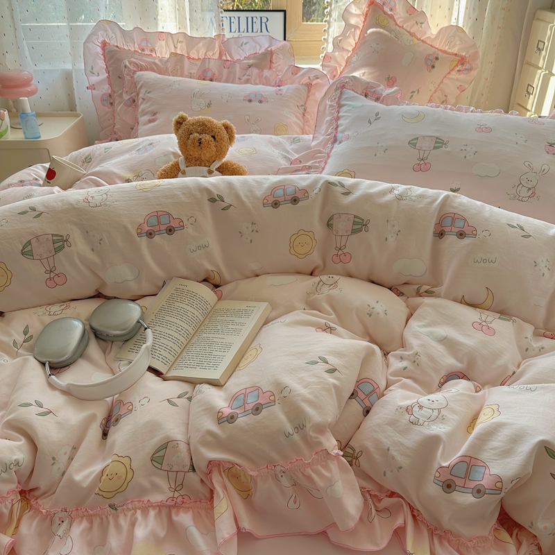 当前位置: 91家纺网 > 商品网购 > 床品套件 > 四件套 > 其它四件套 > 盼季家纺 2025新款公主风花边小清新水洗棉床上四件套床单被套床裙三件套-风格二 兔兔乐园