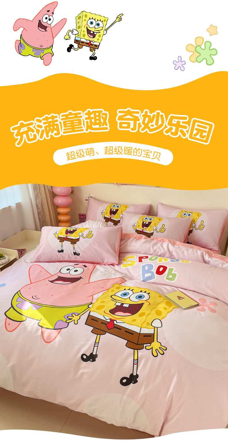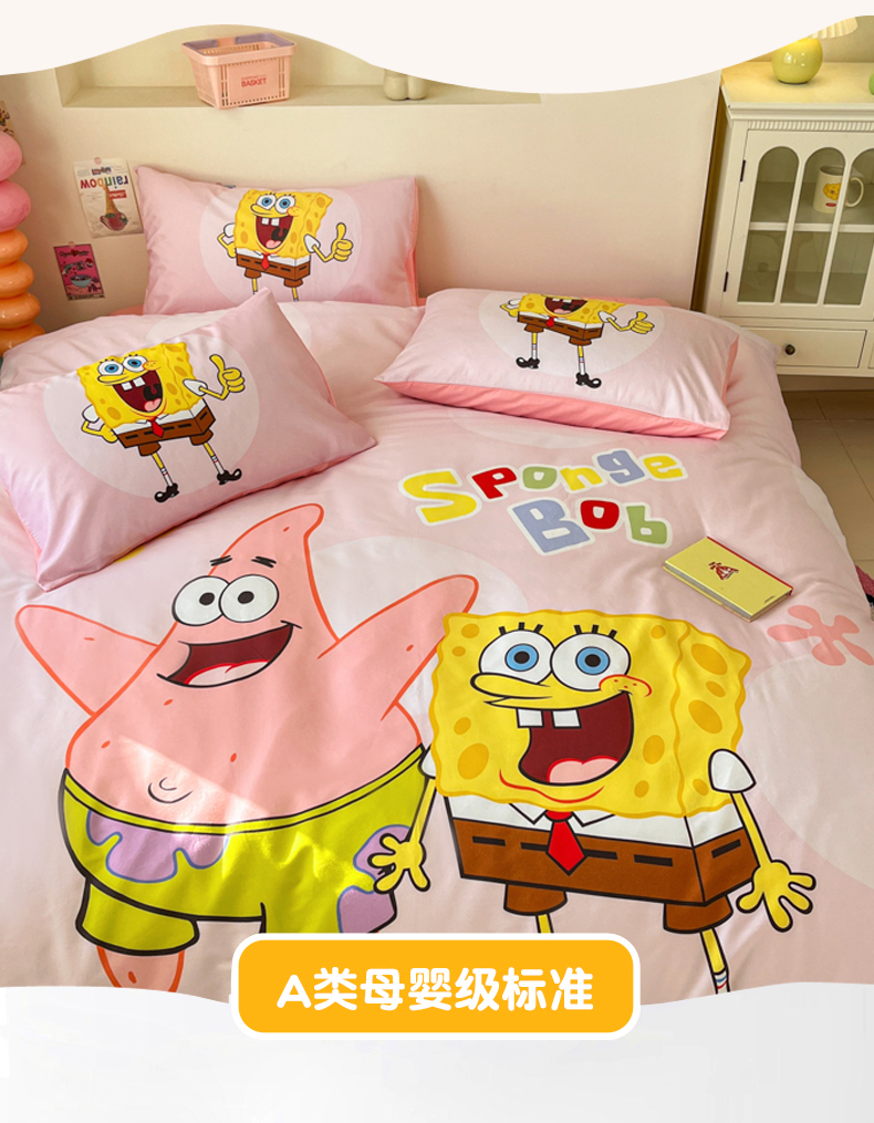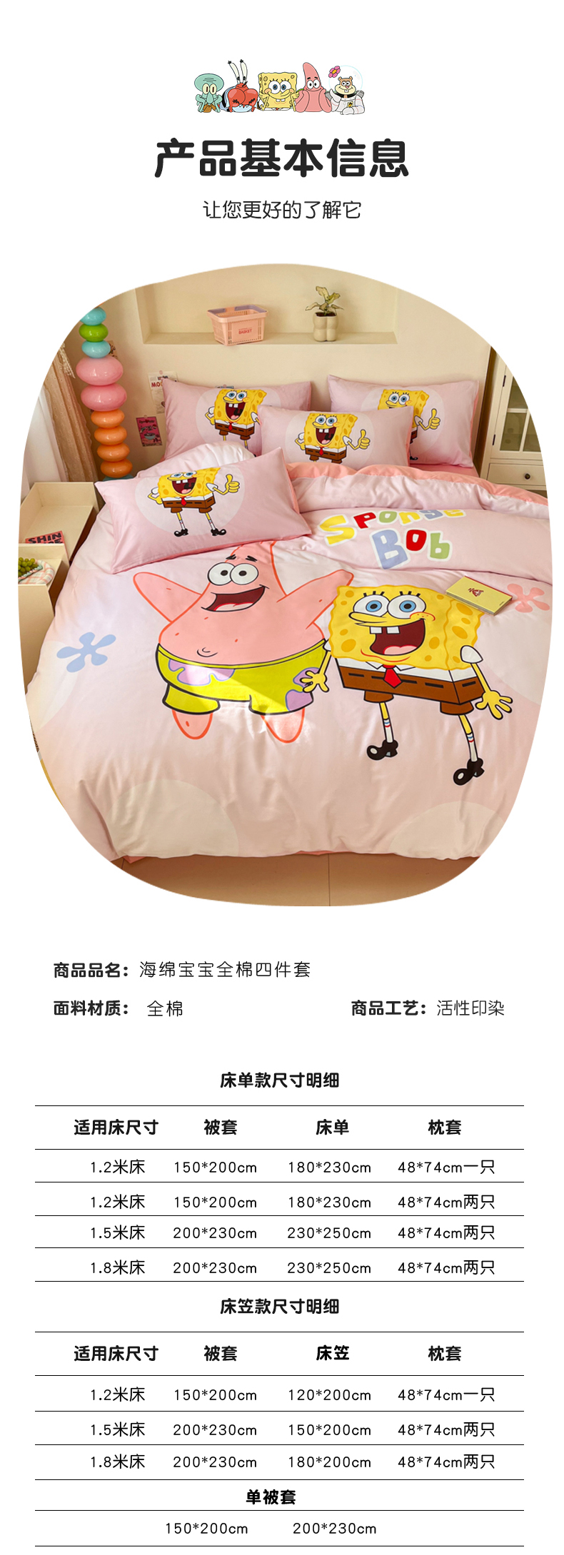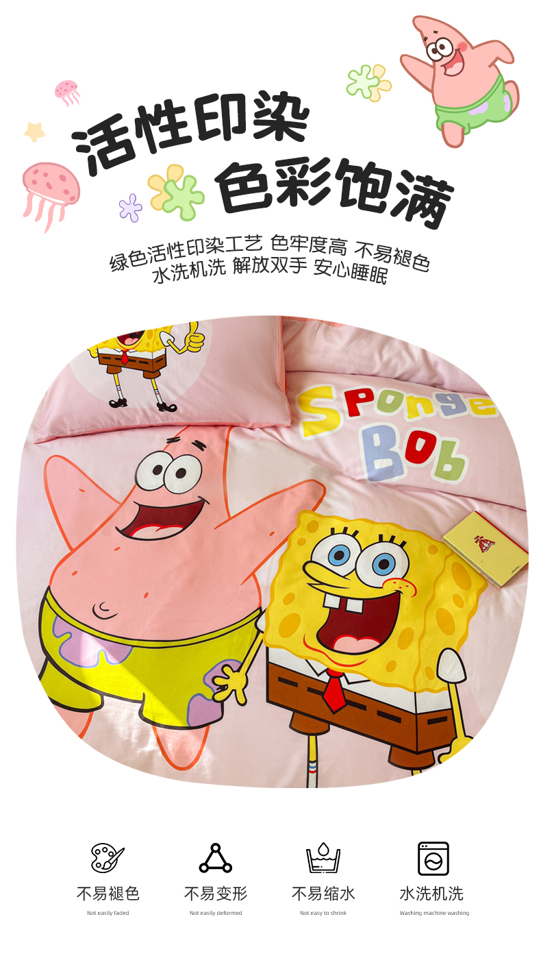 当前位置: 91家纺网 > 商品网购 > 床品套件 > 四件套 > 全棉普通四件套 > 金爱家纯棉数码印花系列四件套-海绵宝宝 棉D-粉粉海绵宝宝