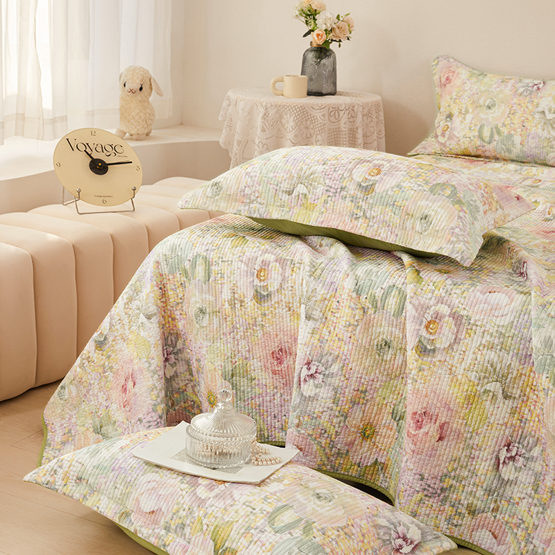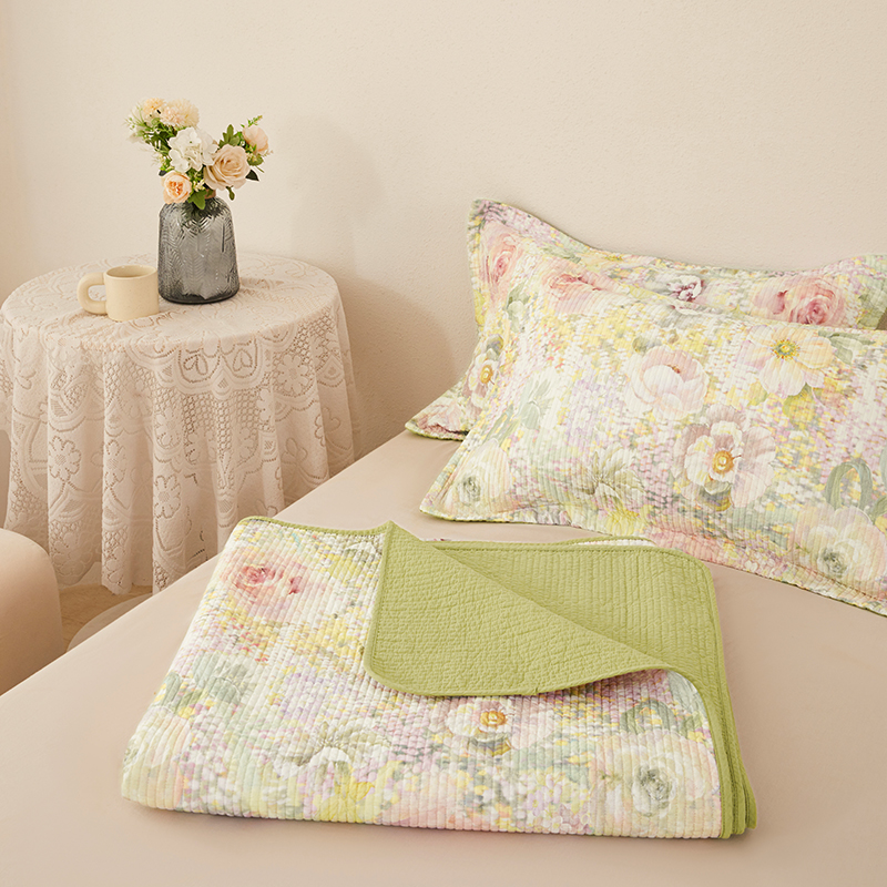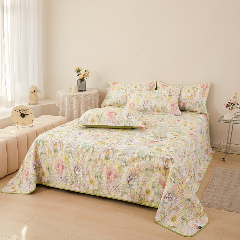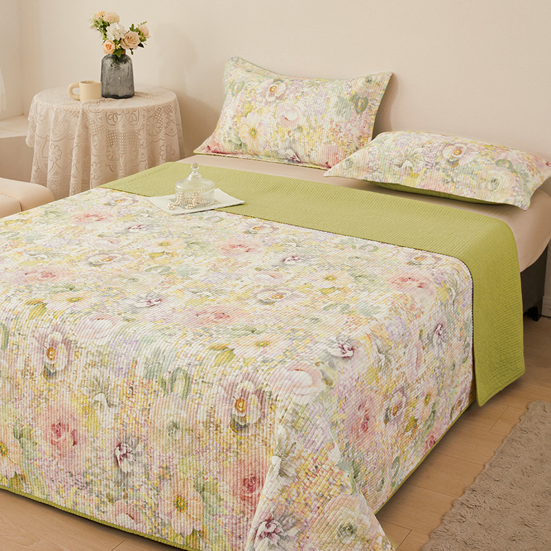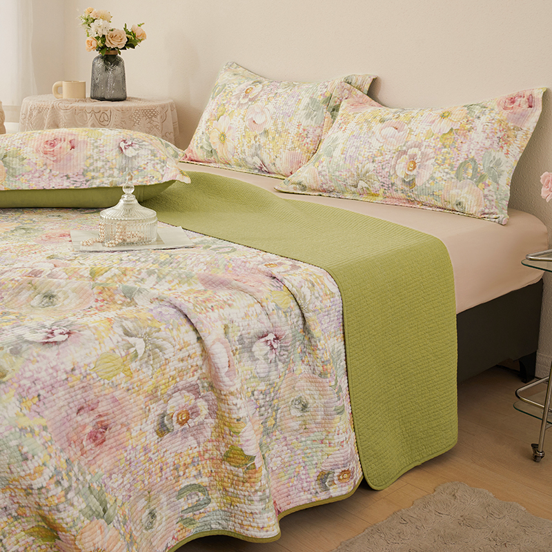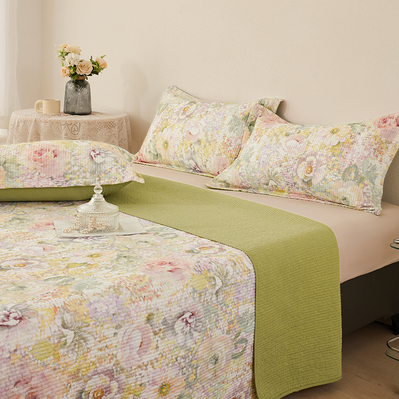 莎果家纺 2025新款双面全棉数码印花大尺寸2.3*2.5米床盖三件套 春日幽香