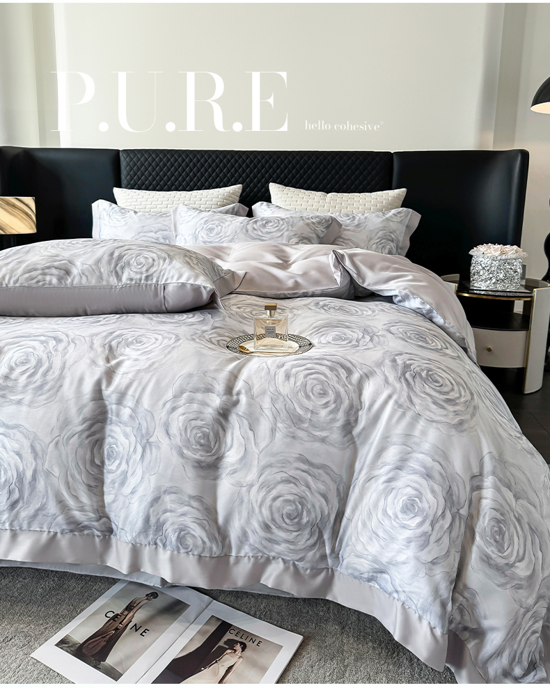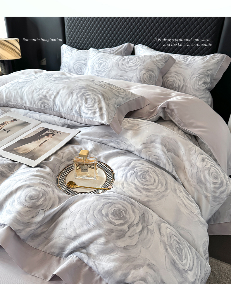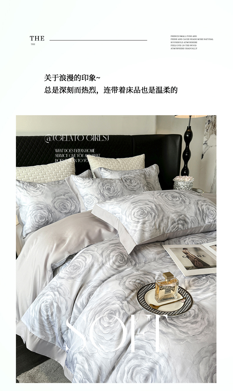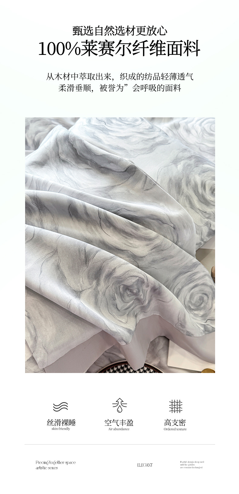 迷尚家居 2025新款100%莱赛尔数码印花四件套 松绿玫瑰