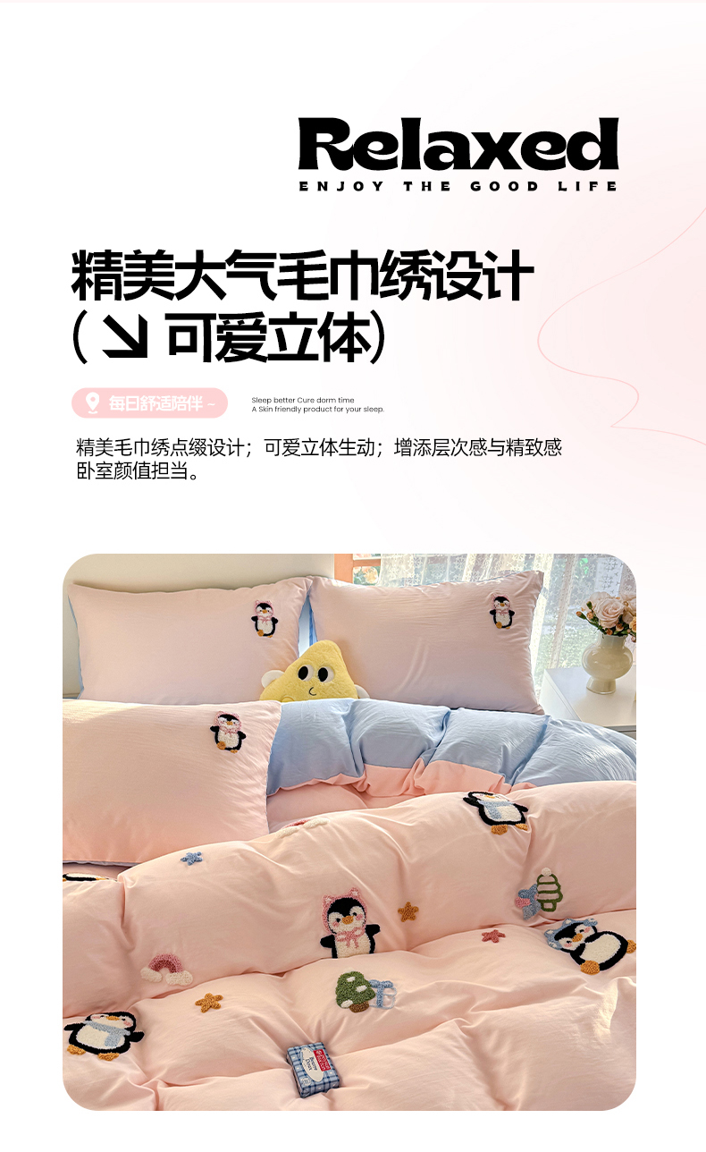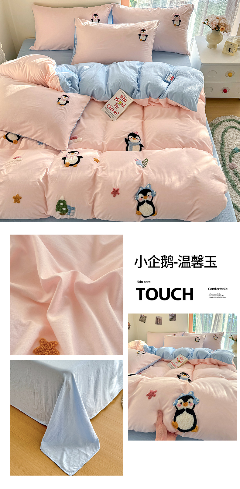 当前位置: 91家纺网 > 商品网购 > 床品套件 > 四件套 > 水洗棉四件套 > 优卡迪家纺馆 2025新款A类亲肤水洗棉毛巾绣四件套(下载文件夹包含买家秀) 小企鹅-温馨玉