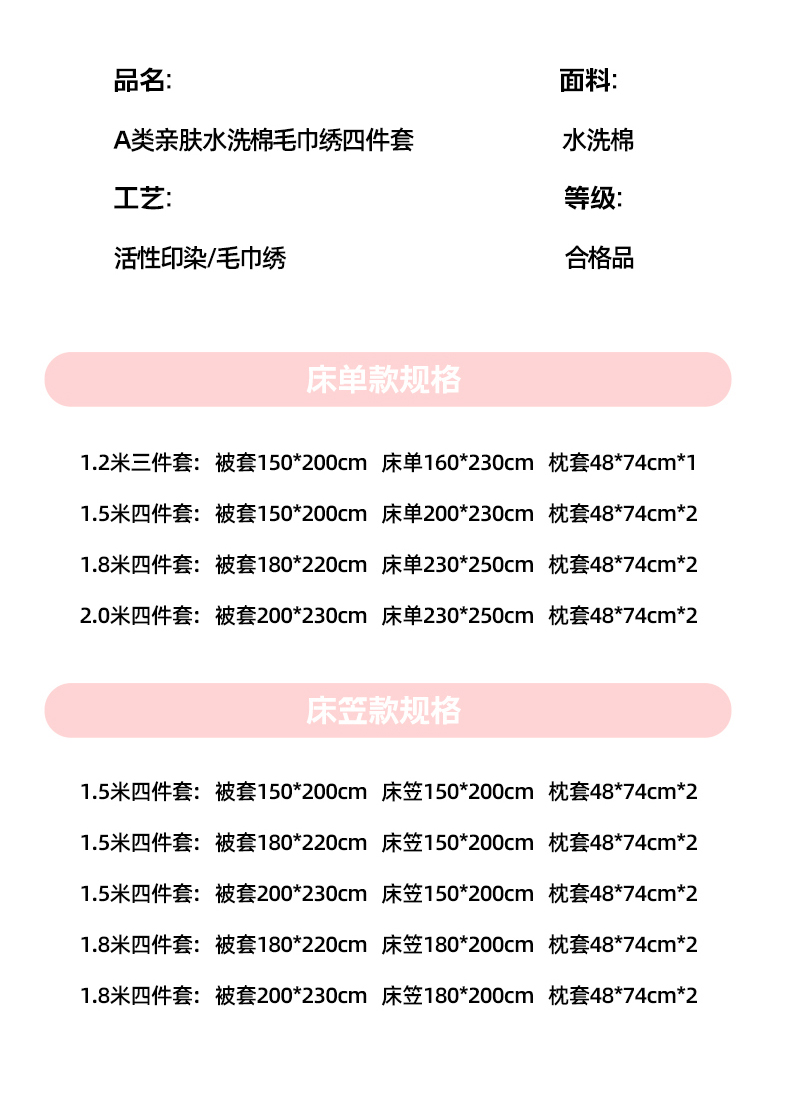 1.8m床笠四件套被套180x220 | ¥60.00 |