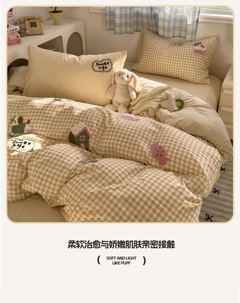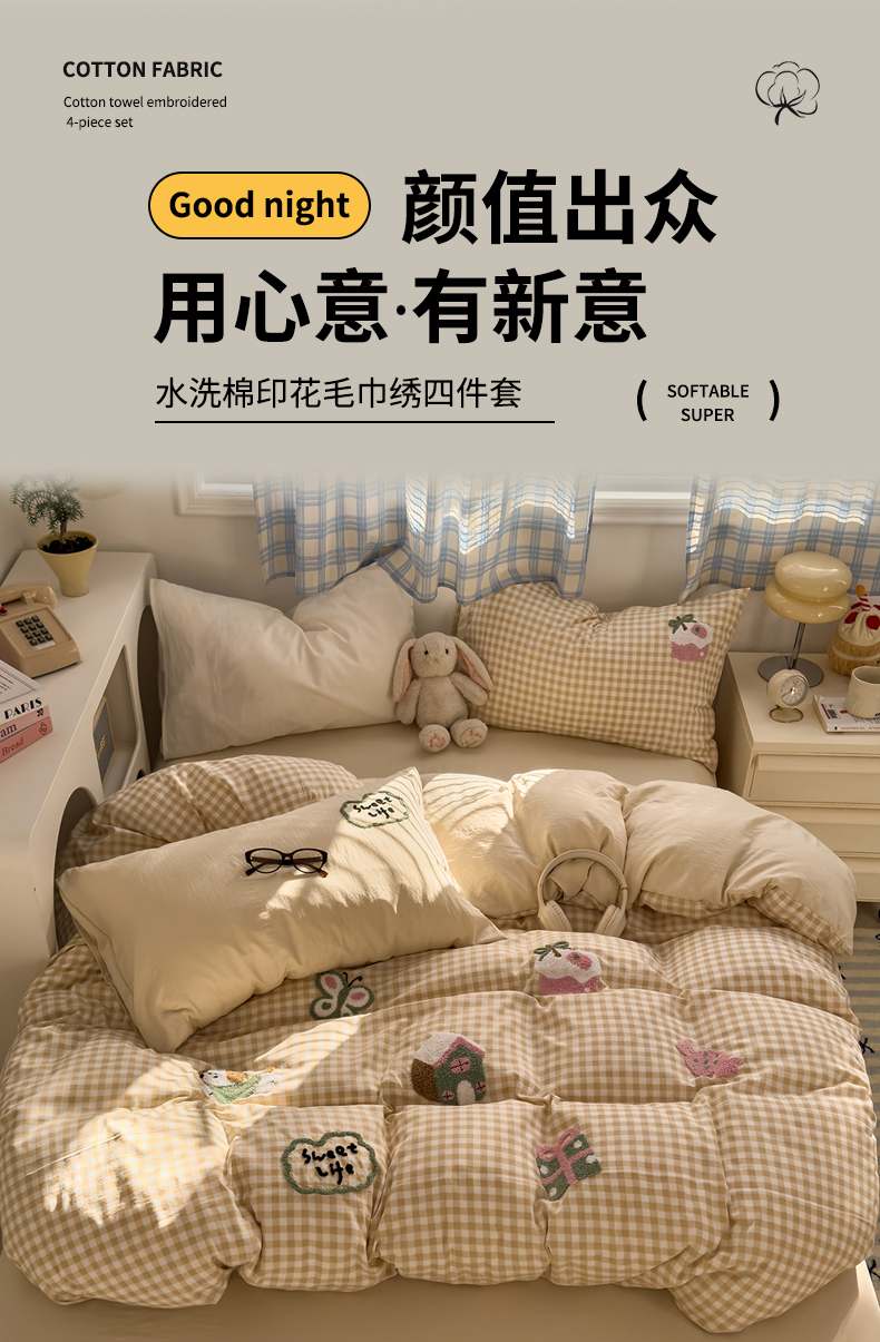 当前位置: 91家纺网 > 商品网购 > 床品套件 > 四件套 > 水洗棉四件套 > 优兰朵 2025新款亲肤卡通水洗棉毛巾绣学生床品四件套 甜梦俱乐部卡其