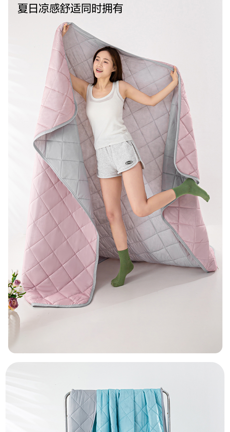 憨豆家纺 2025春夏新款凉感丝夏凉被冰淇淋纯色夏被空调被夏季薄被子直播外贸跨境爆款 胭脂粉