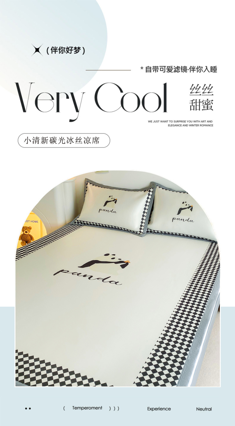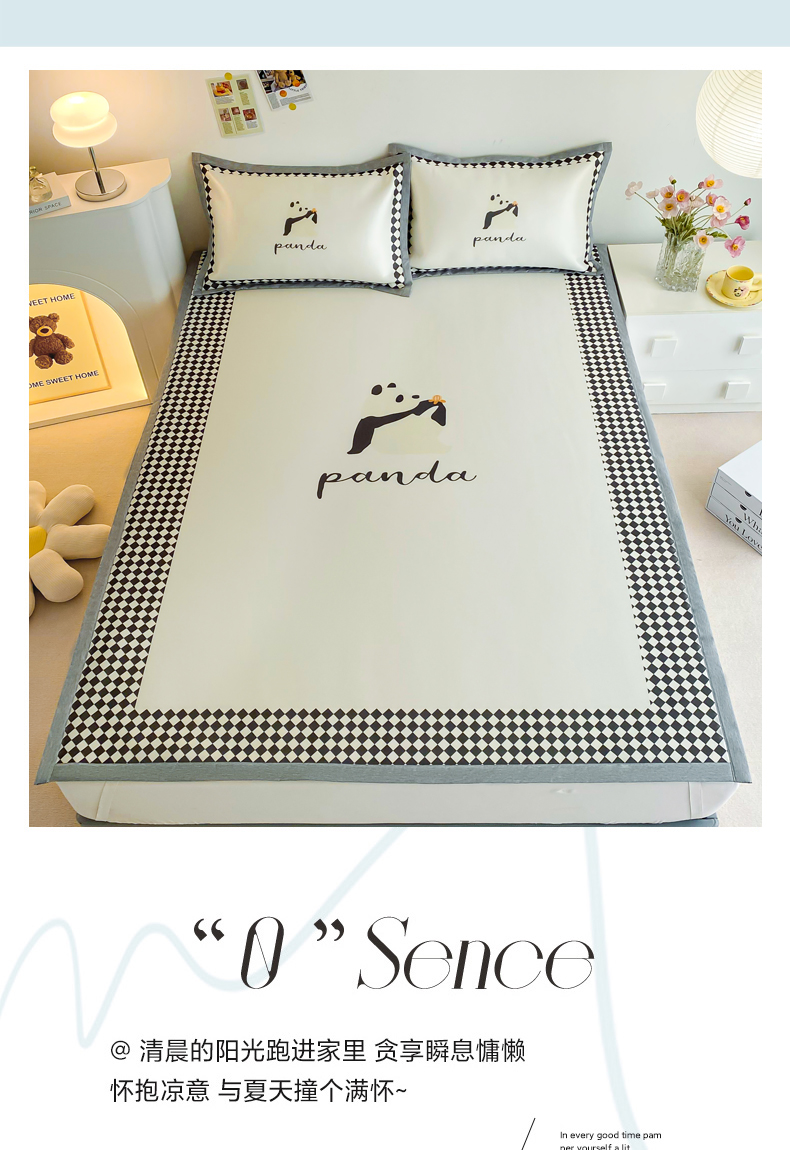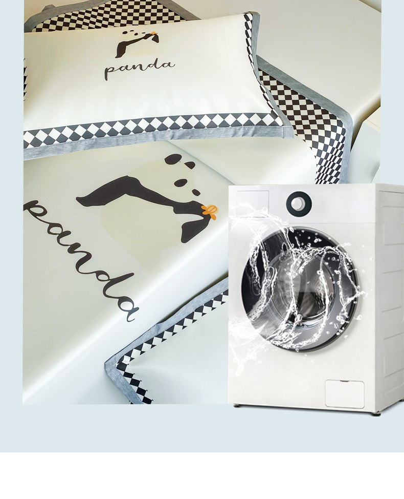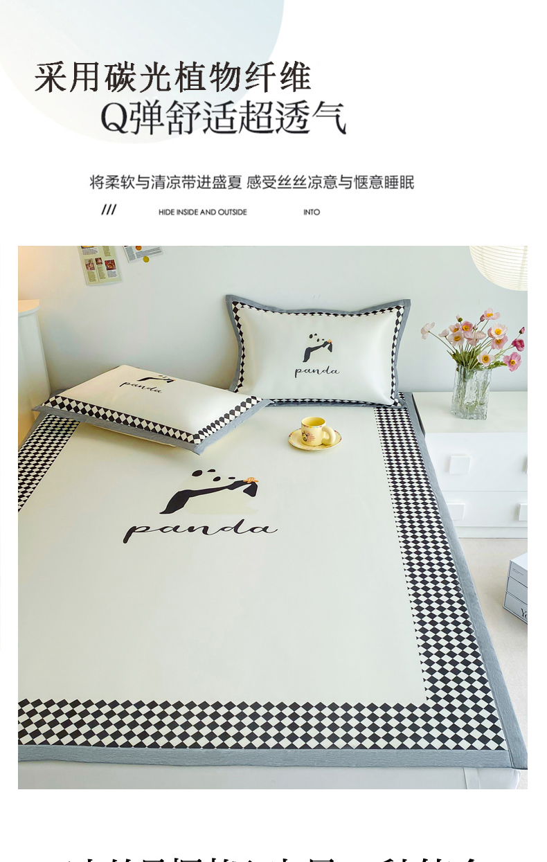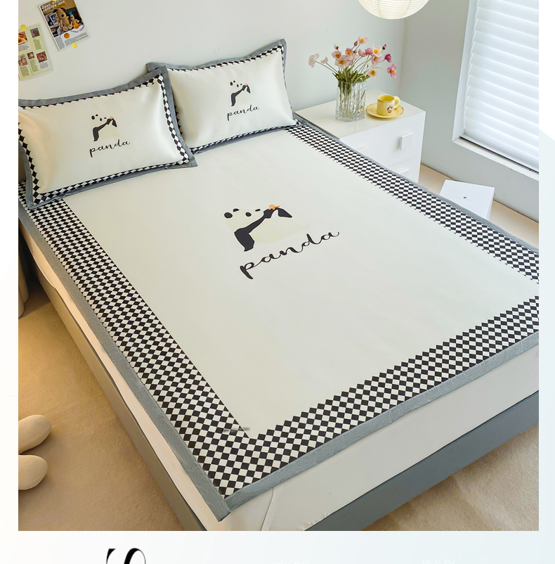 商品名称:邵依 2025新款数码印花烫光冰丝席凉席子藤席 黑色熊猫