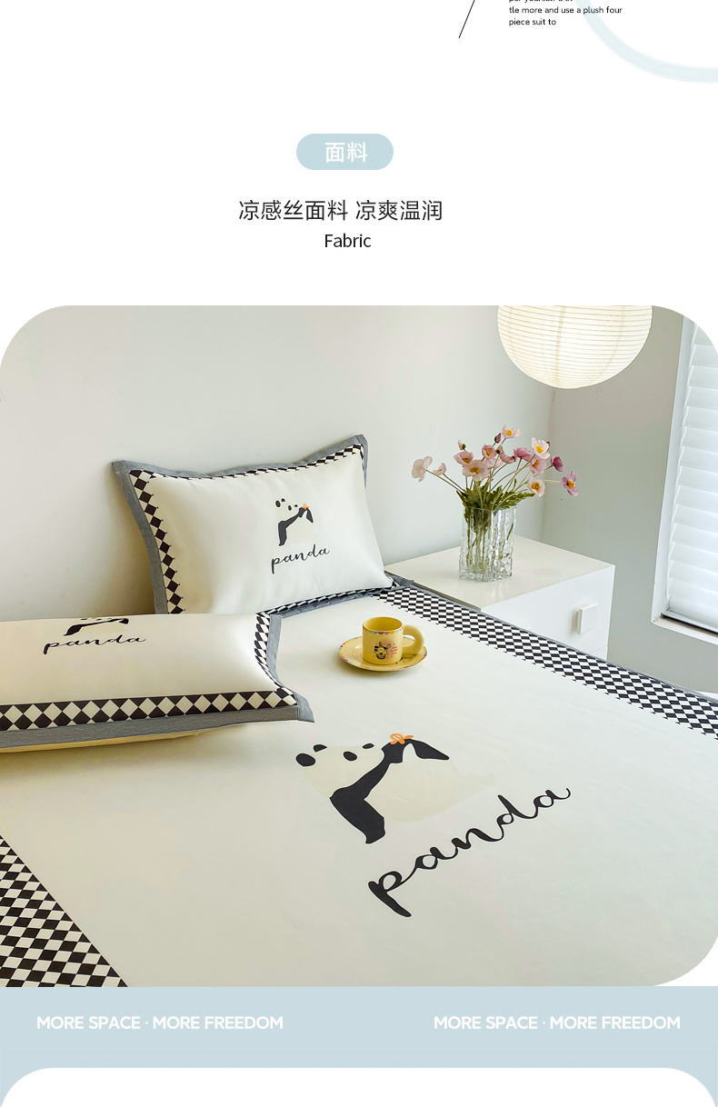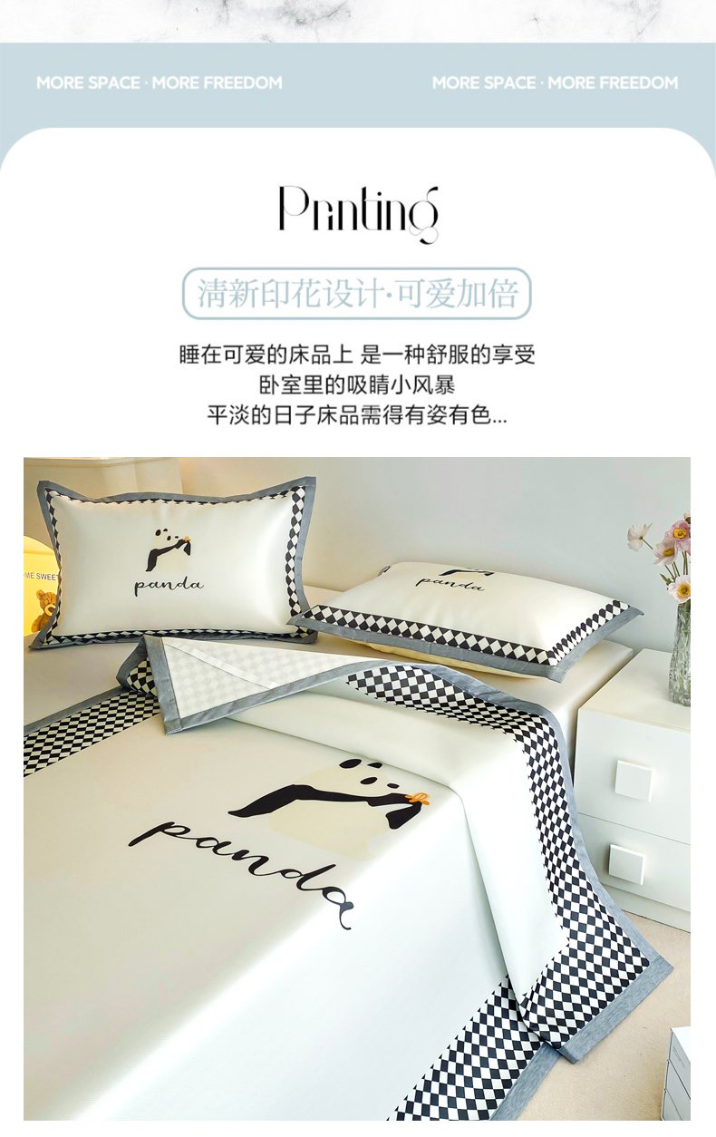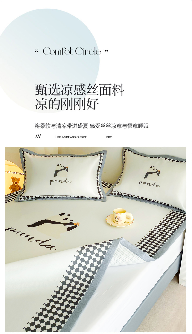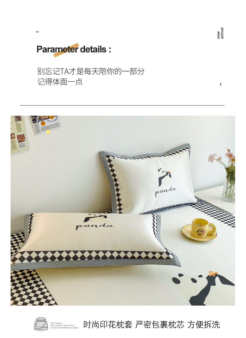 商品名称:邵依 2025新款数码印花烫光冰丝席凉席子藤席 黑色熊猫