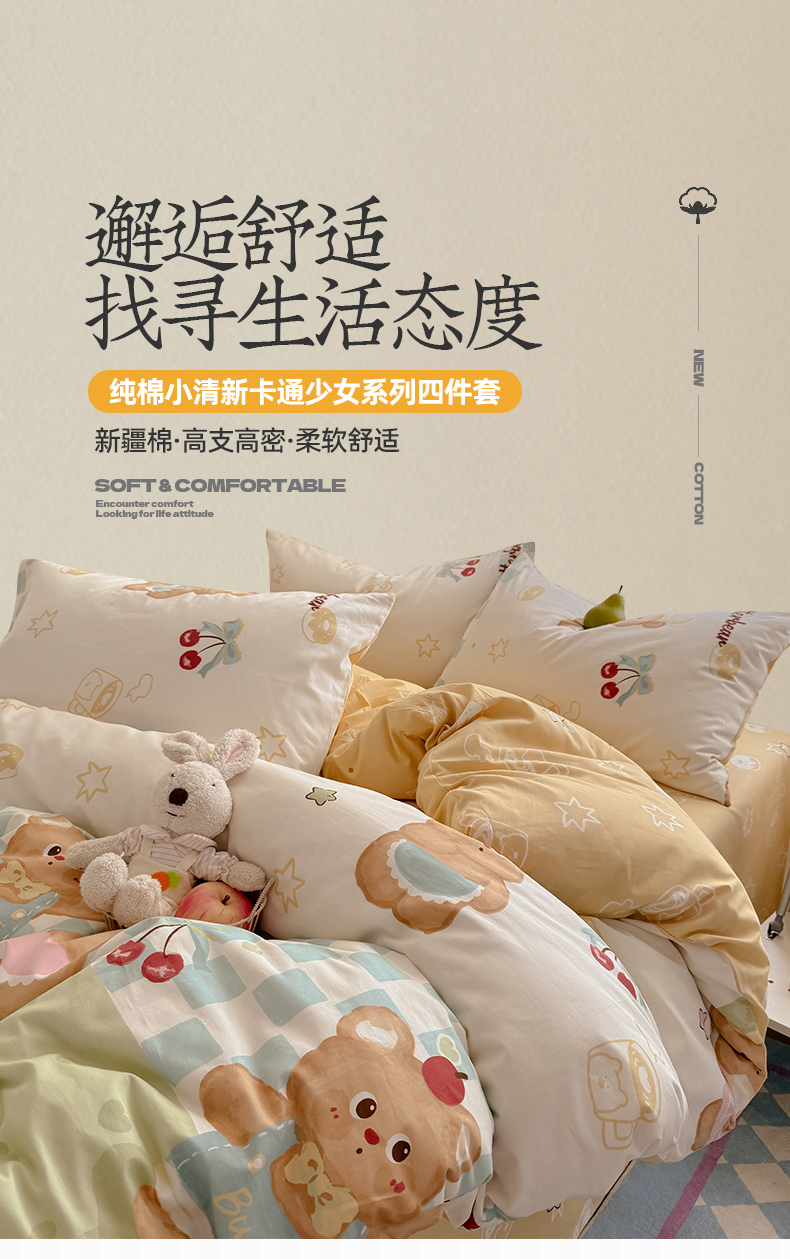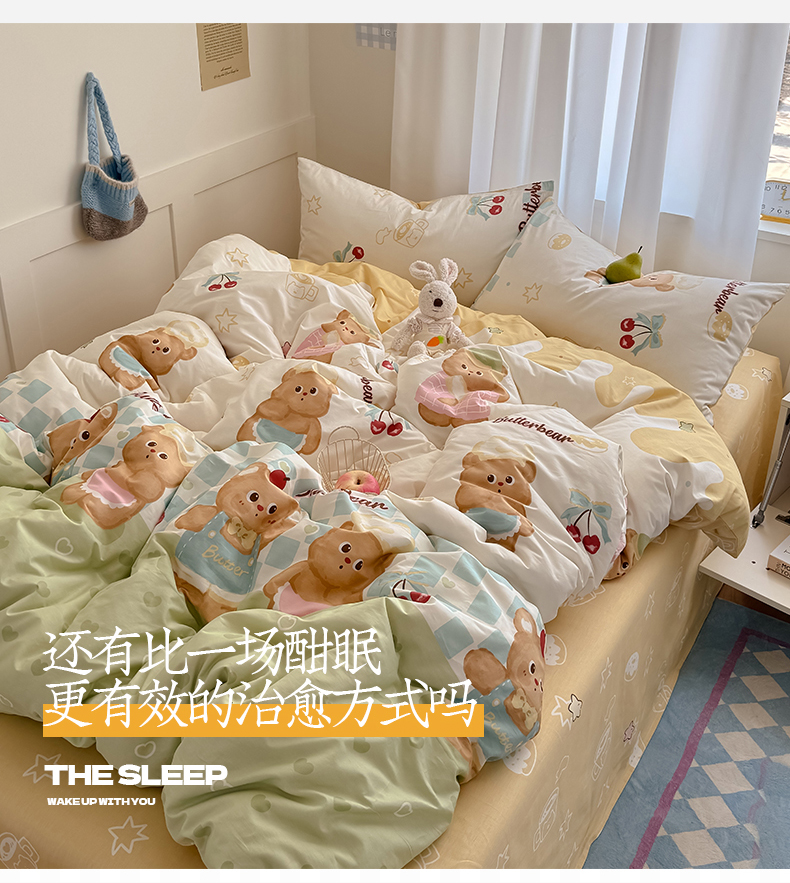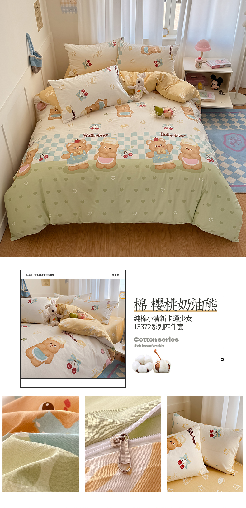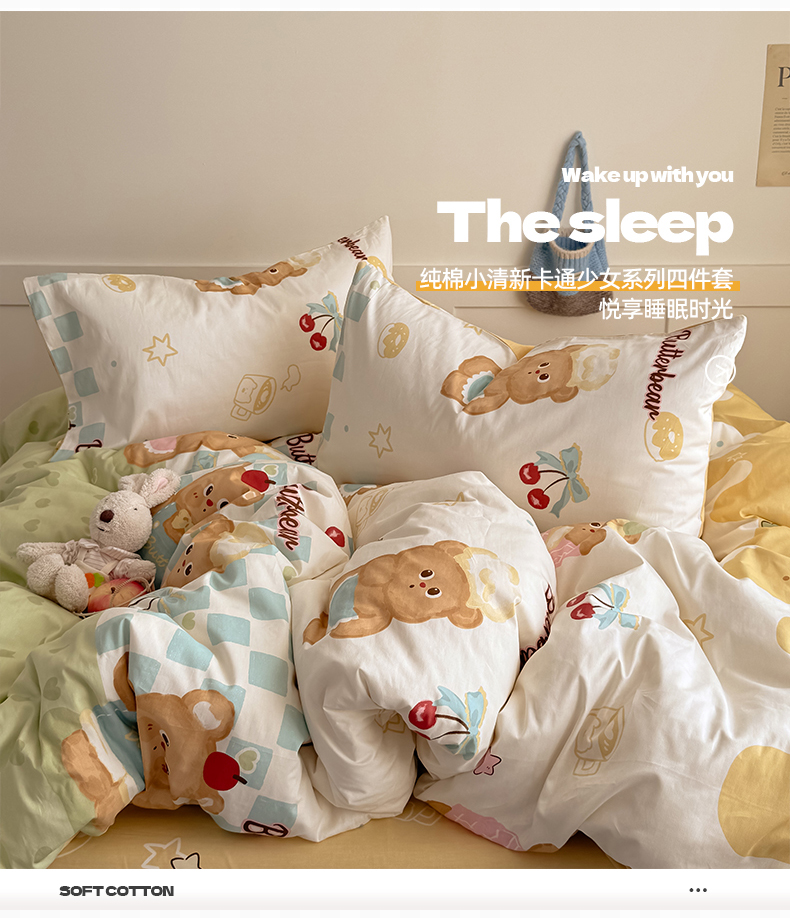 当前位置: 91家纺网 > 商品网购 > 床品套件 > 四件套 > 全棉普通四件套 > 桃子家居 2025新款纯棉小清新13372卡通可爱少女系列四件套 棉-樱桃奶油熊
