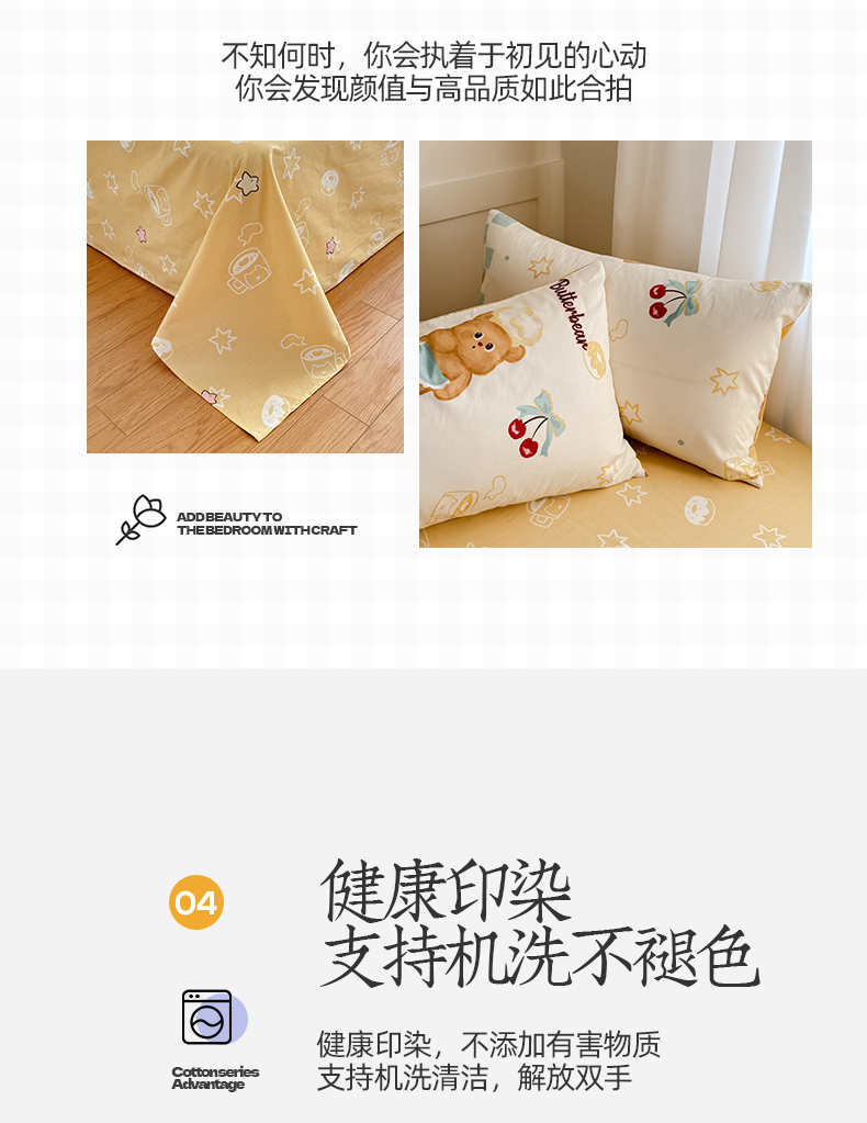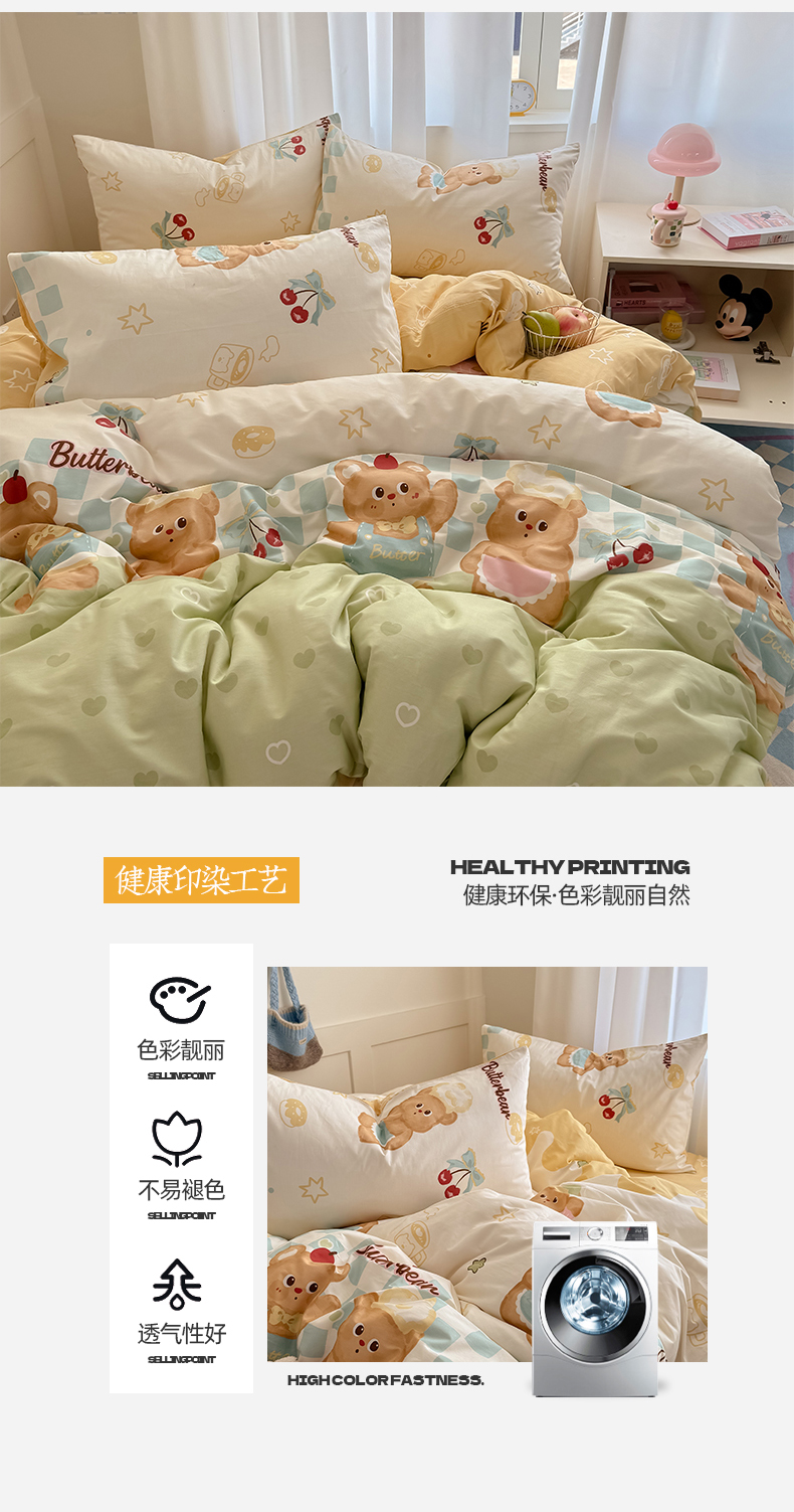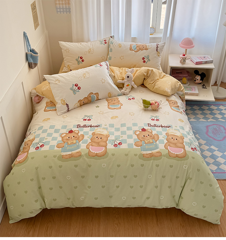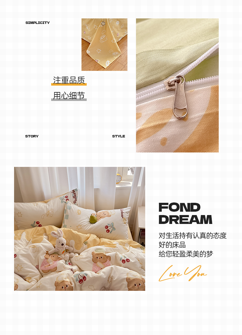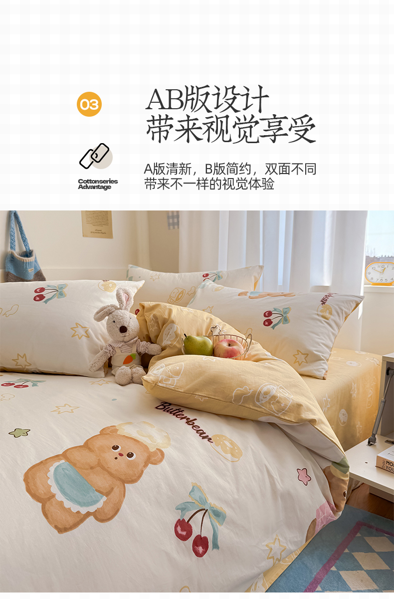当前位置: 91家纺网 > 商品网购 > 床品套件 > 四件套 > 全棉普通四件套 > 桃子家居 2025新款纯棉小清新13372卡通可爱少女系列四件套 棉-樱桃奶油熊