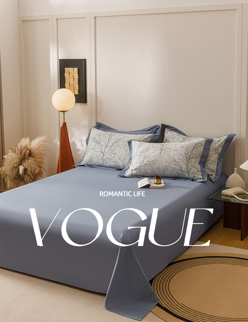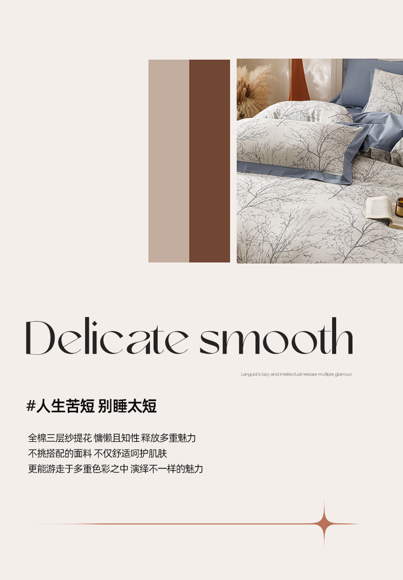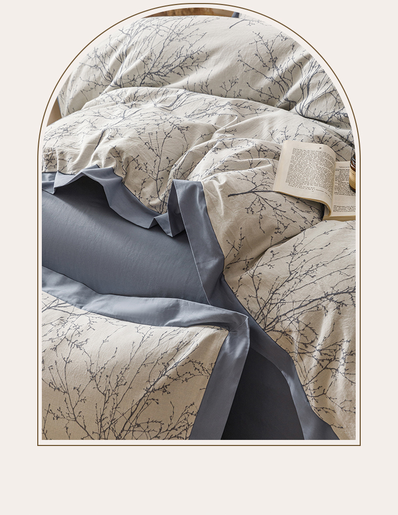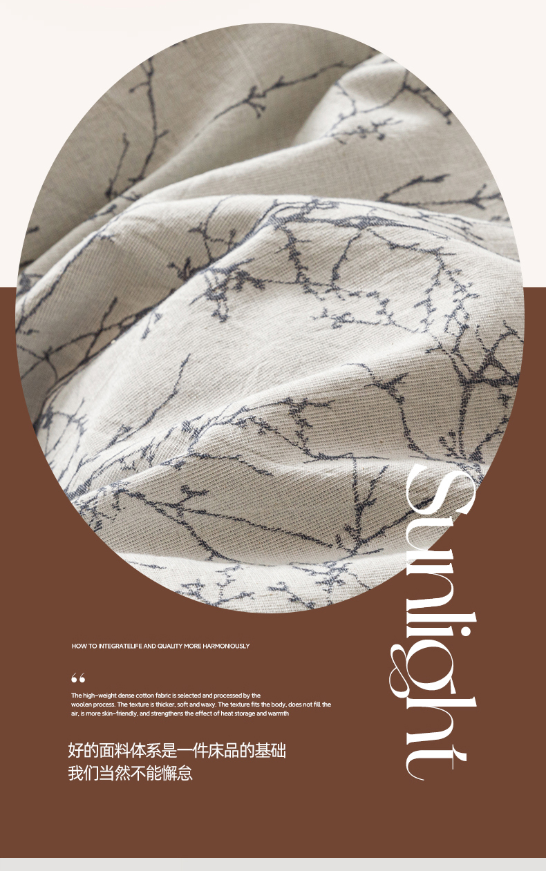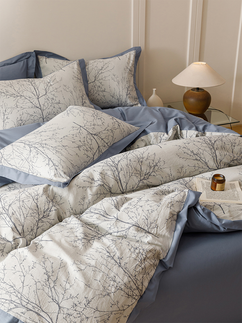 简宜家居(朝初家纺) 2025新款全棉宽边三层纱提花四件套 枝桠-牛仔蓝