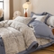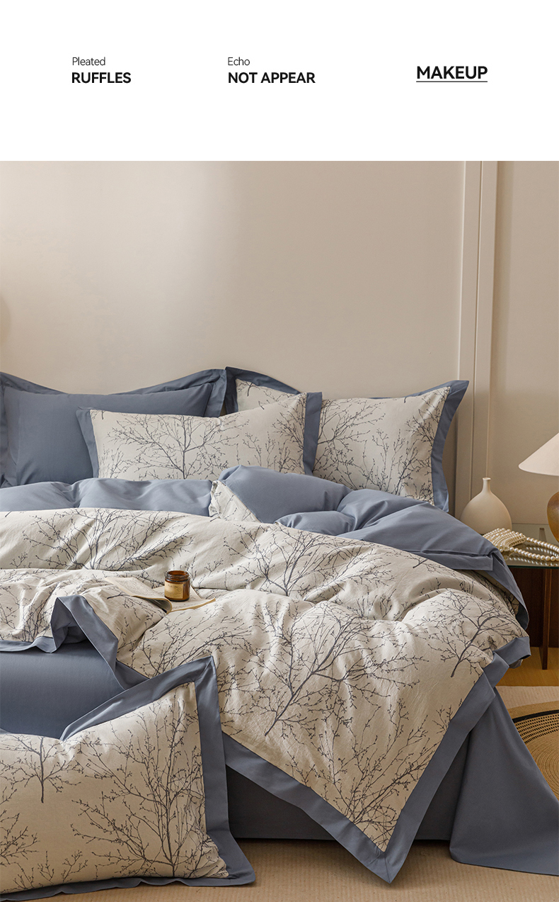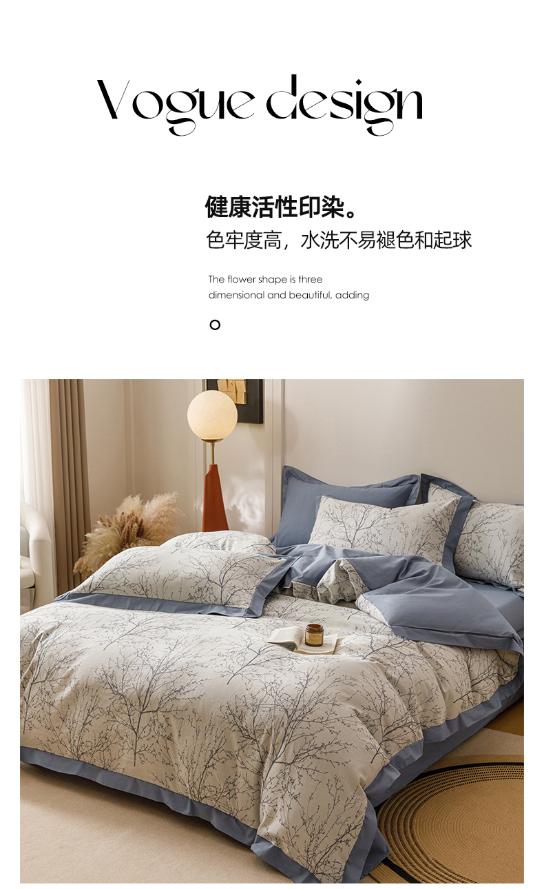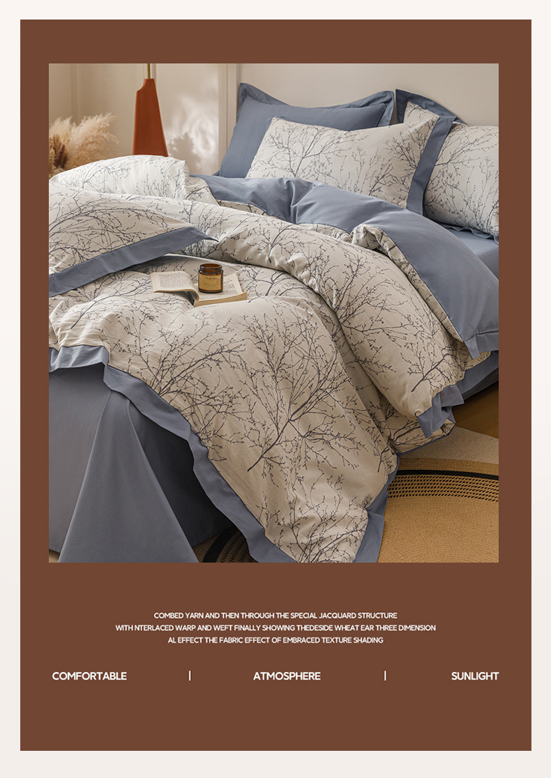 商品名称:简宜家居(朝初家纺) 2025新款全棉宽边三层纱提花四件套 枝桠-牛仔蓝