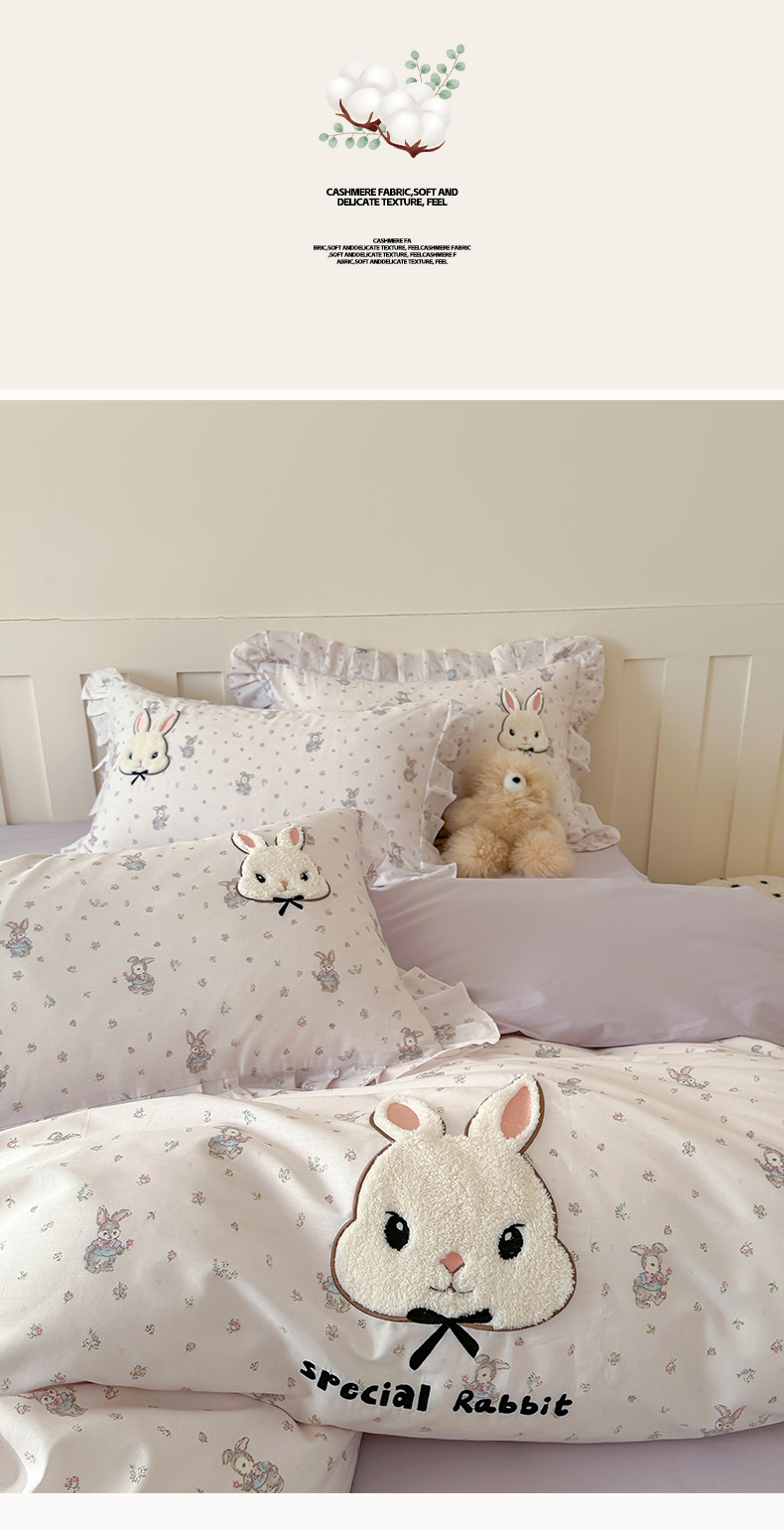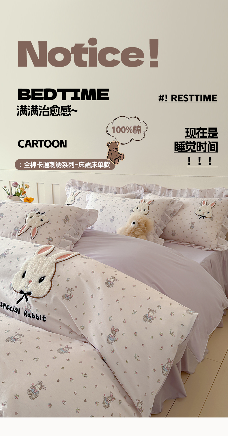 商品名称:卡巴伦家纺 2025新款床裙款卡通刺绣款四件套【全网控价(折后券后)不低于标准218元】 雪兔精灵