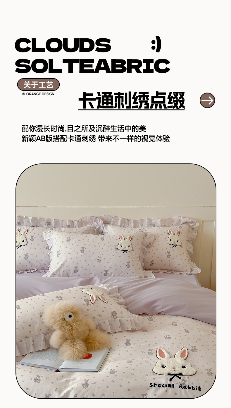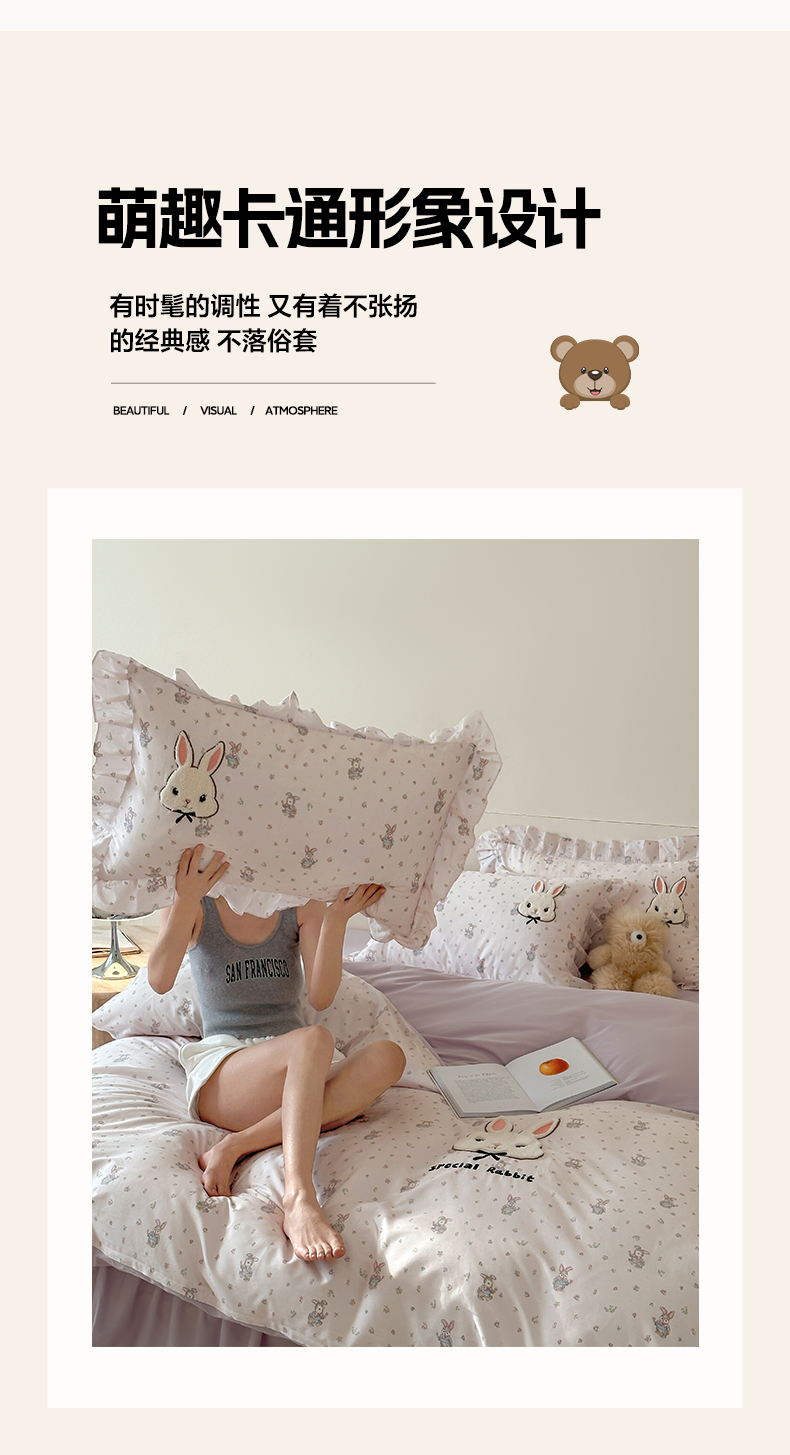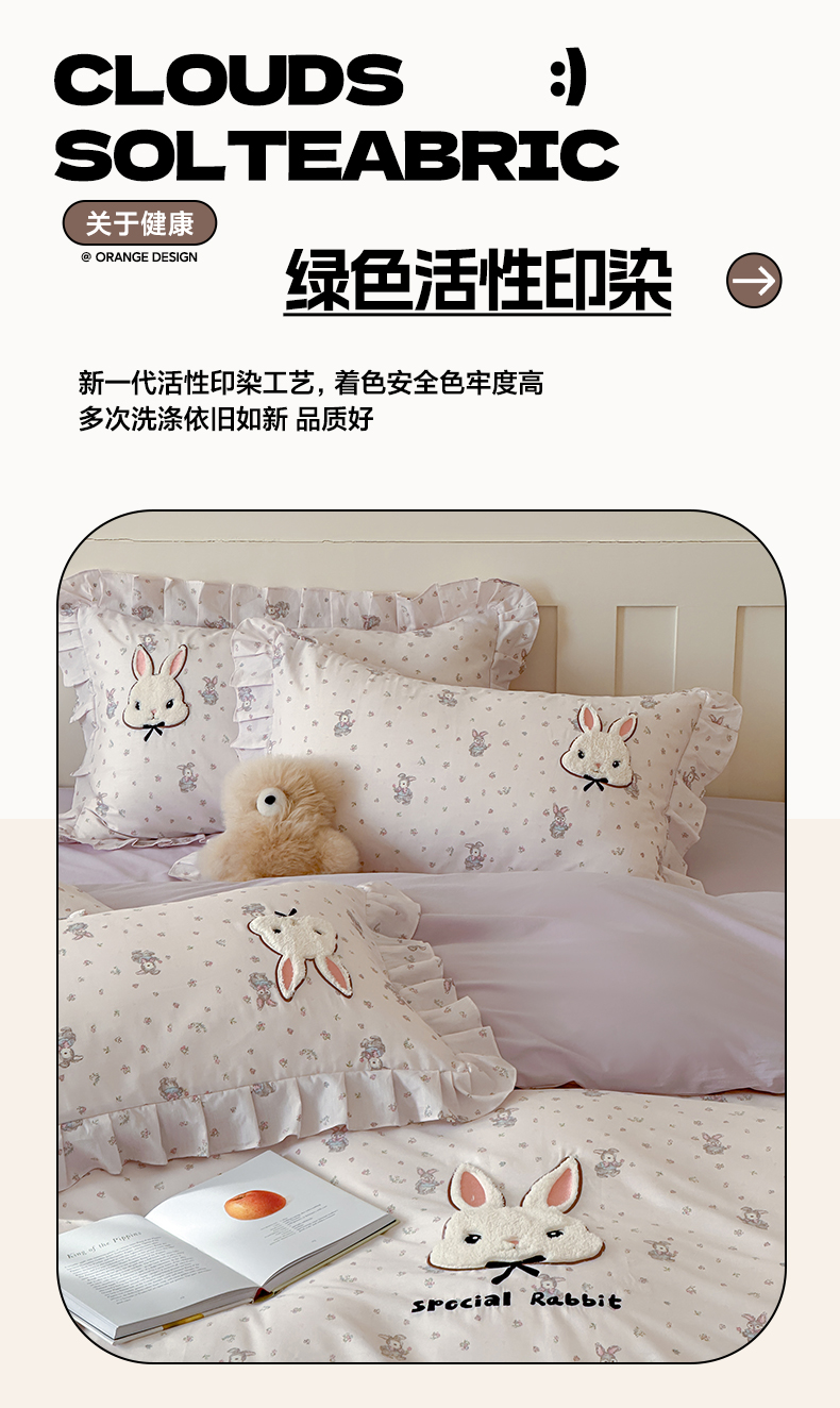 (总)卡巴伦家纺 2025新款全棉皱皱纱大版卡通数码印花款四件套一,洛可可兔-粉,班尼的花园-粉,班尼的花园-黄,漂亮的领结-绿,漂亮的领结-米白,熊猫噗噗-绿,樱桃真甜-奶白