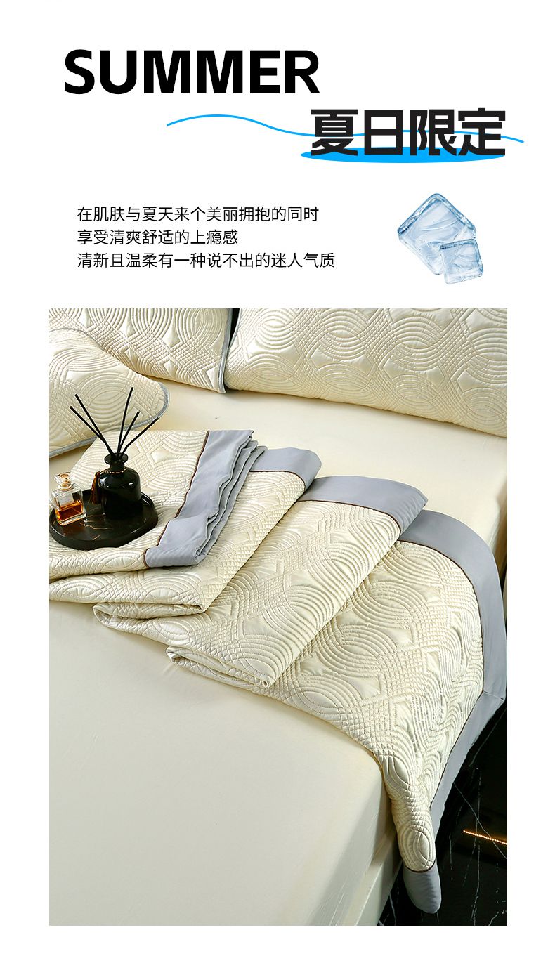 商品名称:OL家纺2025新款冰丝绸夏被床盖款三件套 粉橘色