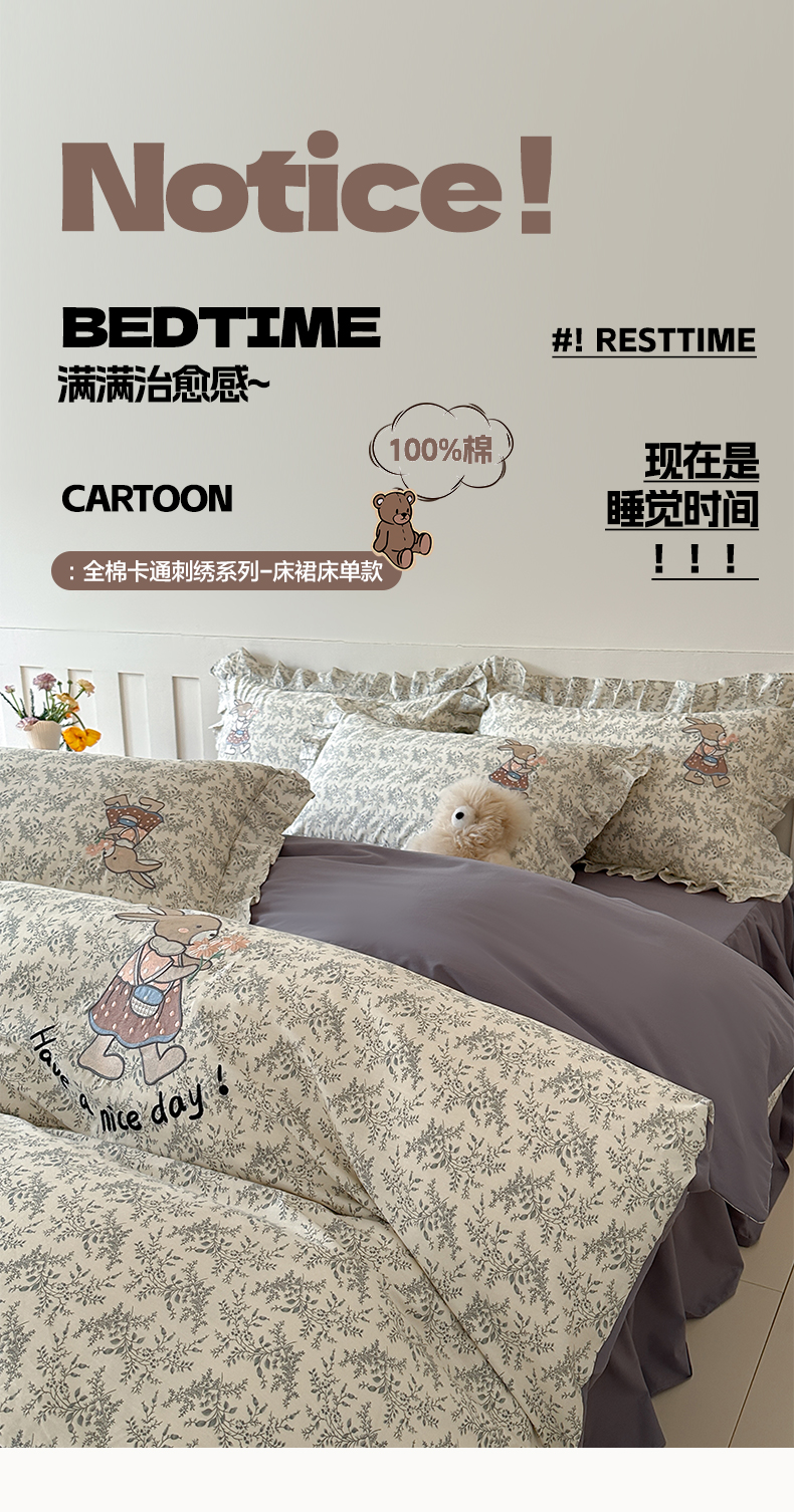 当前位置: 91家纺网 > 商品网购 > 床品套件 > 四件套 > 全棉普通四件套 > 卡巴伦 床裙款-全棉卡通刺绣套件 童话小镇
