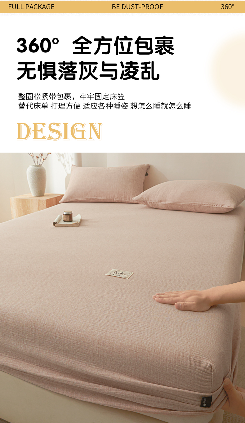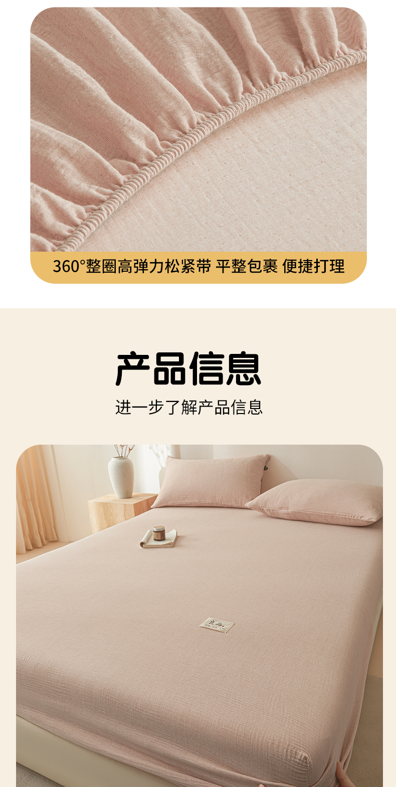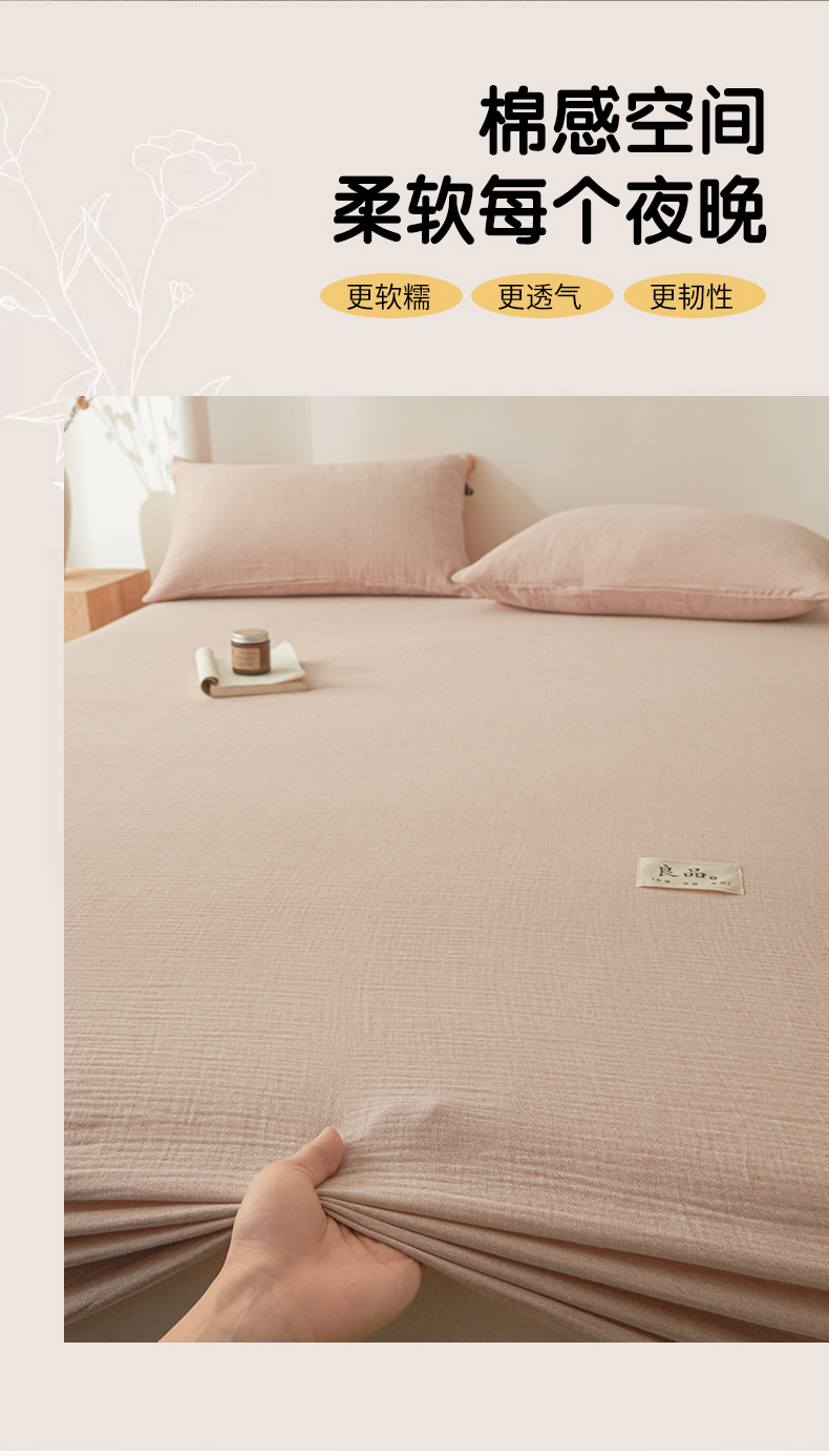 • 91家纺网 家纺一手货源 找家纺 鑫钰 2025新款A类全棉双棉皱皱纱床笠 简约驼