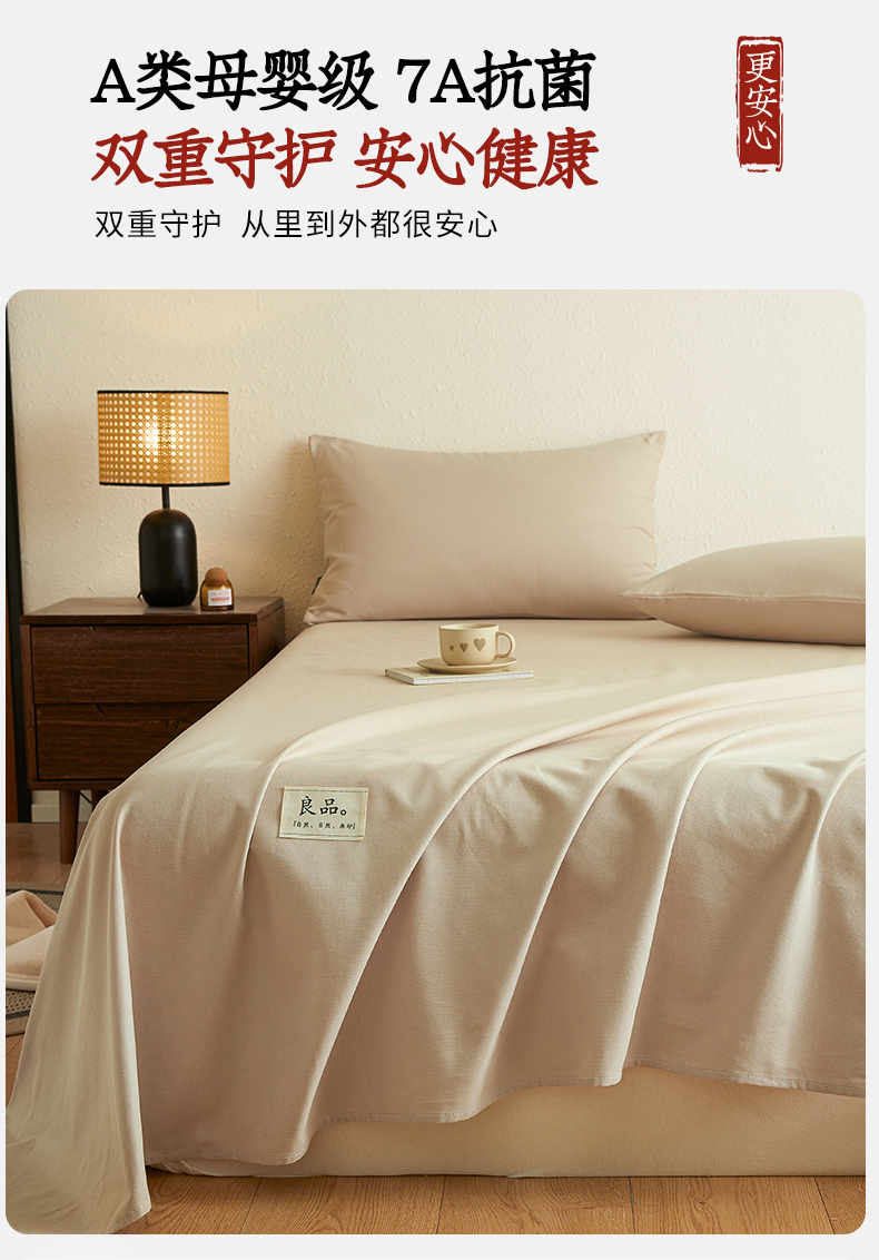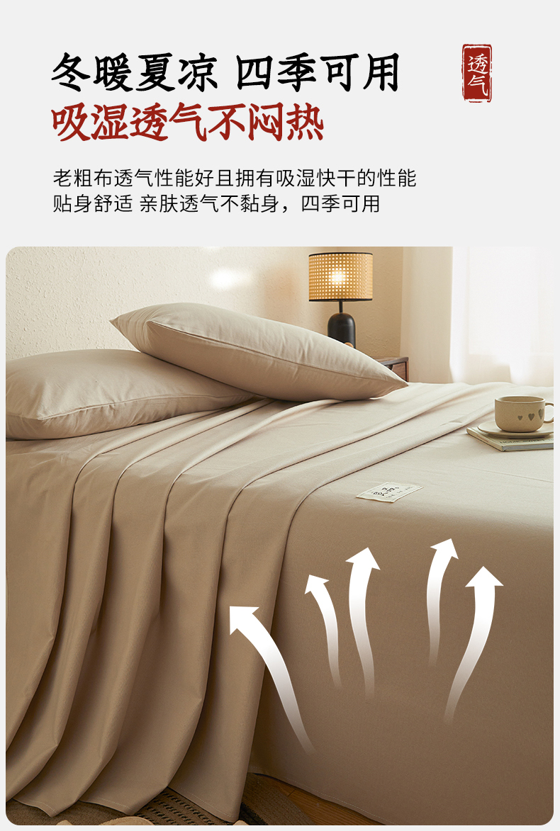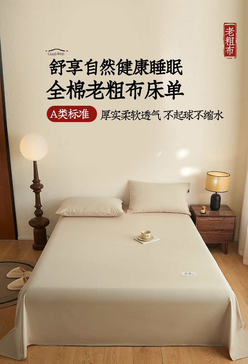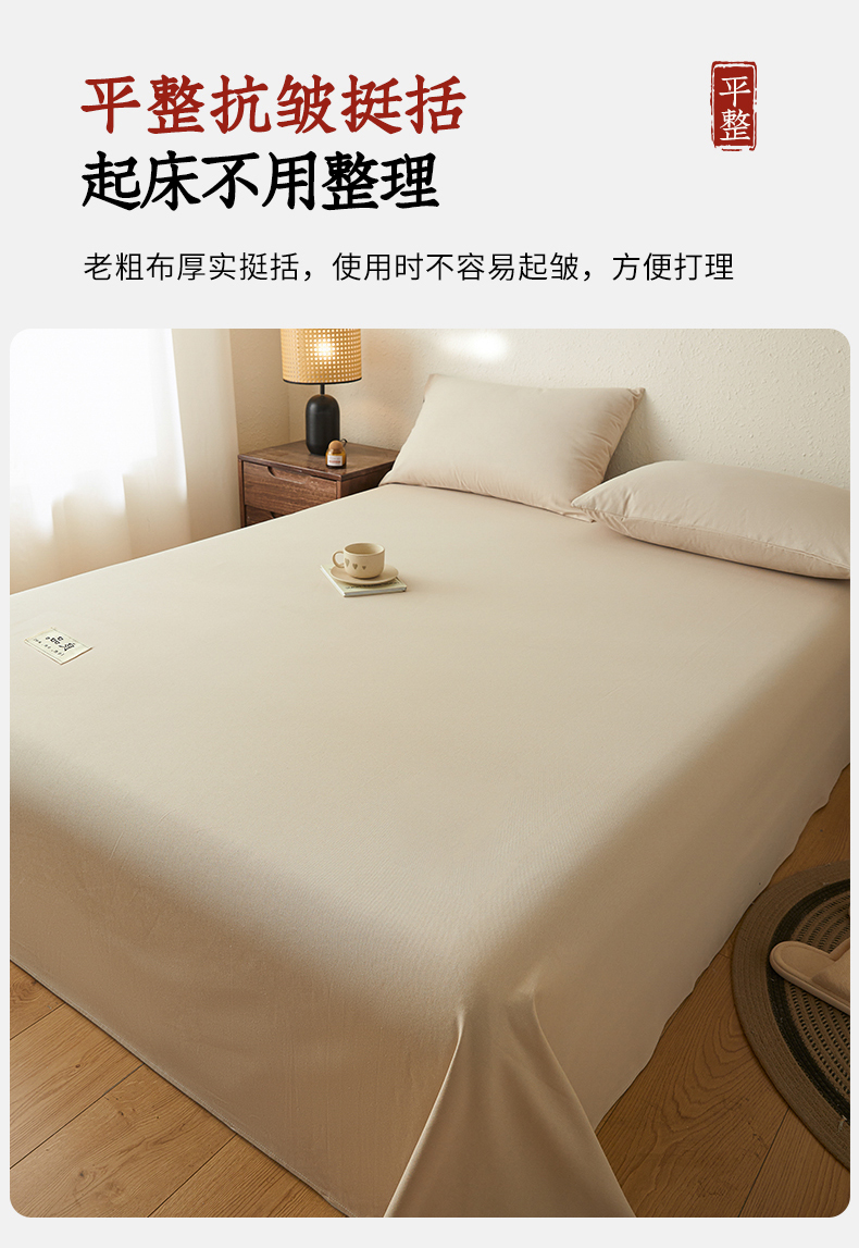 商品名称:鑫钰2025新款纯棉全棉老粗布床单--LP纯色系列 卡其