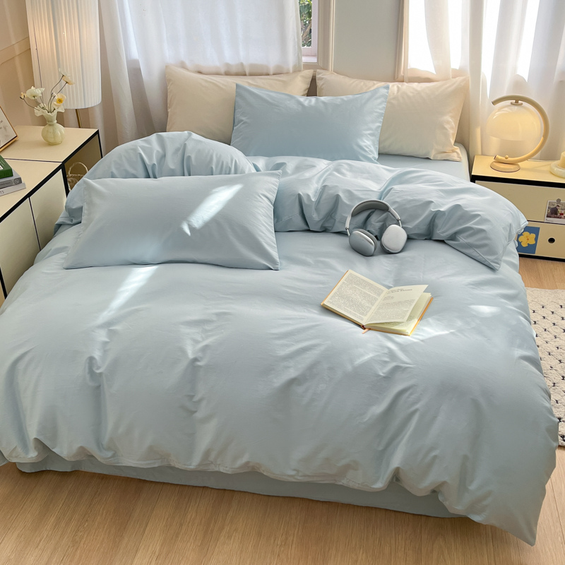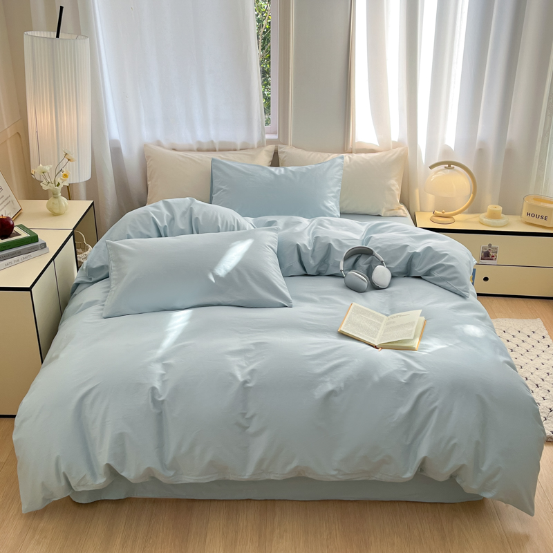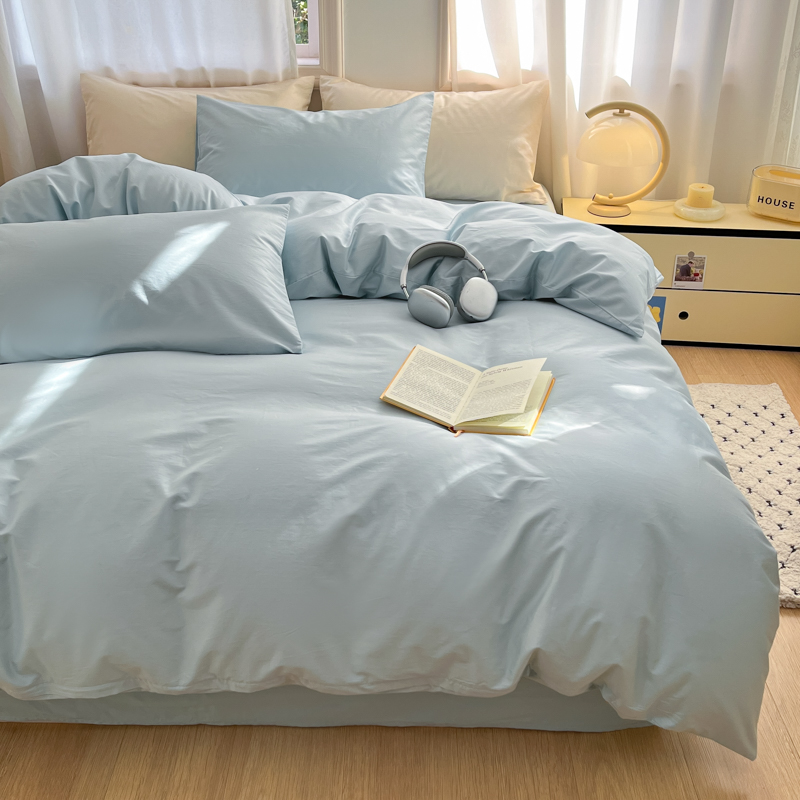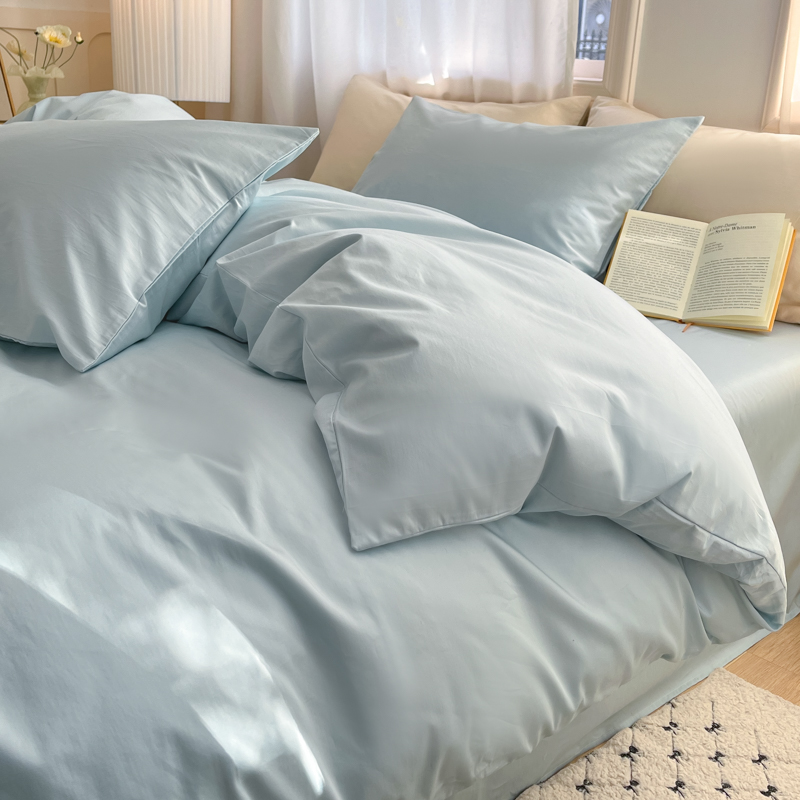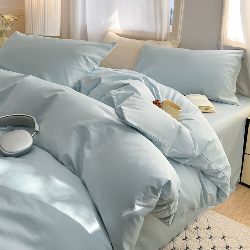 耀悦家纺 2025新款A类纯棉60支拼色四件套 海盐蓝