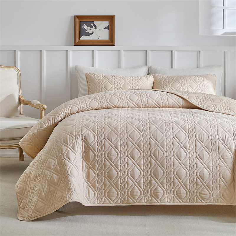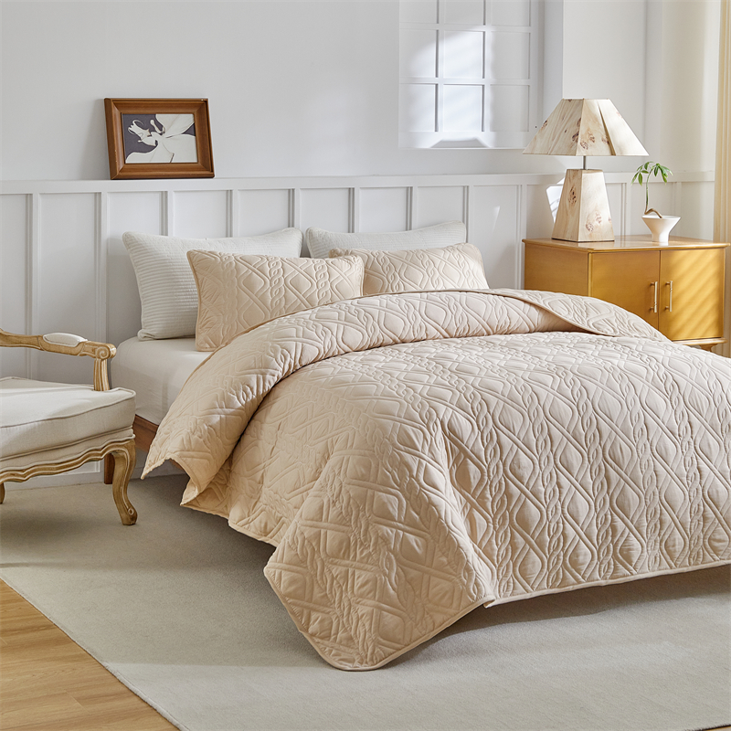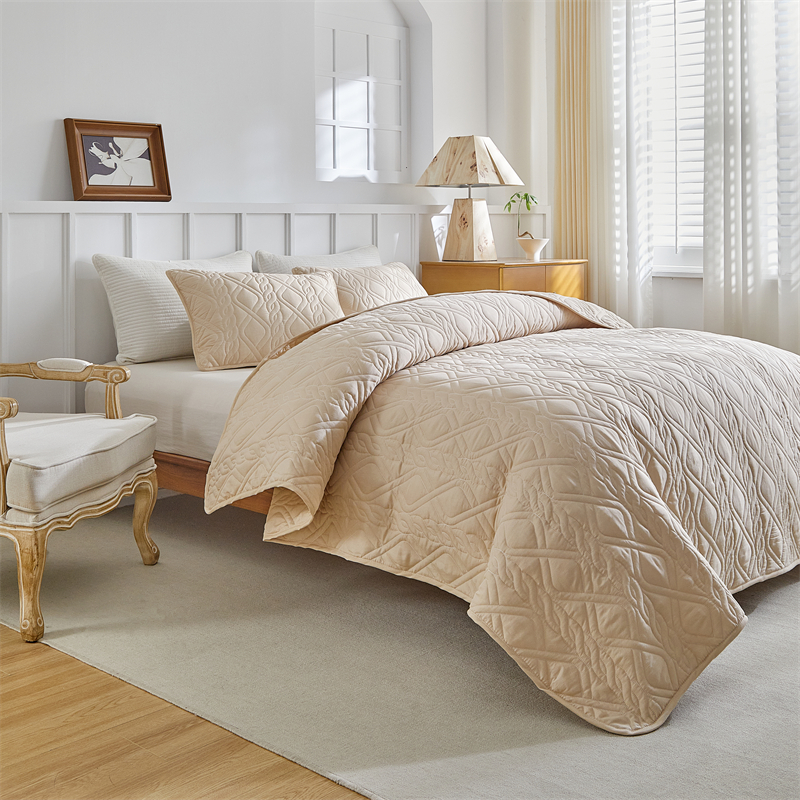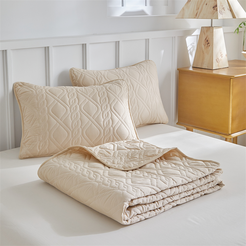 温宁家纺 2025新款菱形格床盖三件套 国外薄被 菱形格-米色