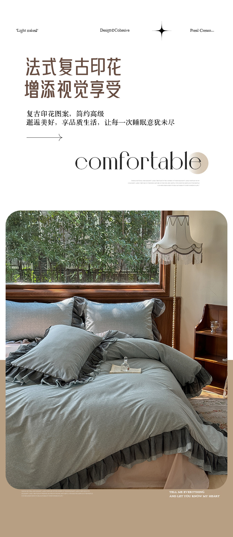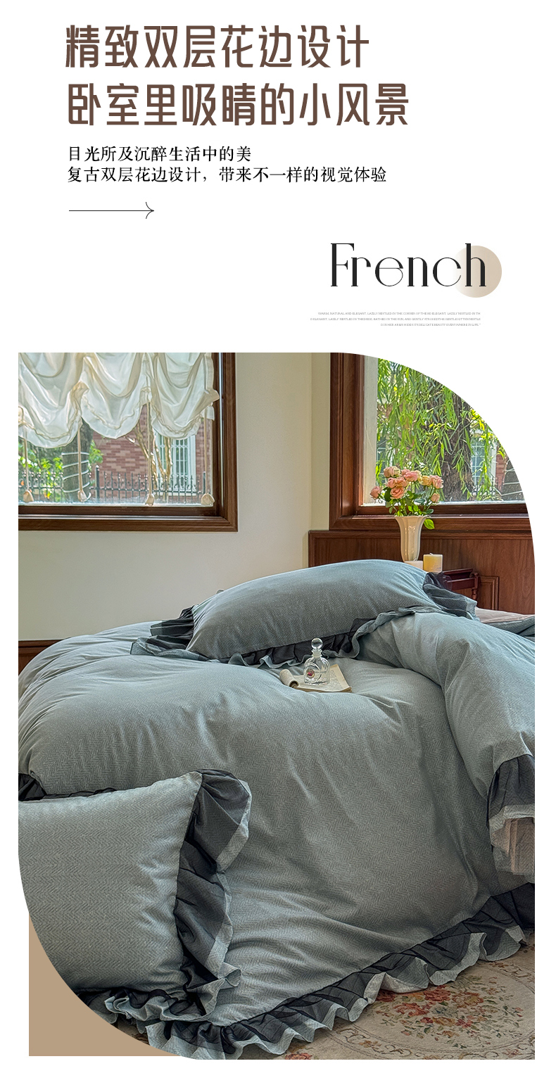 商品名称:TT.one 塔塔家居 2025新款全棉法式浪漫双层花边四件套-森野系列 秘语