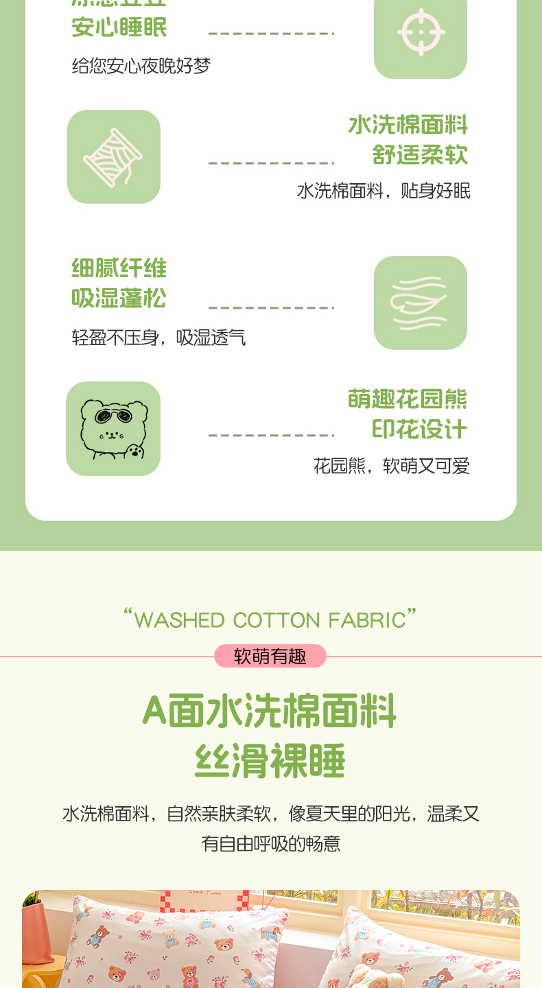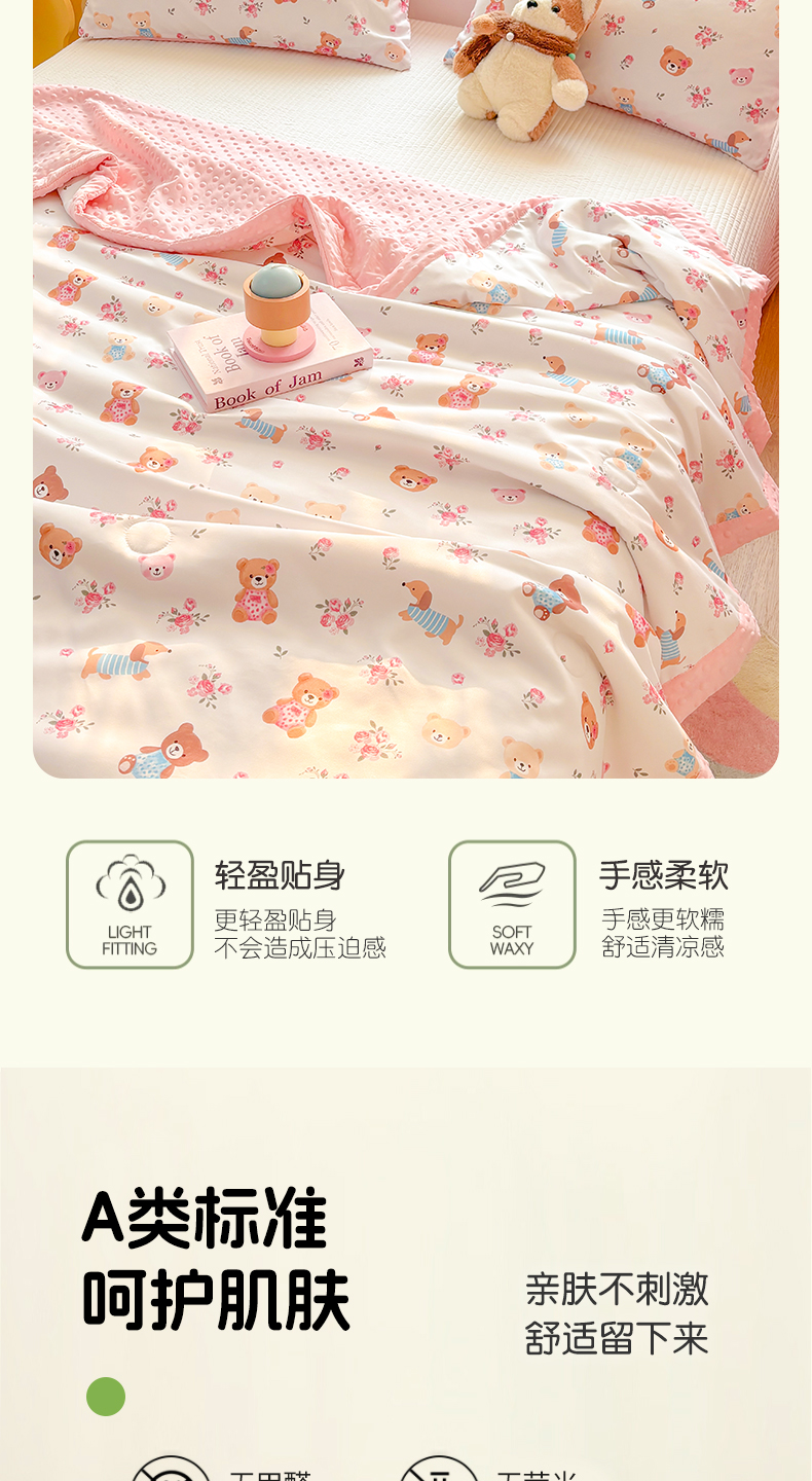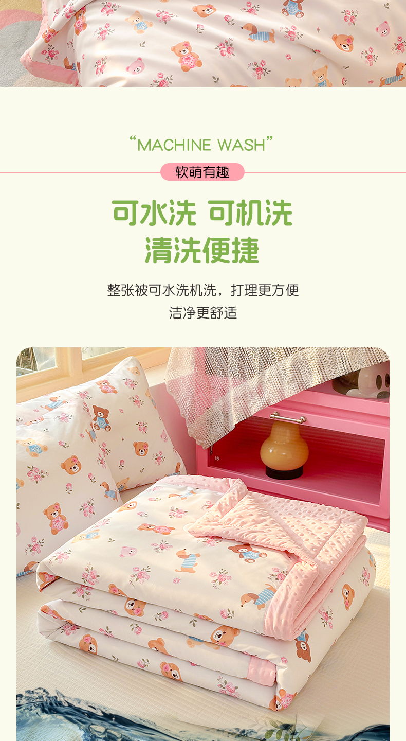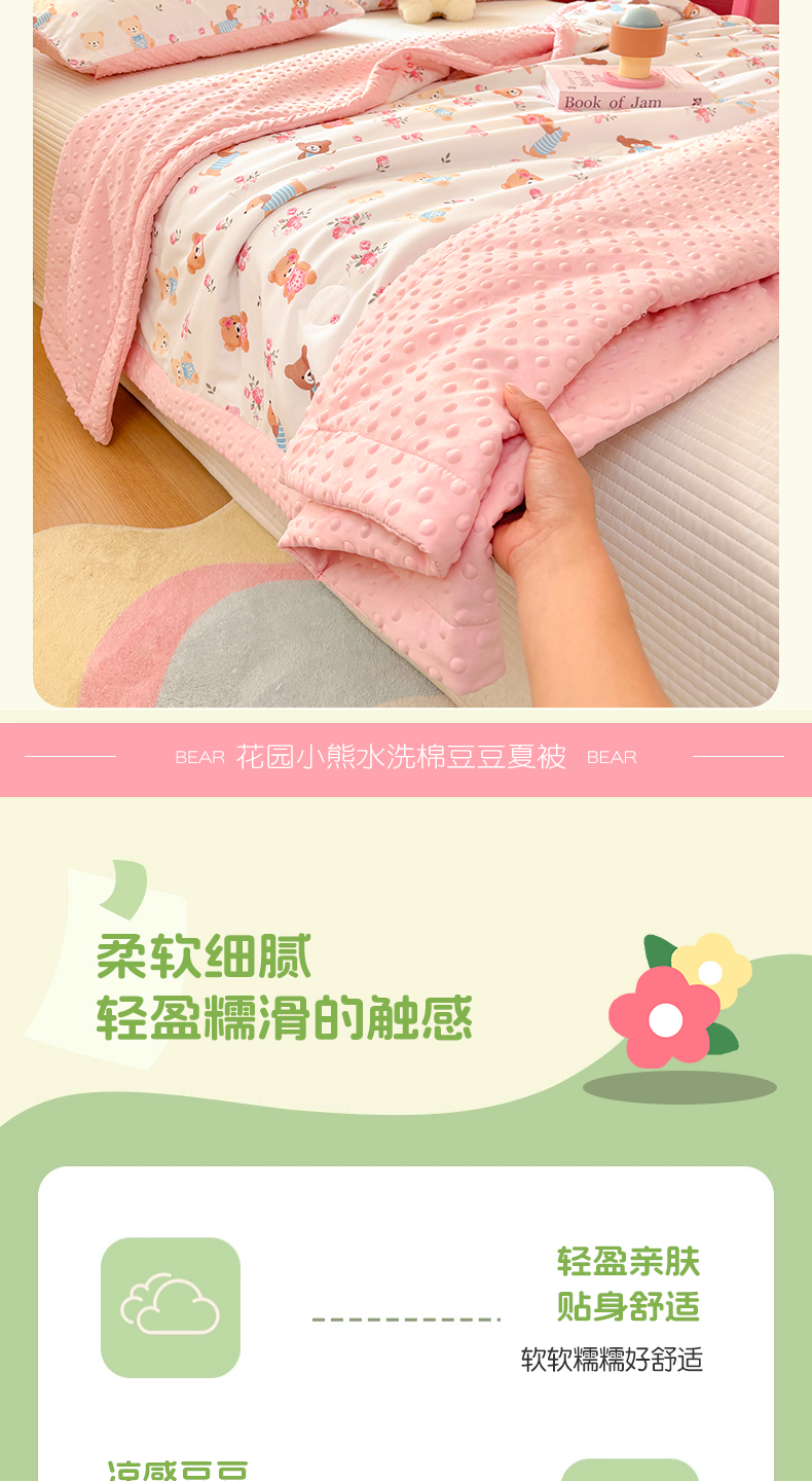 恒畅 2025新款A类水洗棉印花豆豆被抗菌夏被夏凉被空调被 花园小熊