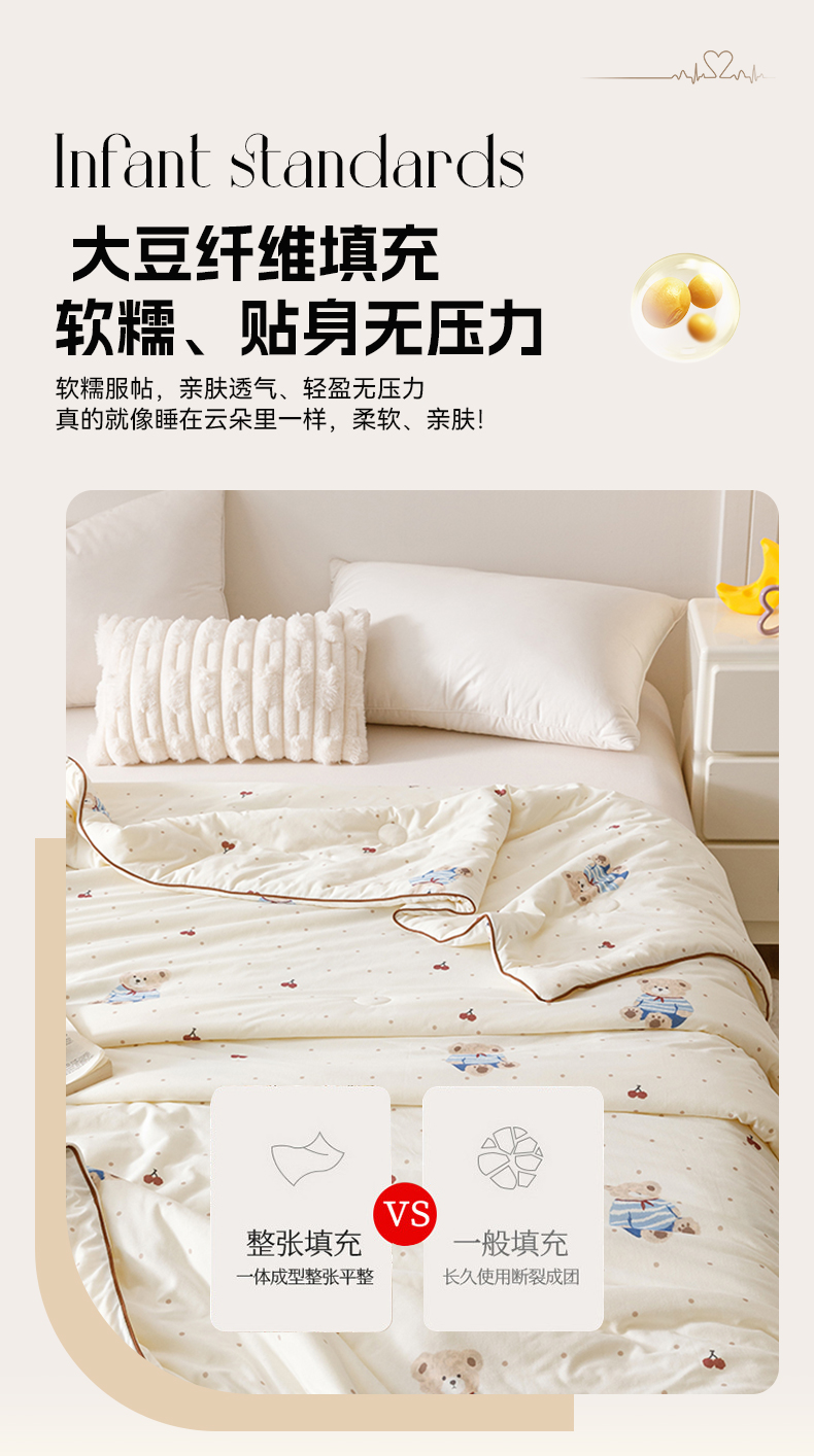 商品名称:优被业 2025新款A类牛奶丝针织棉夏被20%大豆(四周踩棉)软糯夏凉被空调被 布丁熊