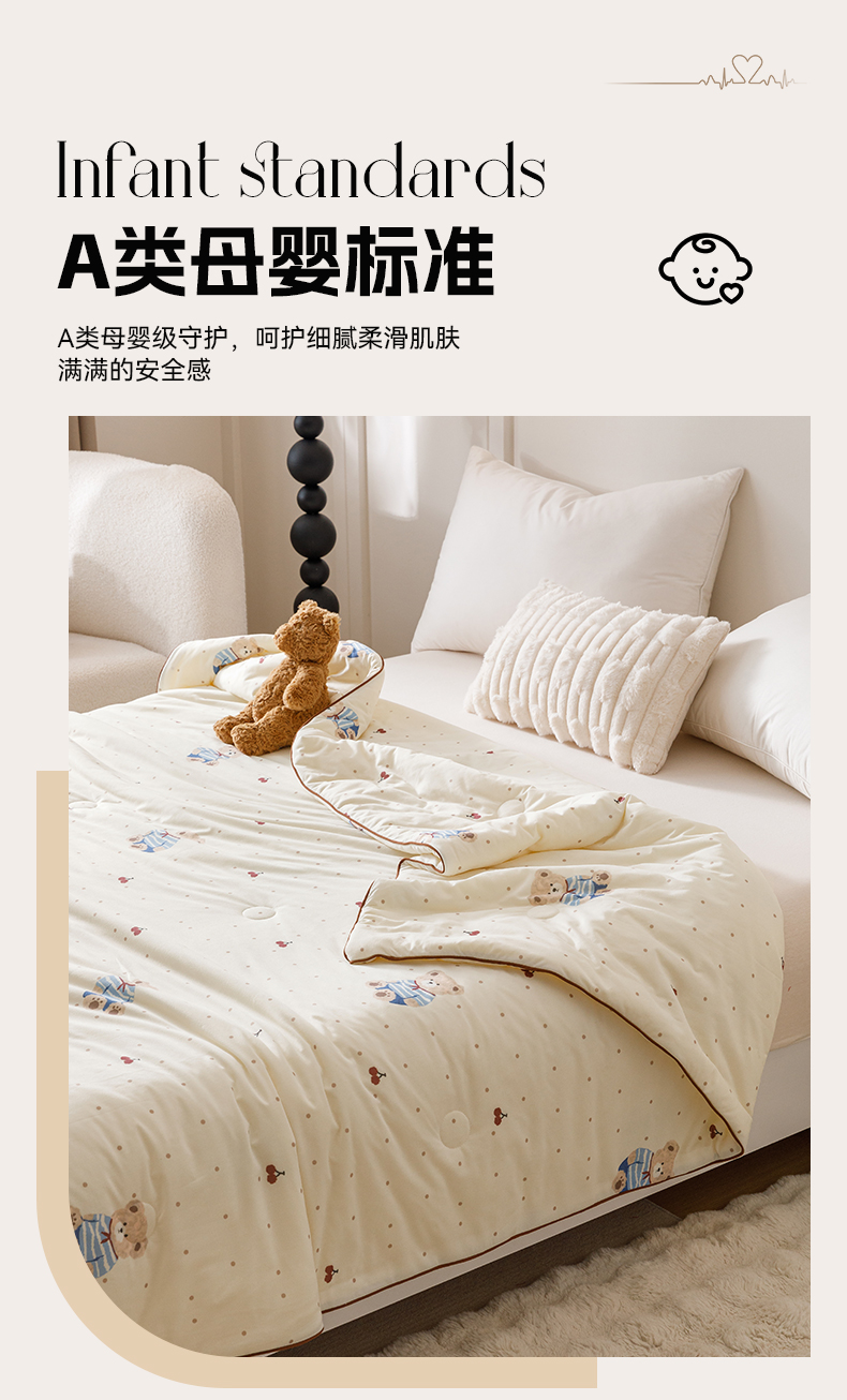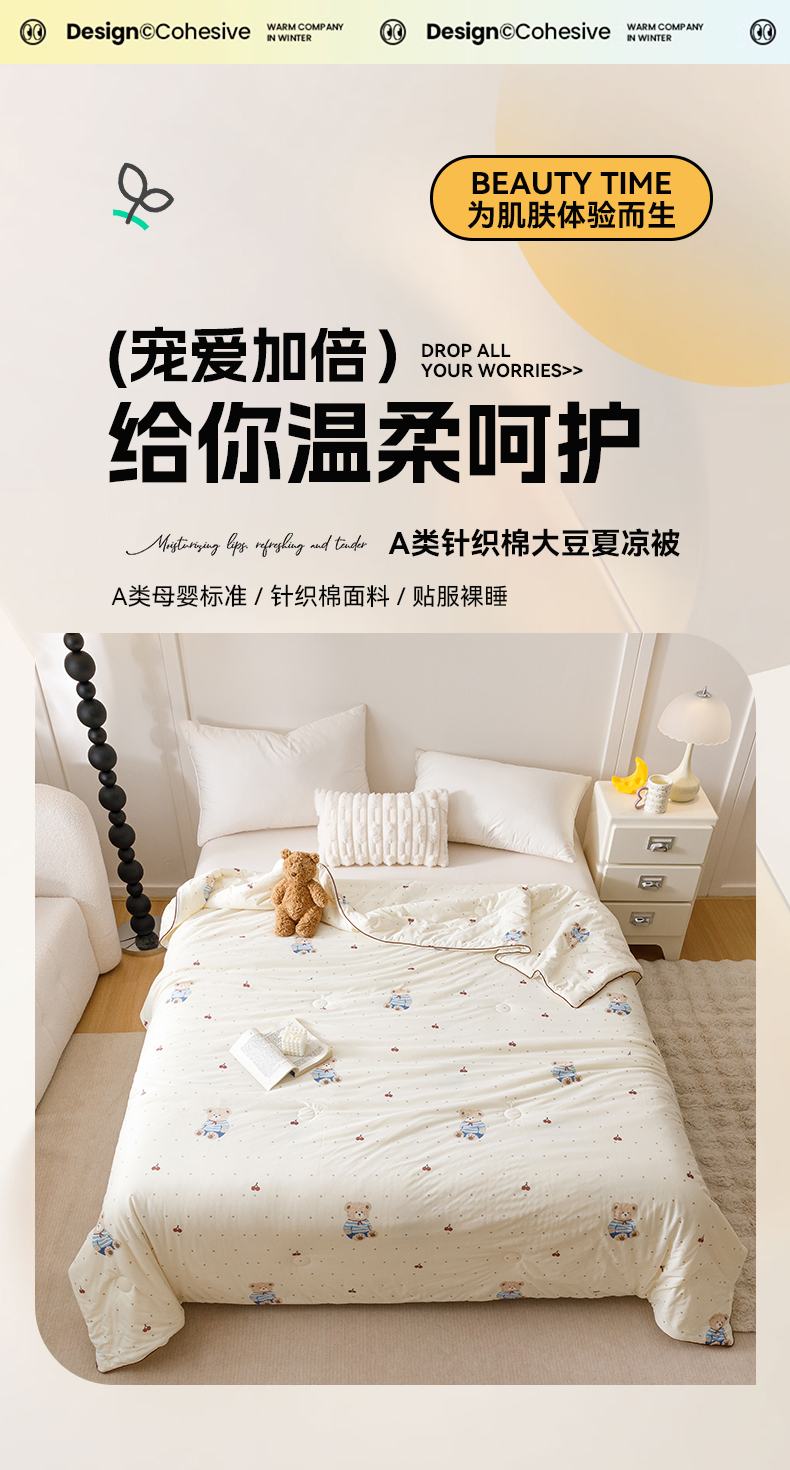 优被业 2025新款A类牛奶丝针织棉夏被20%大豆(四周踩棉)软糯夏凉被空调被 布丁熊