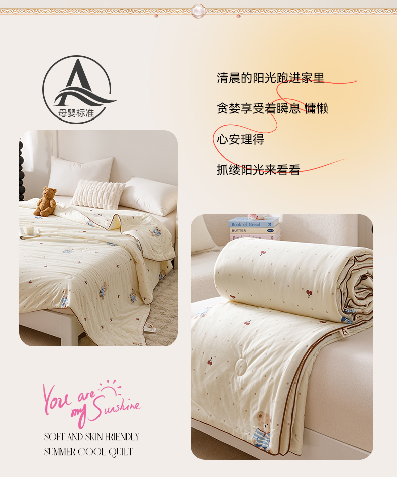 (总)优被业 2025新款A类针织有氧双层纱夏被10%大豆夏被空调被夏凉被,爱心小熊,波点马,春和,花涧兔,花田薇,蕾丝蝴蝶结,敏敏,摩卡,奶油波点,清风,维尼熊,问秋,云山沐晚