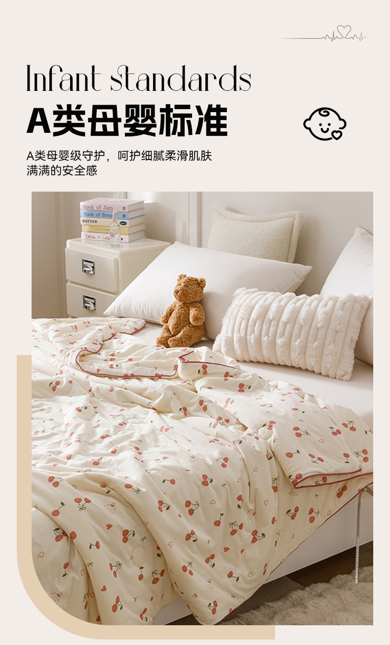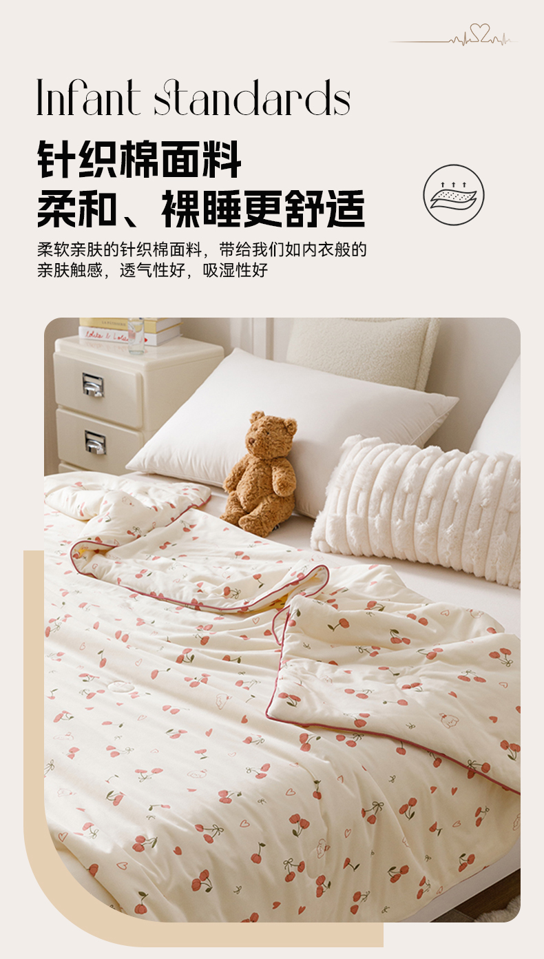 商品名称:优被业 2025新款A类牛奶丝针织棉夏被20%大豆(四周踩棉)软糯夏凉被空调被 甜心派