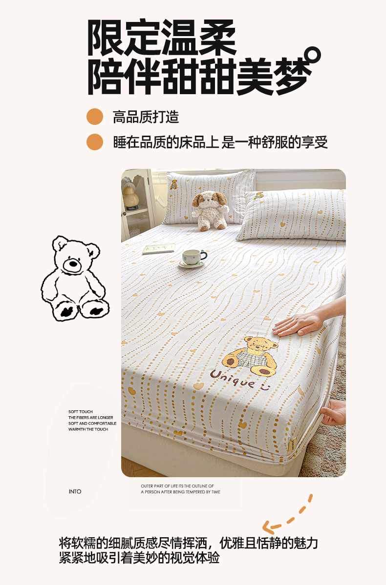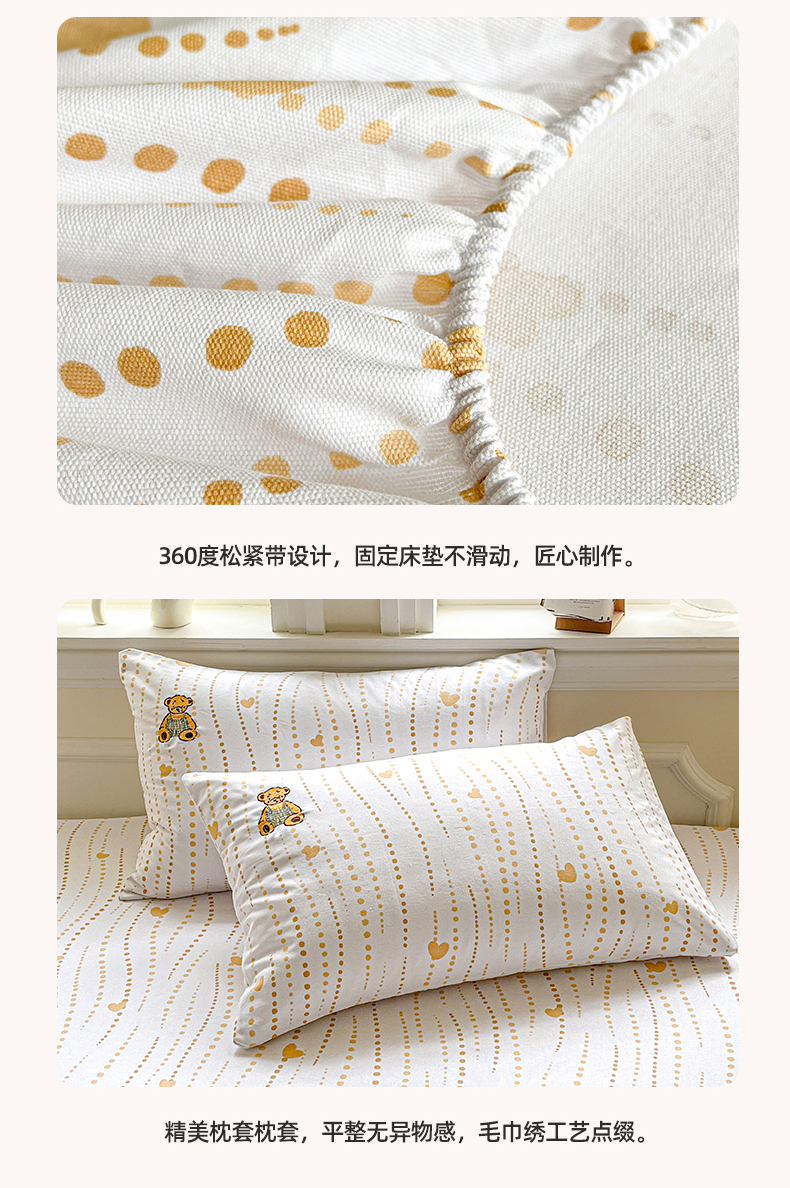 • 91家纺网 家纺一手货源 找家纺 笙意家纺2025新款全棉老粗布单床笠 抱抱熊-流心