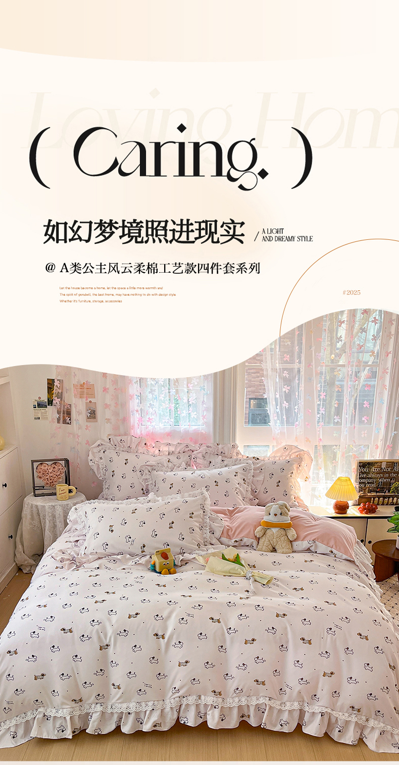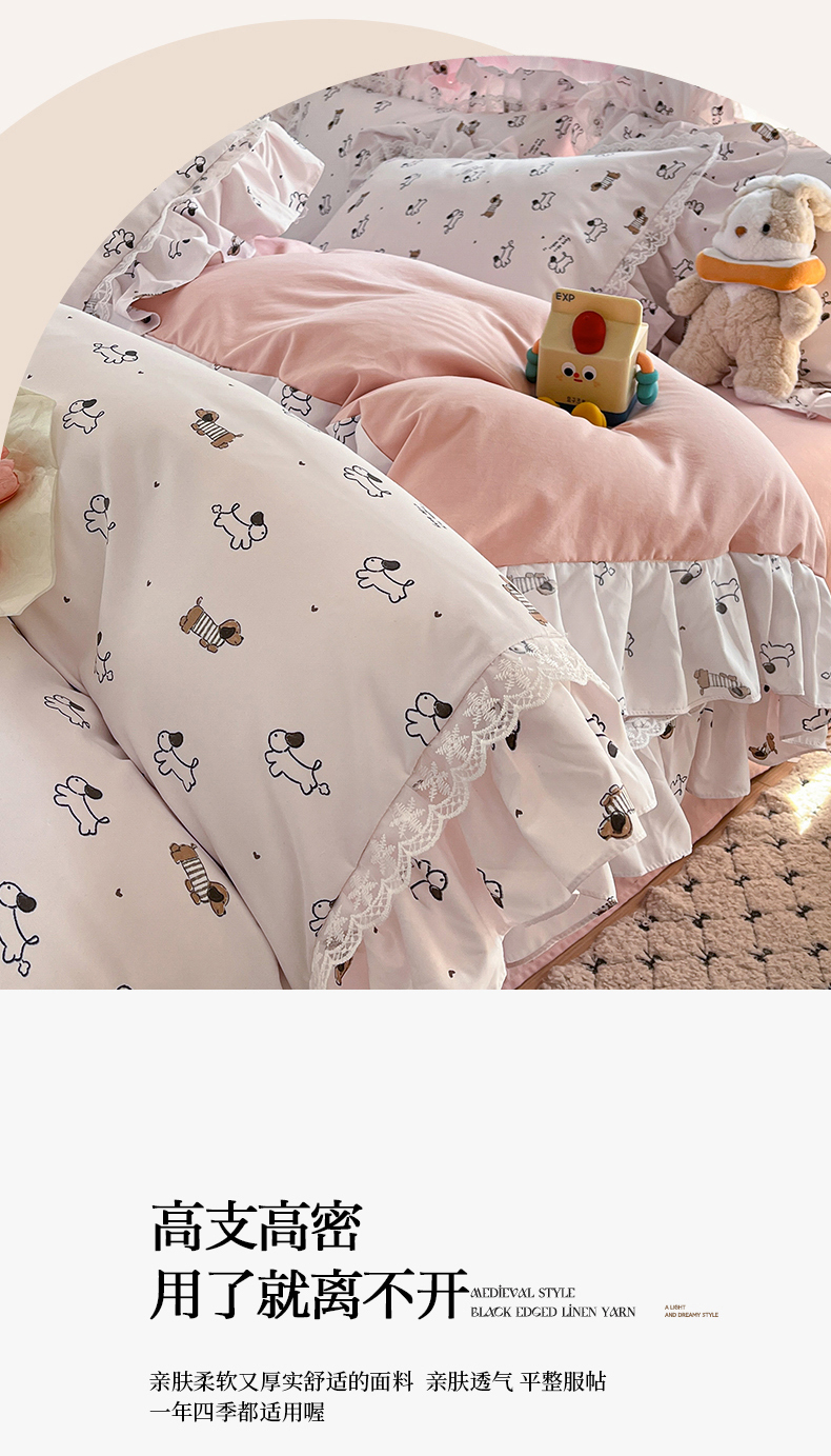 喜梦缘家纺 2025A类公主风云柔棉工艺款四件套 腊肠乐园