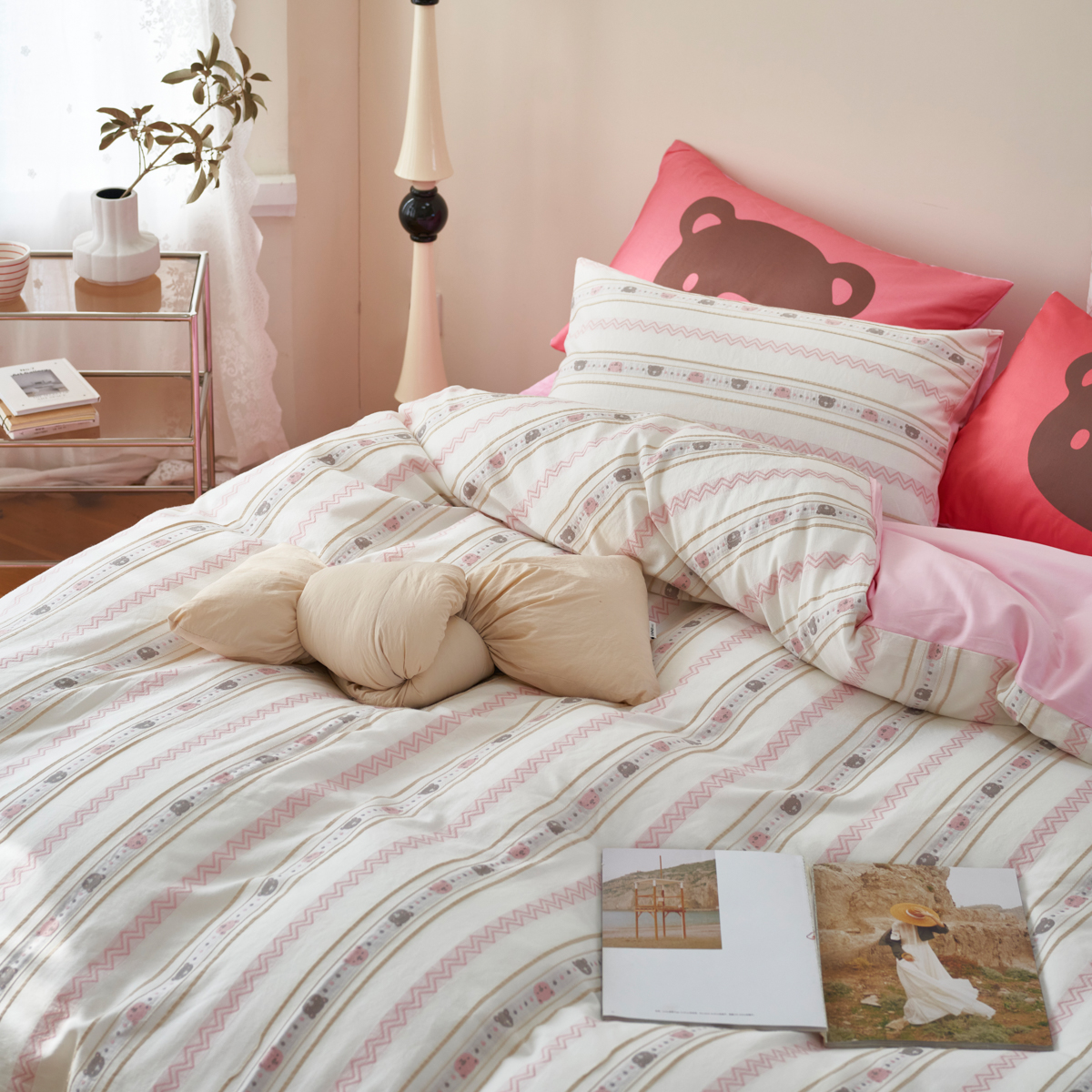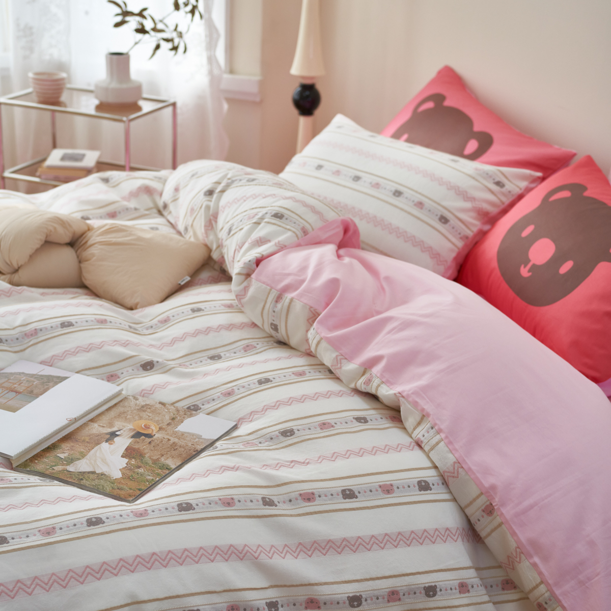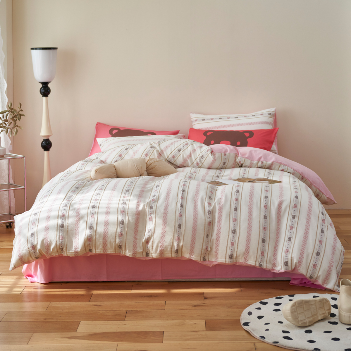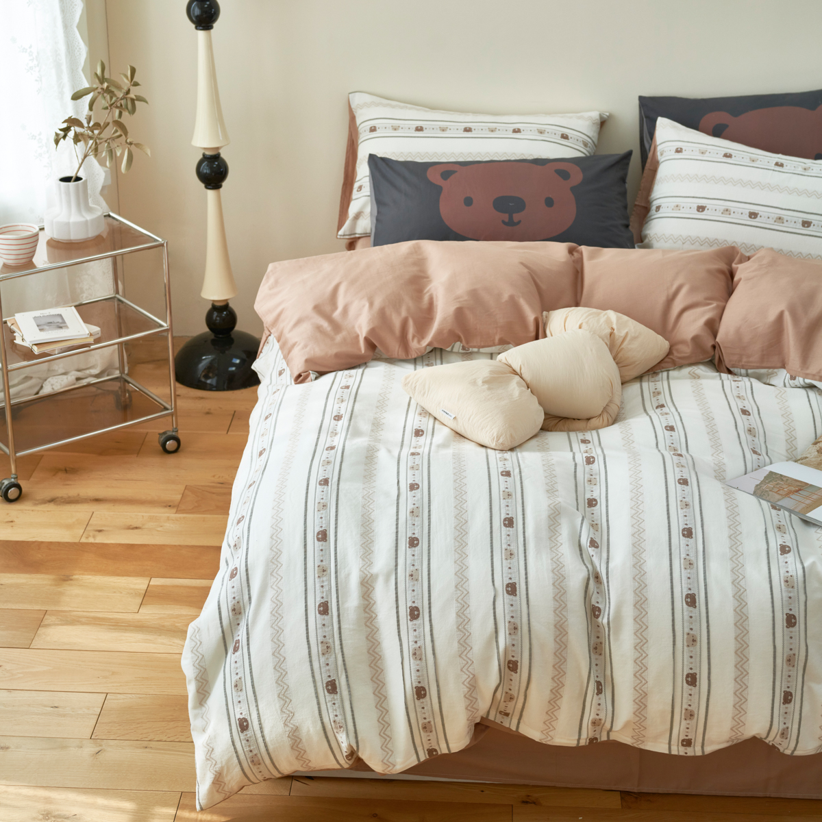 当前位置: 91家纺网 > 商品网购 > 床品套件 > 四件套 > 提花四件套 > 金丝鸟家纺 2025新款专版全棉三层纱提花四件套波纹小熊系列 波纹小熊 咖