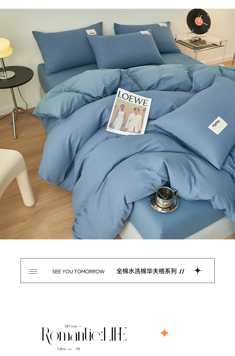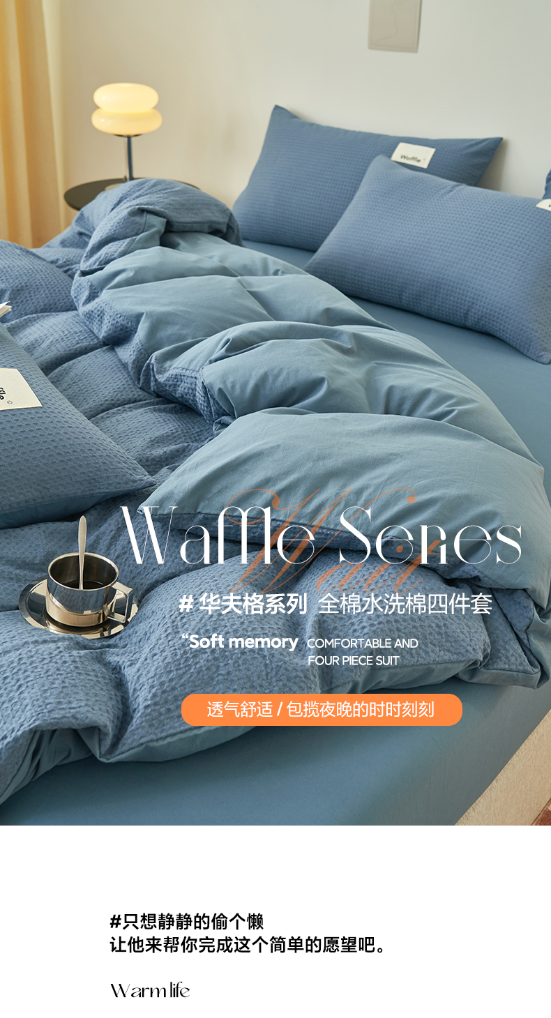 商品名称:2025新款40S纯棉华夫格四件套 华夫格-焦糖