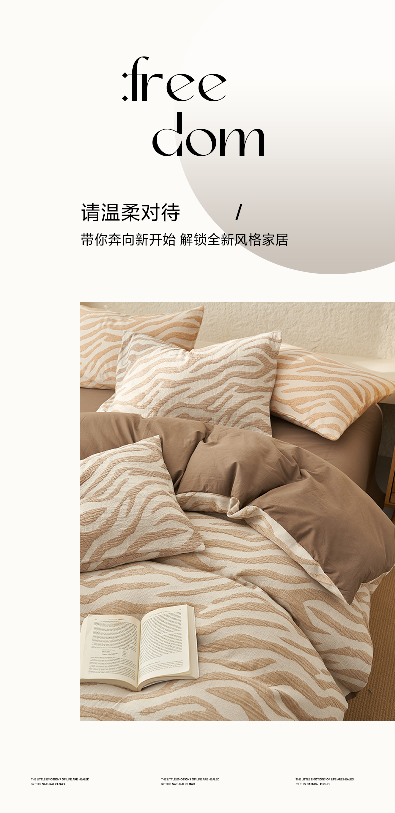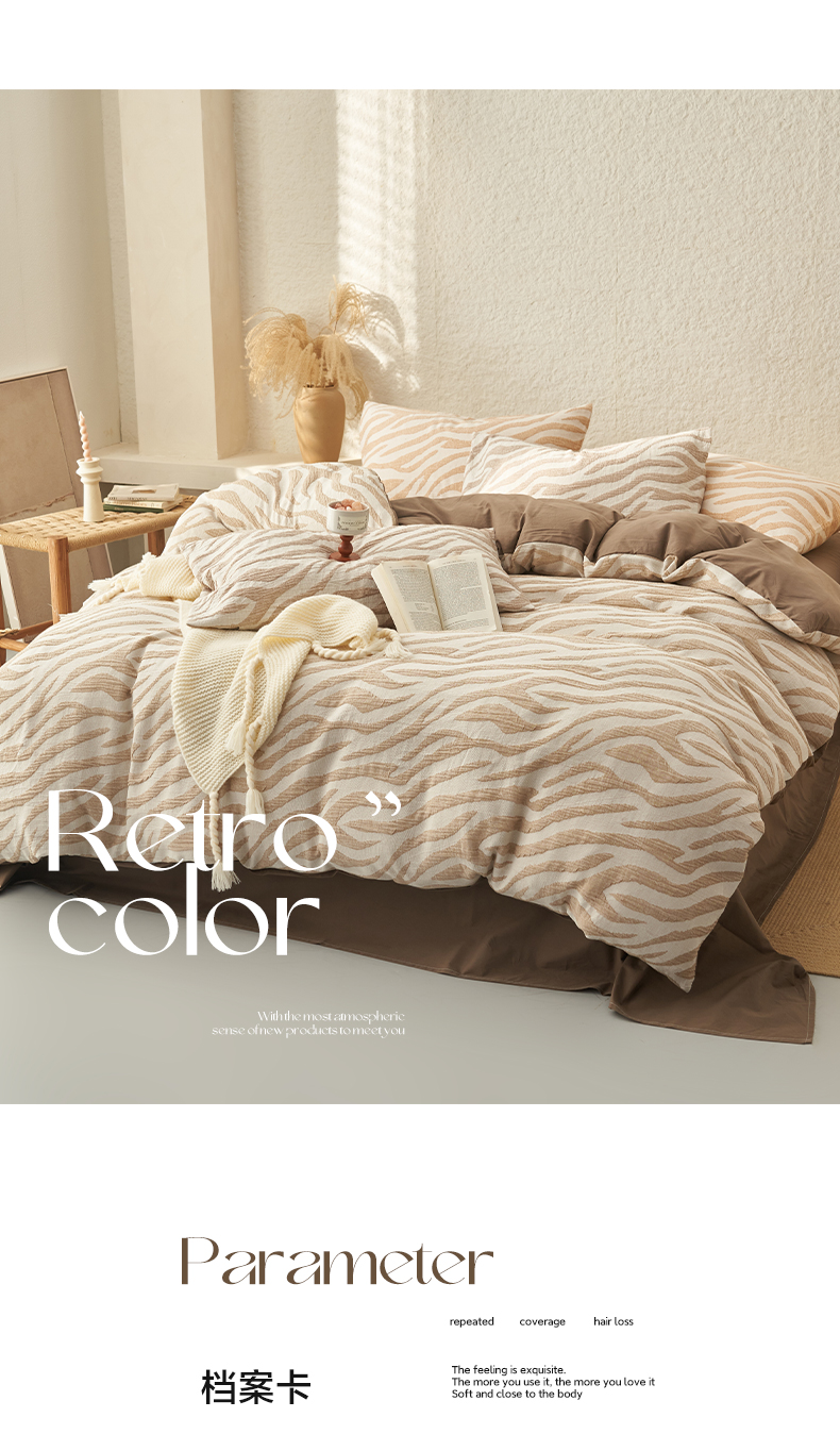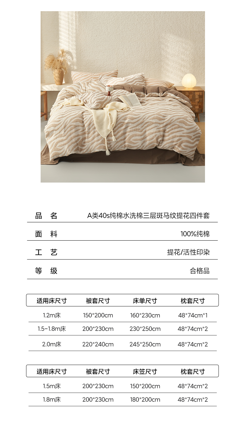 商品名称:2025新款纯棉水洗棉三层斑马纹提花四件套 斑马纹四件套-豆沙