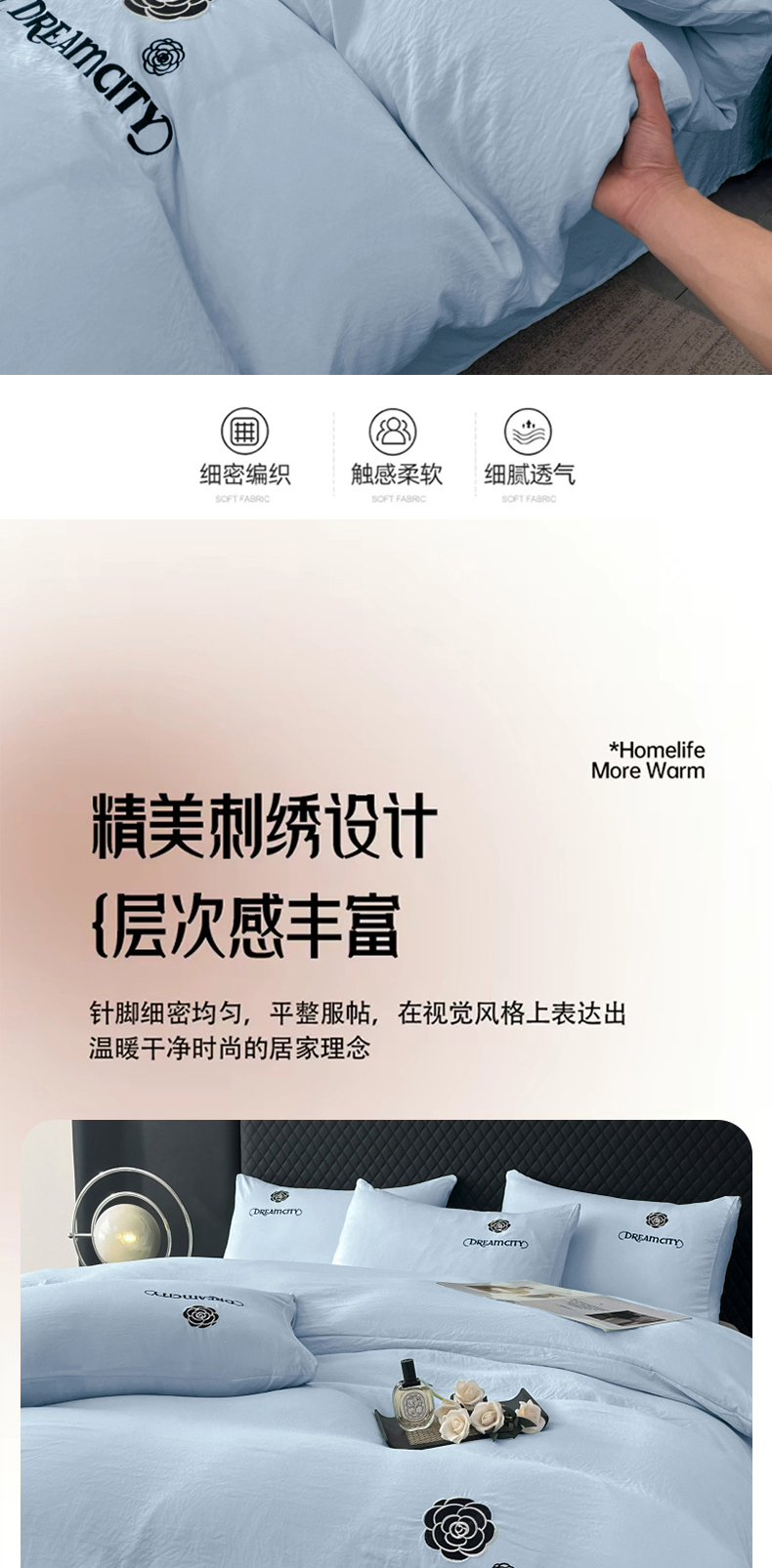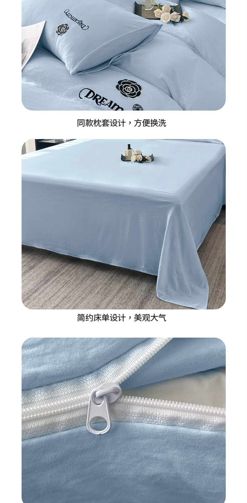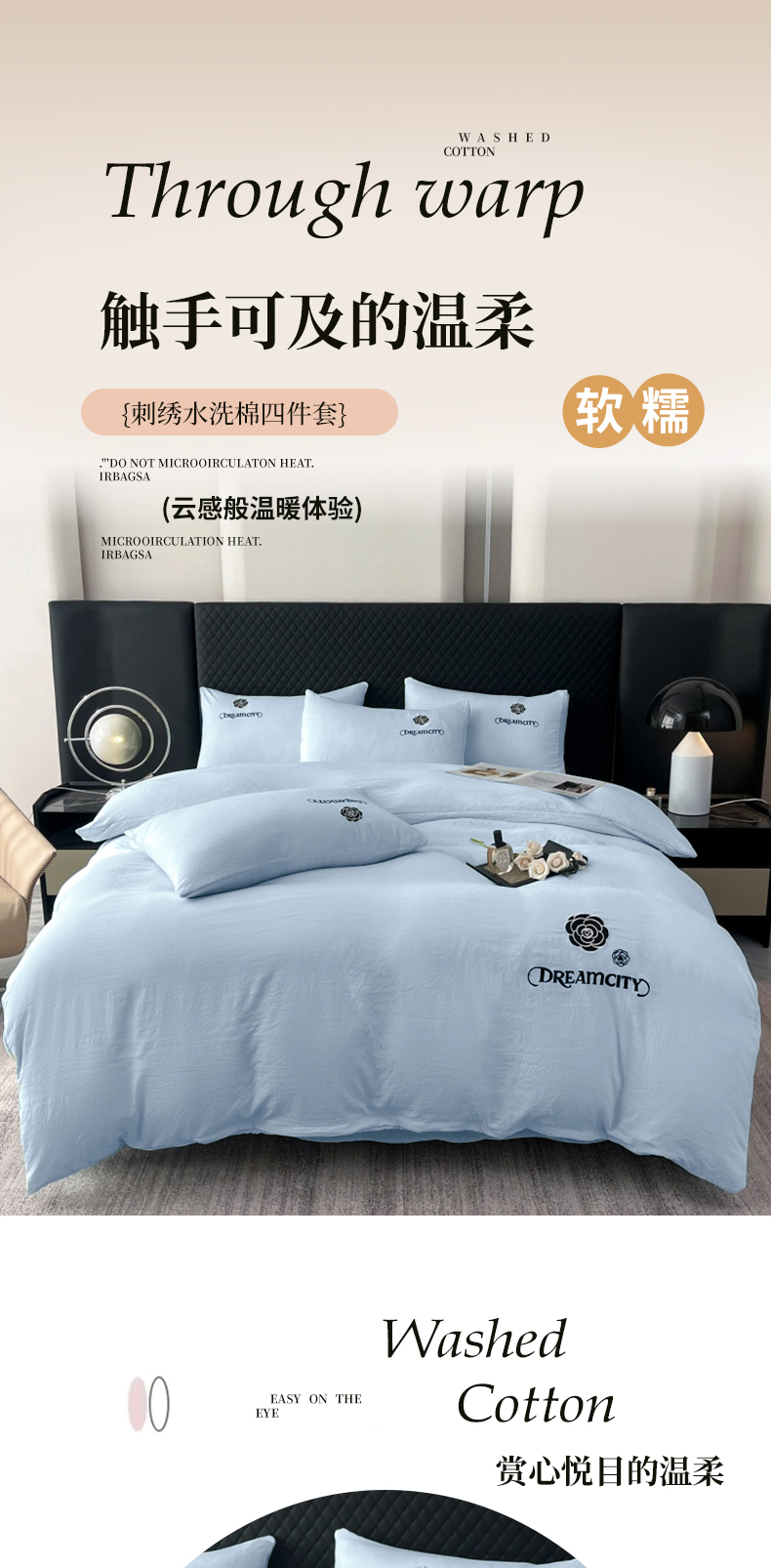 当前位置: 91家纺网 > 商品网购 > 床品套件 > 四件套 > 水洗棉四件套 > 麒东家纺 2025新款刺绣水洗棉四件套山茶花系列 蓝色