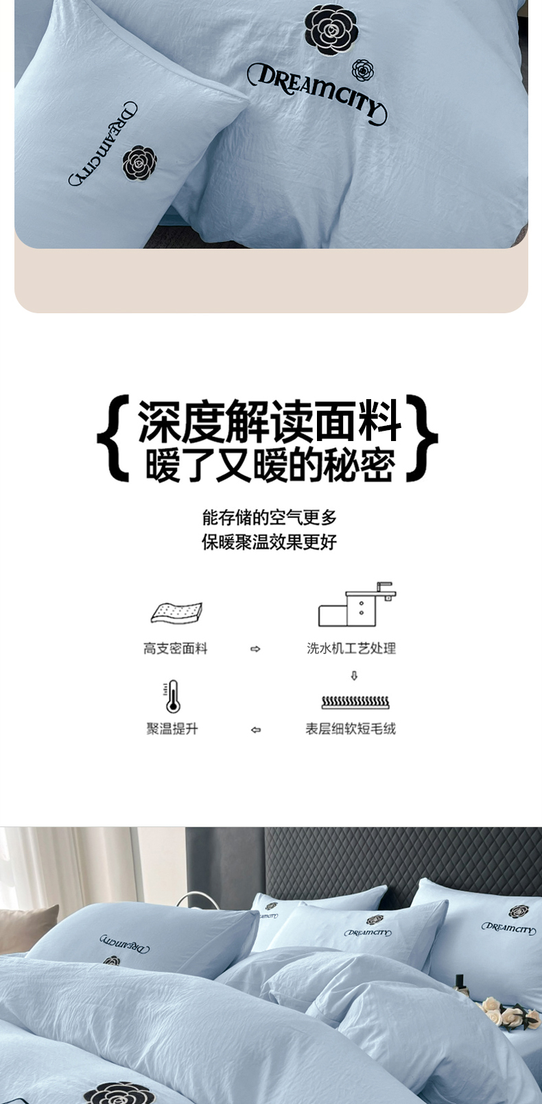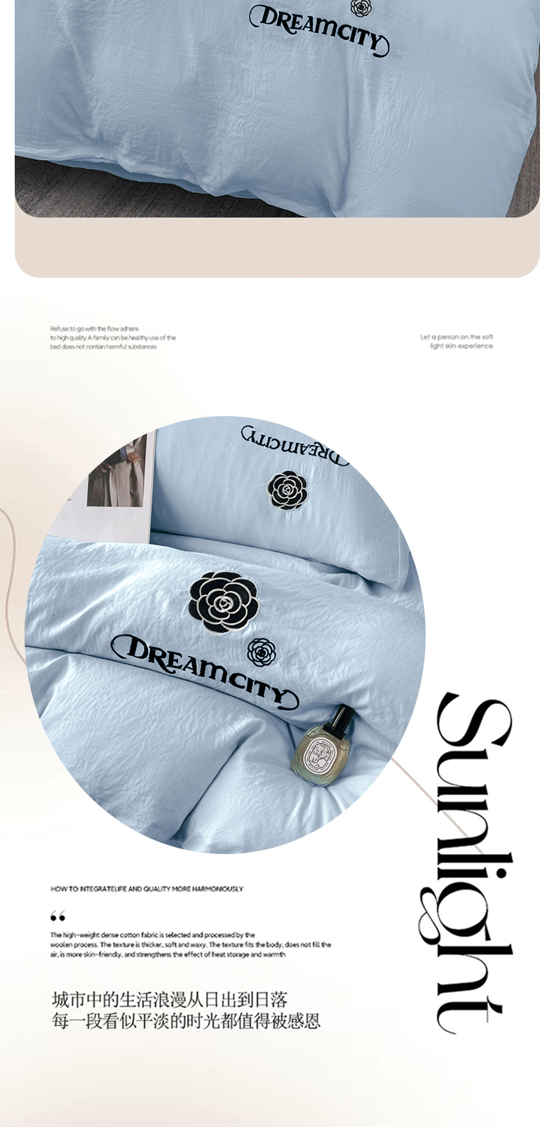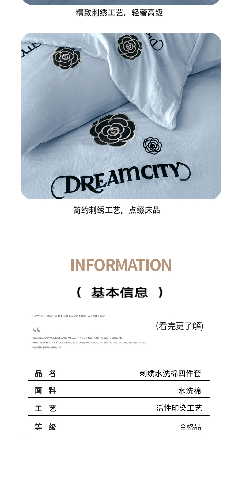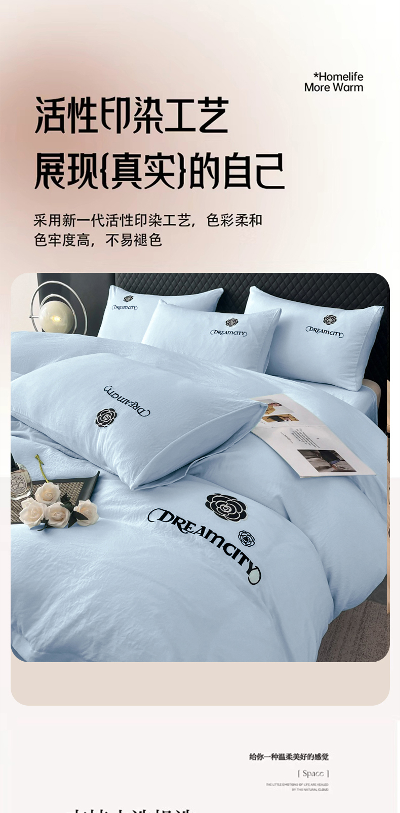 当前位置: 91家纺网 > 商品网购 > 床品套件 > 四件套 > 水洗棉四件套 > 麒东家纺 2025新款刺绣水洗棉四件套山茶花系列 蓝色