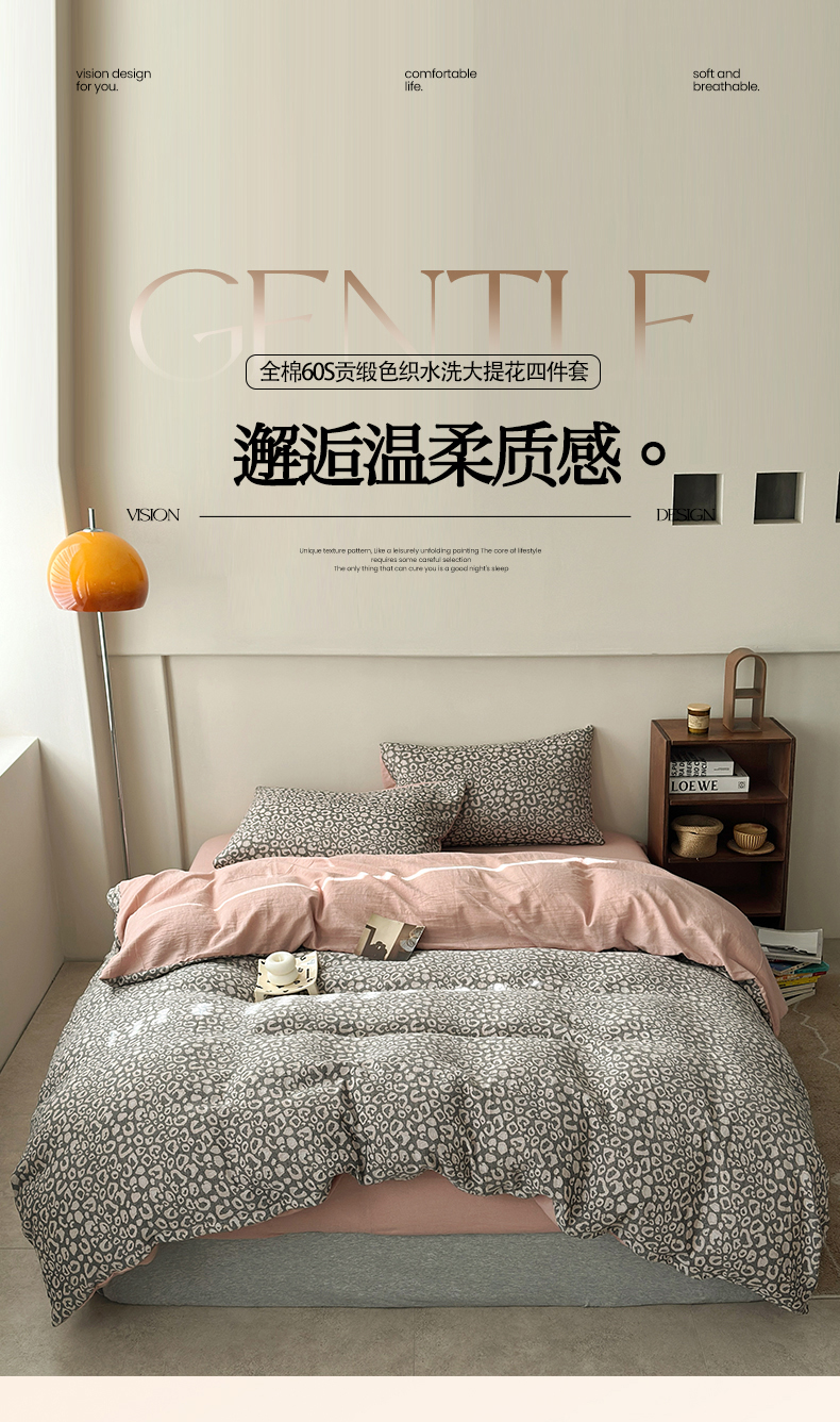 (总)水洗的故事(原有乐家) 2025新款秋冬60s全棉贡缎色织大提花四件套,豹纹-咖,豹纹-灰粉,四月里-焦糖,四月里-燕麦,四月里-云水蓝