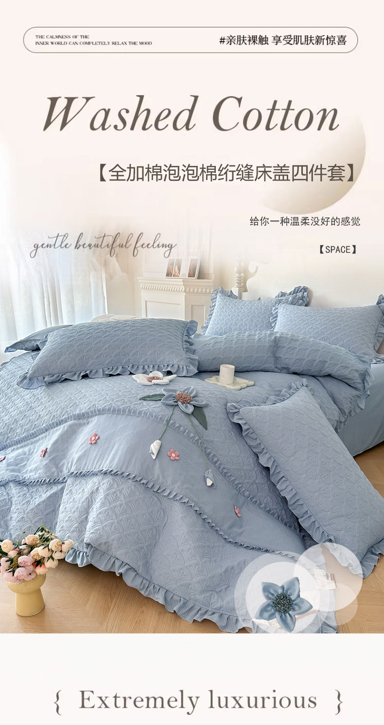 (总)兴美佳家纺 2025新款全加棉泡泡棉亲肤绗缝四件套-爱的家园