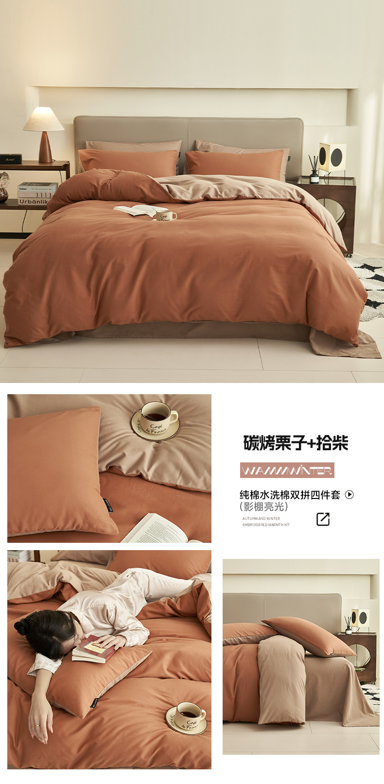 (总)2025新款全棉13372水洗棉双拼四件套(影棚暗光),天青韵白+拾柴,40暖木棕+拾柴,40驼+40暖木棕,安然蓝+毛毯灰,暗木幽香+宝藏灰,暗香紫砂+40驼,布鲁兰+拾柴,春风十里+浮生一梦,豆沙+毛毯灰,扶苏绿+毛毯灰,果绿+墨子绿,礁石灰+毛毯灰,漫雾+古巴砂,毛毯灰+宝藏灰,蘑菇黄+天青韵白,碳烤栗子+拾柴,天蓝+米黄,天青韵白+一念秋风,一叶知秋+袅袅灰,樱木粉+一念秋风