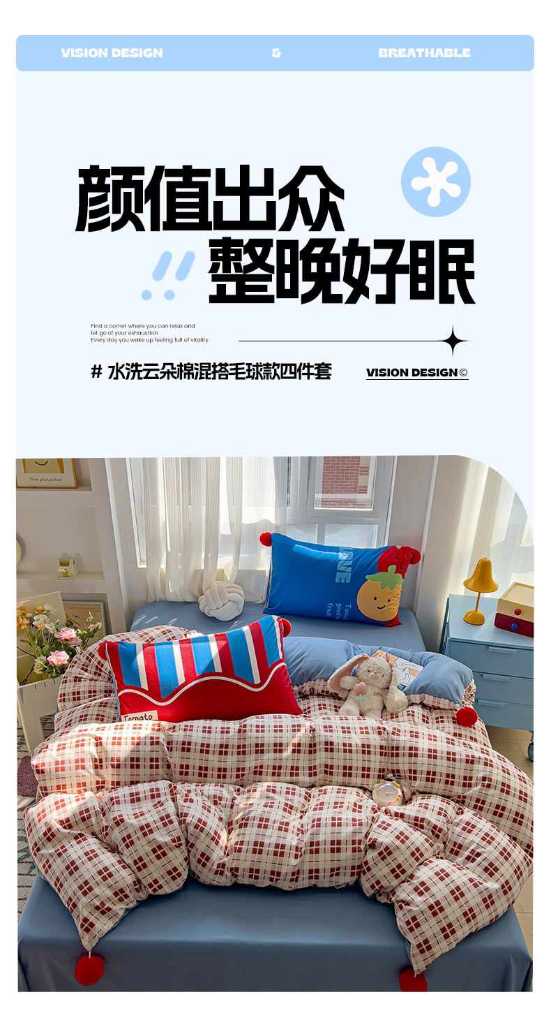 当前位置: 91家纺网 > 商品网购 > 床品套件 > 四件套 > 针织棉四件套 > 2025新款云感针织混搭毛球款四件套 番茄乐园