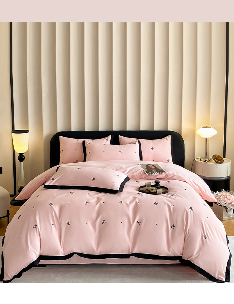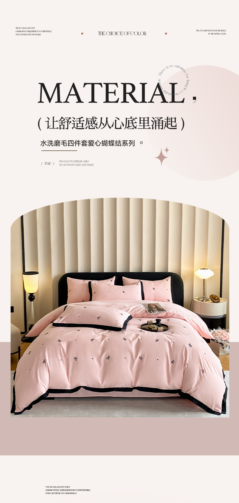 米彩家纺 2025新款水洗磨毛四件套-蝴蝶结爱心系列 蝴蝶结粉玉