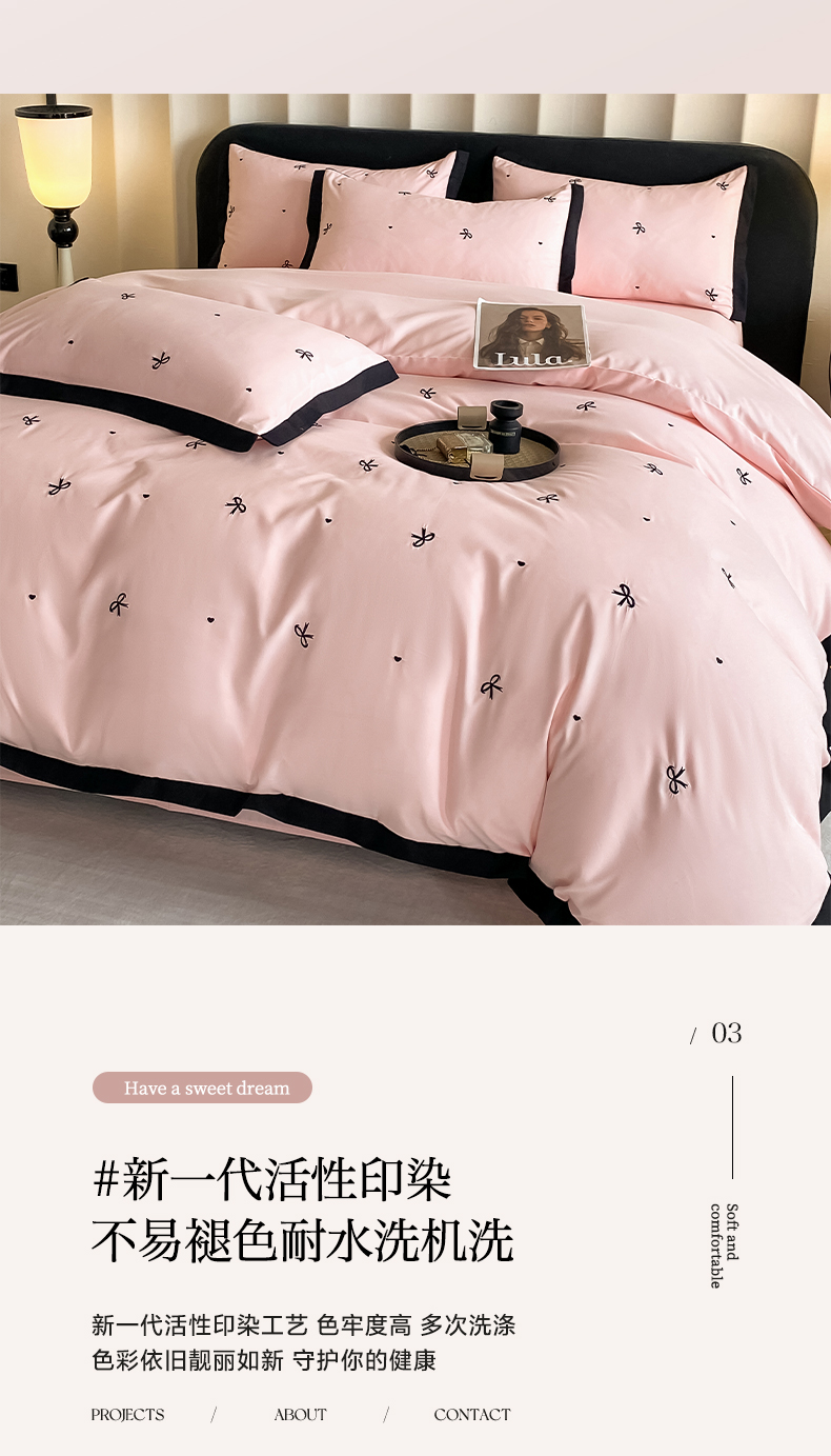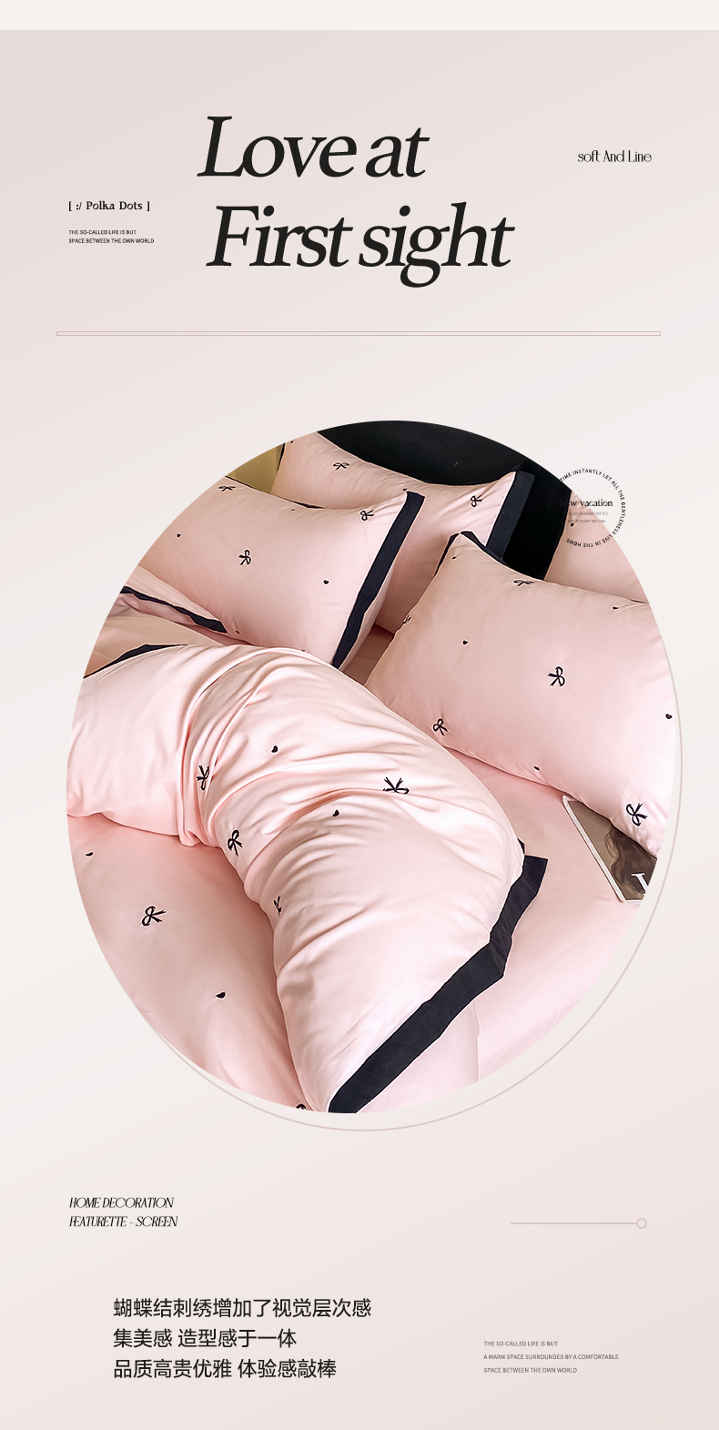 商品名称:米彩家纺 2025新款水洗磨毛四件套-蝴蝶结爱心系列 蝴蝶结粉玉
