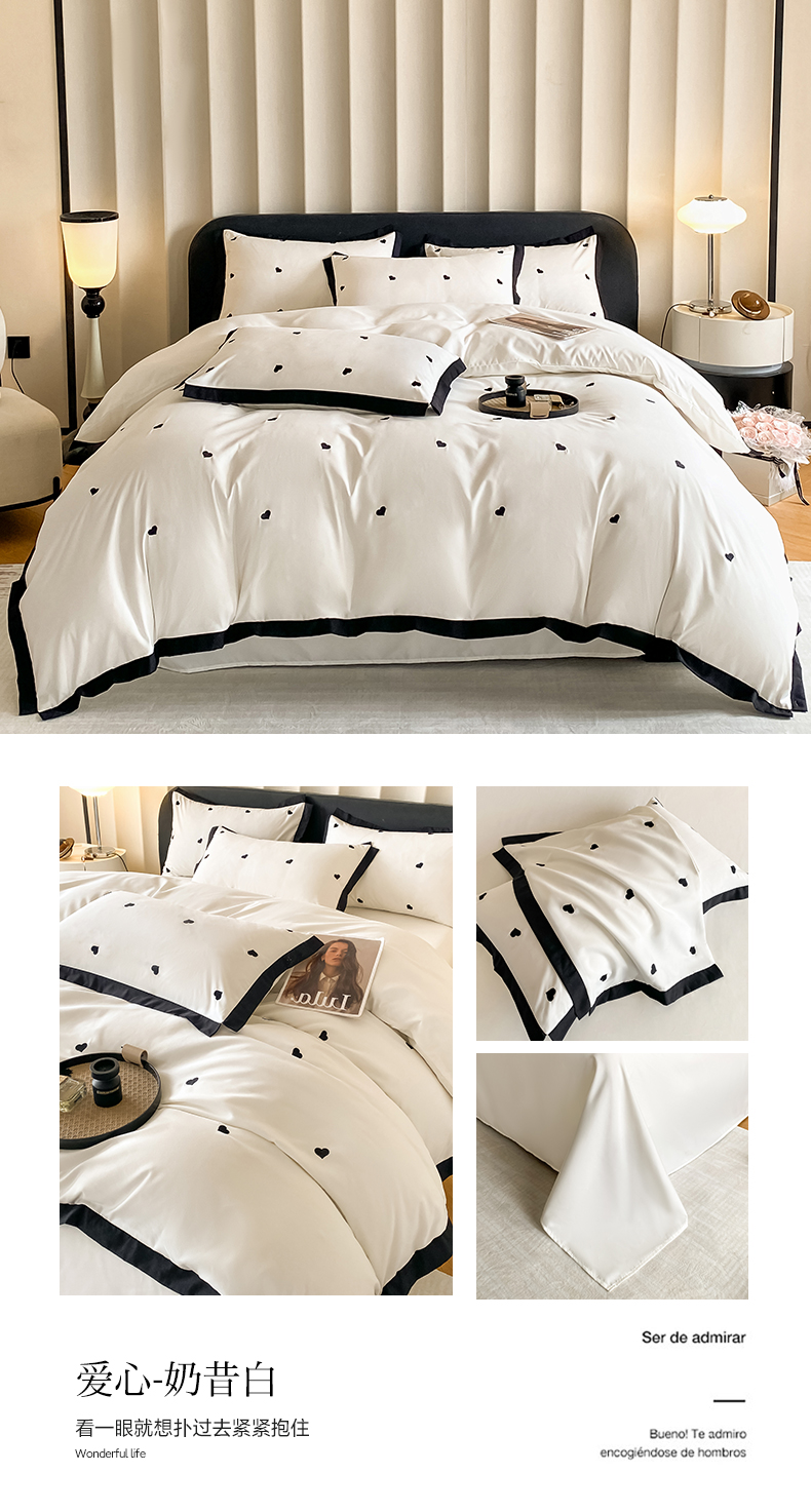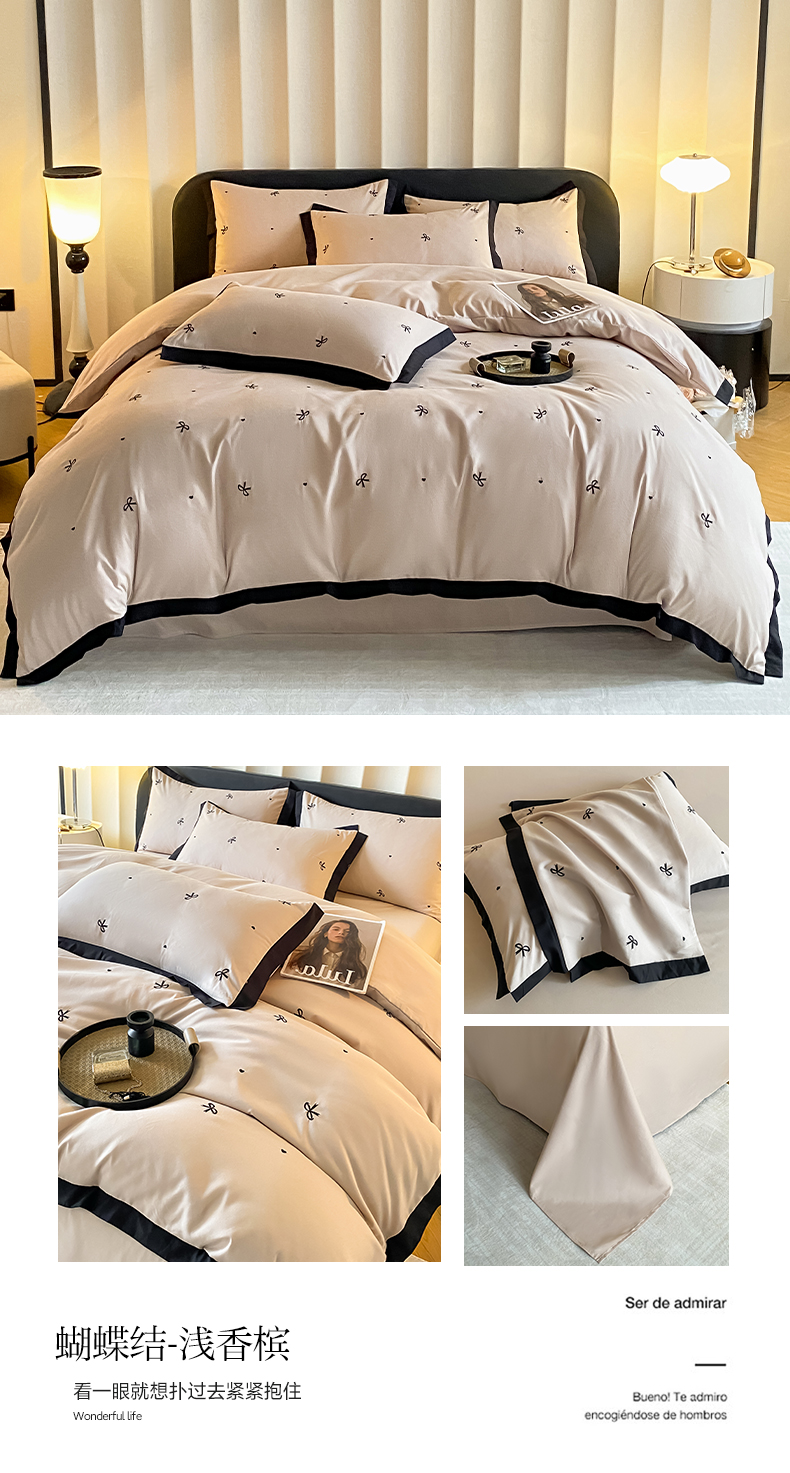 (总)米彩家纺 2025新款A类水洗真丝亮光浮雕花边四件套,粉香槟,粉玉,奶昔白,浅灰,天兰