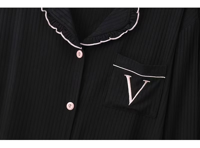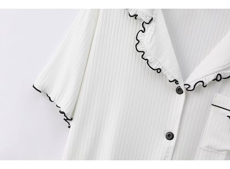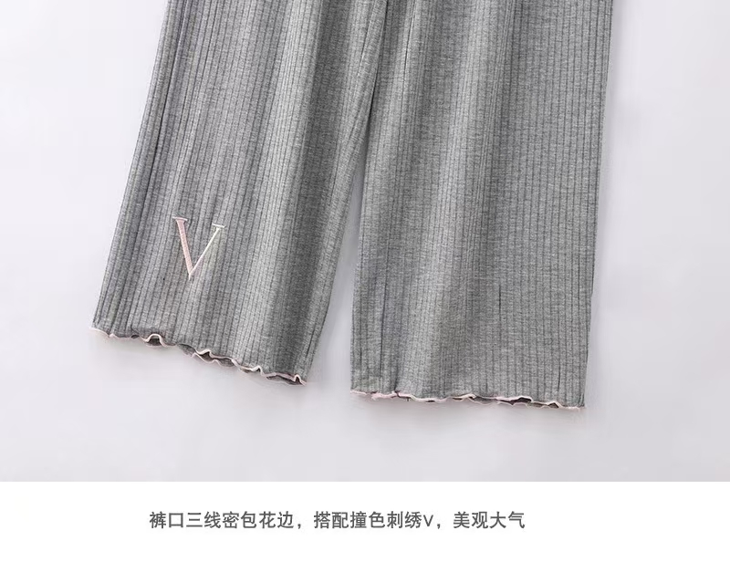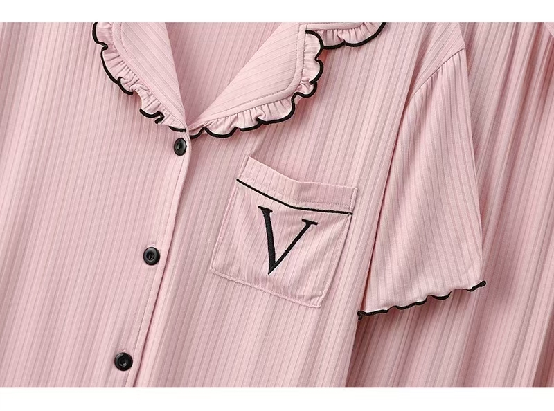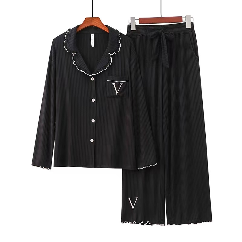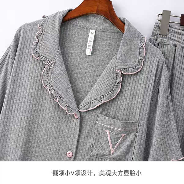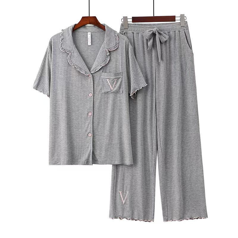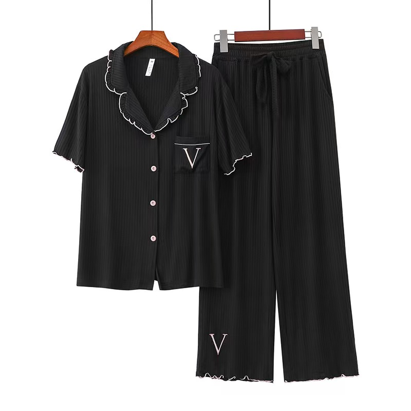 商品名称:(总)洛兰沙家居馆【只代发】【只代发】 2025新款外贸欧美风8*5宽坑条莫代尔睡衣女春夏秋开衫翻领短袖长裤家居服