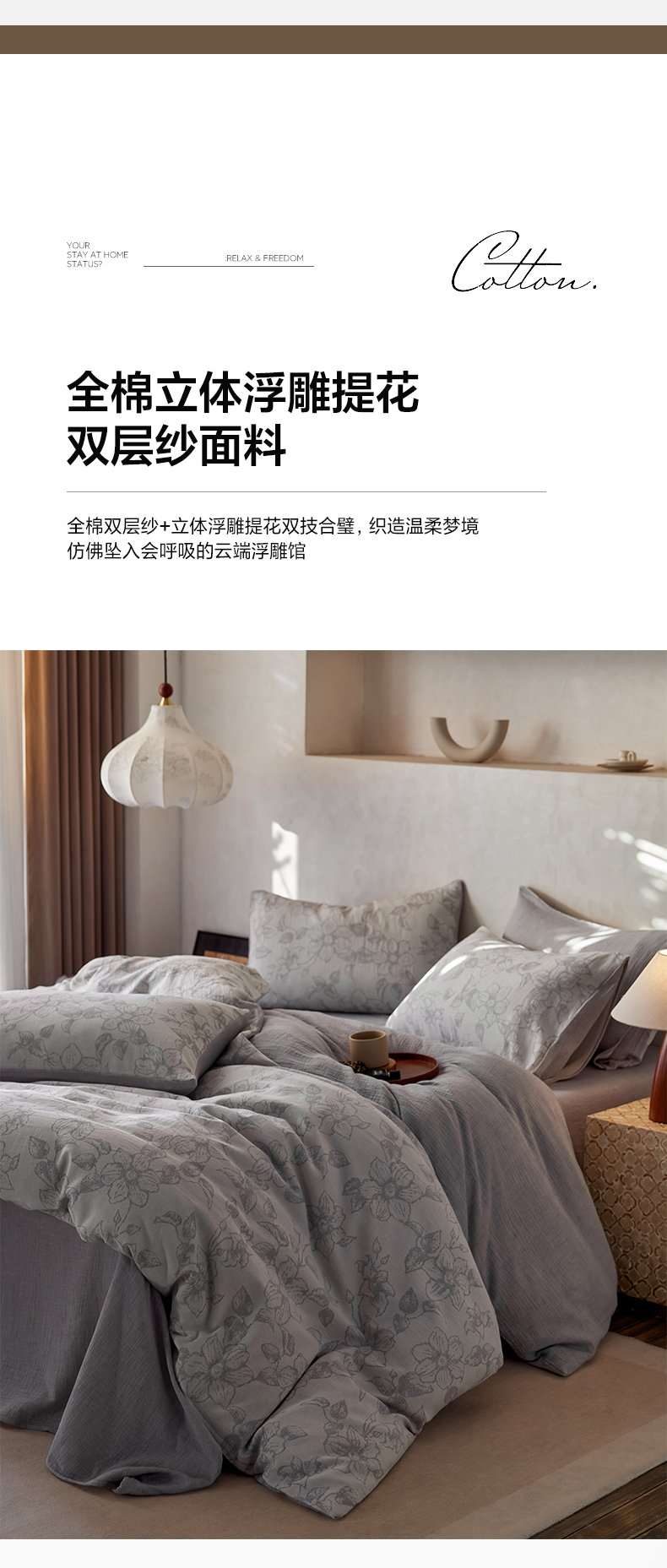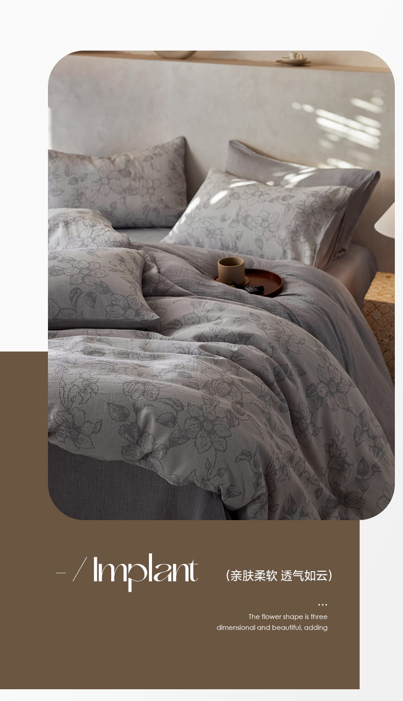 当前位置: 91家纺网 > 商品网购 > 床品套件 > 四件套 > 双层纱四件套 > 艾咪 新款全棉立体浮雕提花双层纱四件套 莫尼特-灰