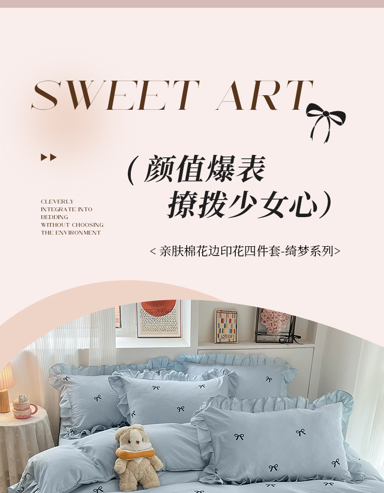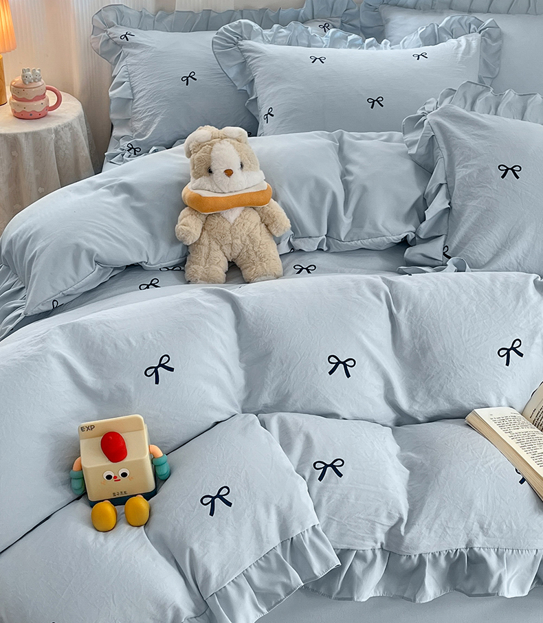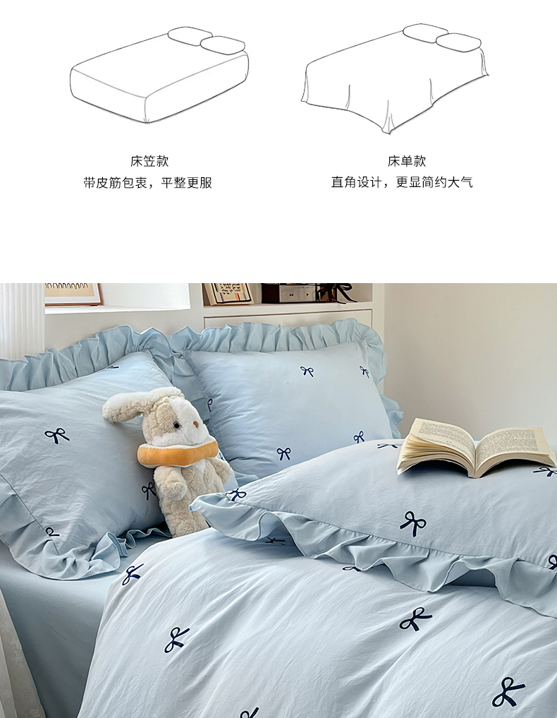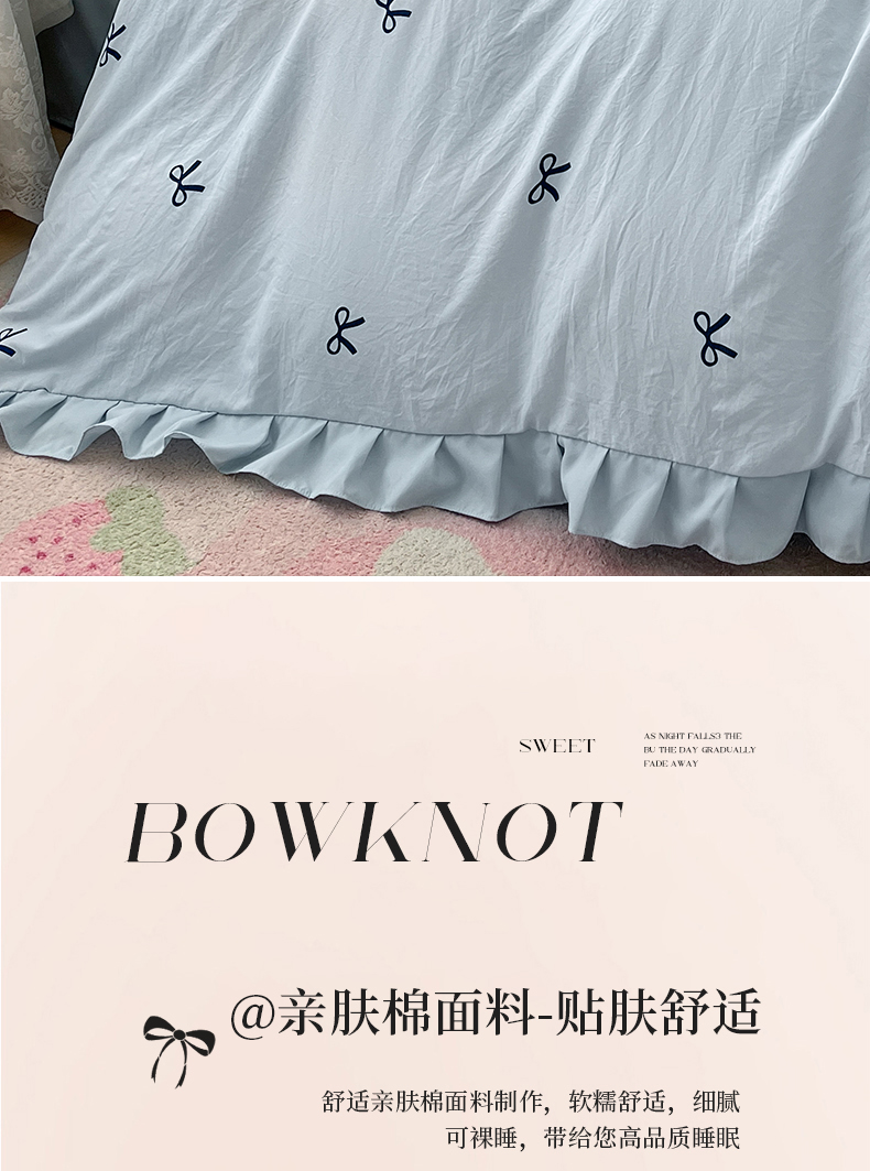 当前位置: 91家纺网 > 商品网购 > 床品套件 > 四件套 > 普通磨毛四件套 > 苏源家纺2025新款 公主风荷叶边亲肤棉磨毛四件套 绮梦-浅蓝