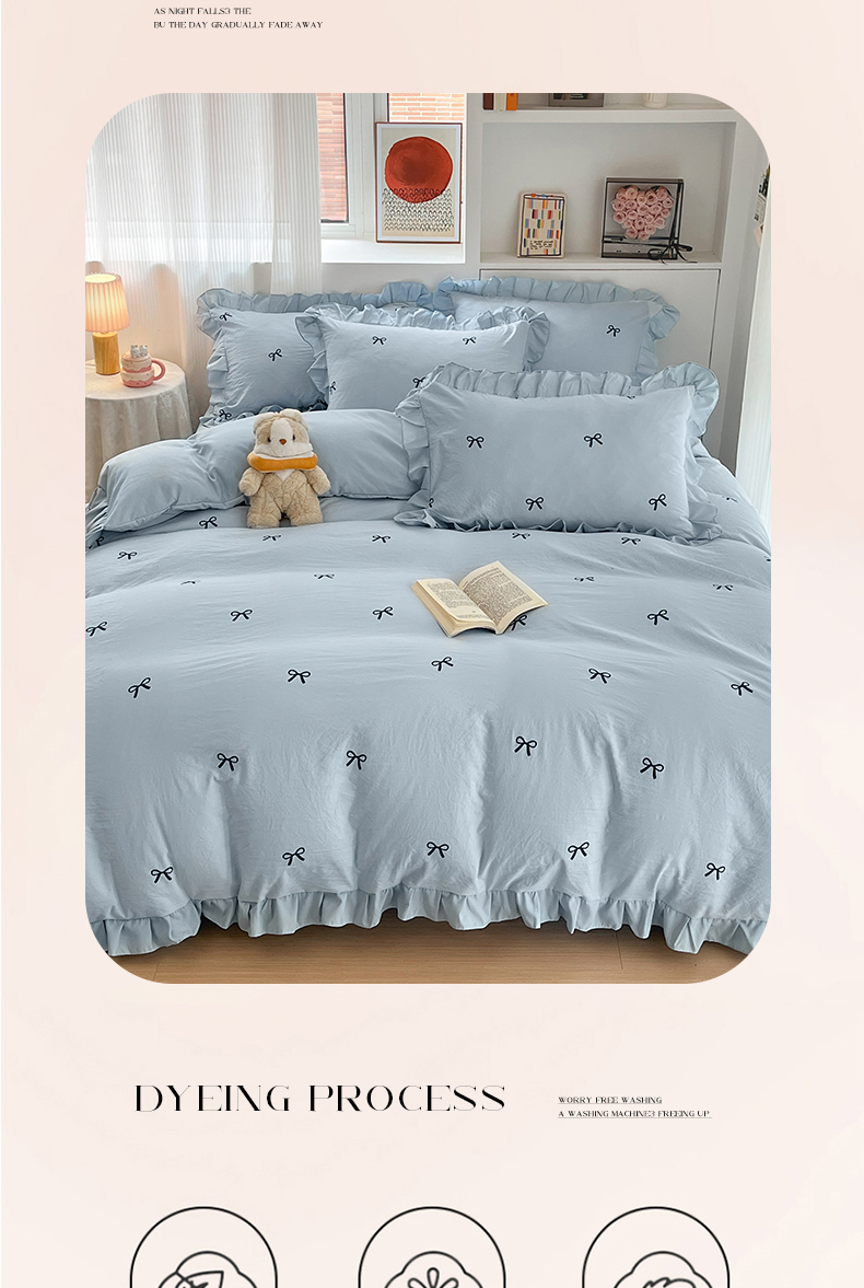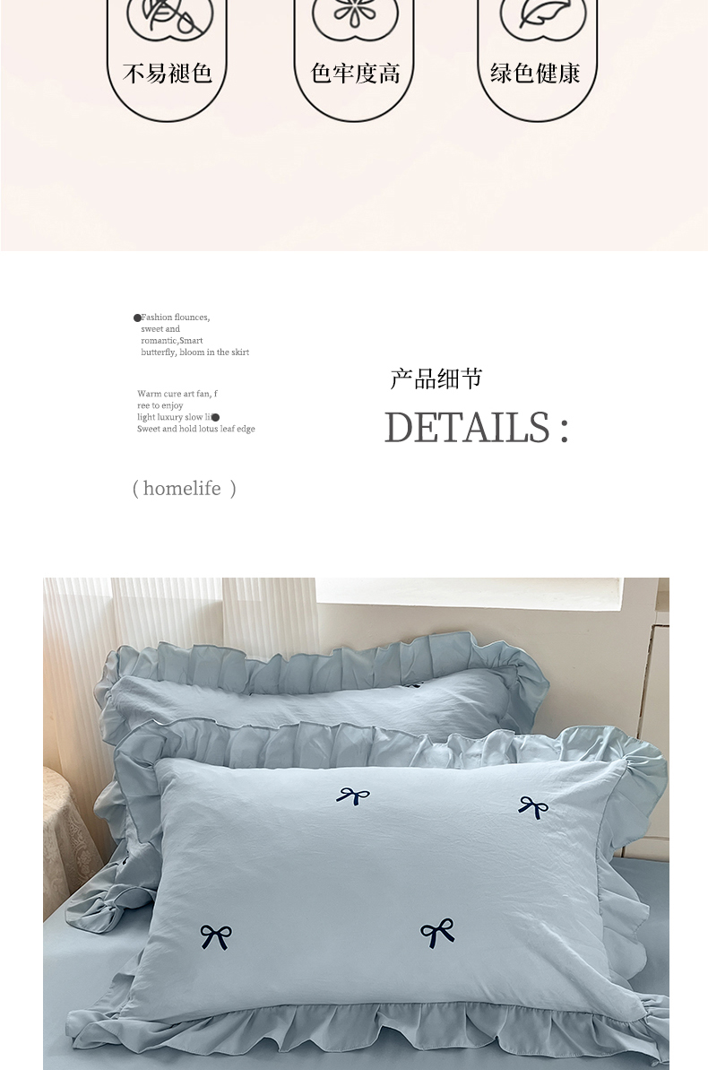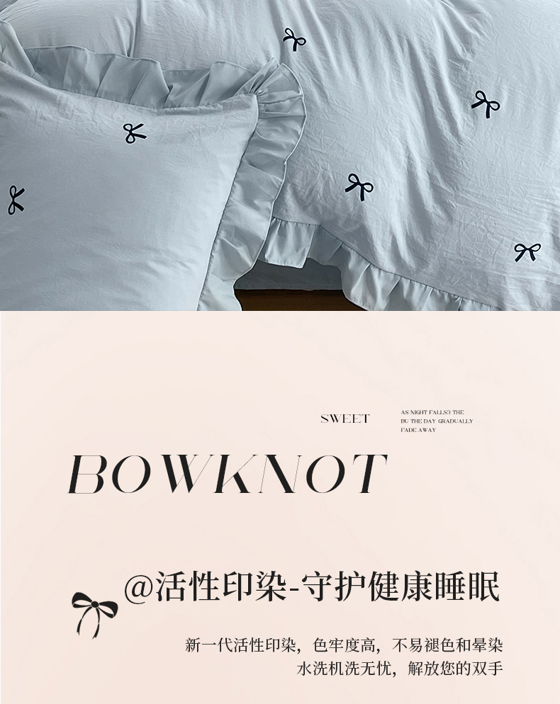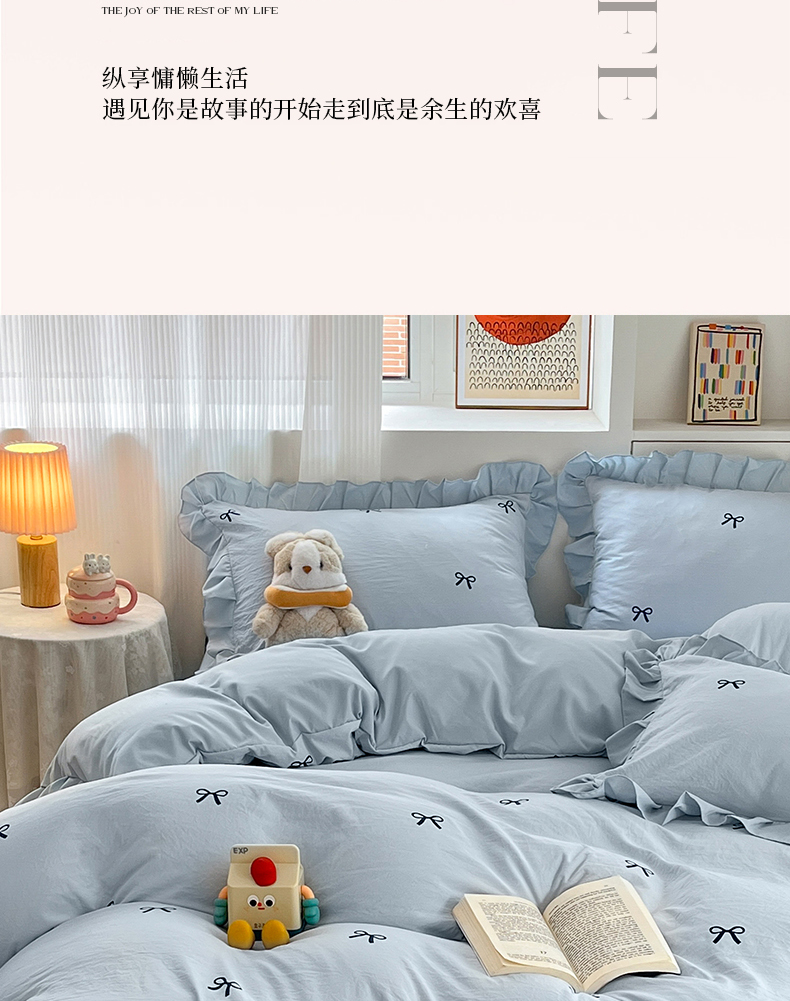 当前位置: 91家纺网 > 商品网购 > 床品套件 > 四件套 > 普通磨毛四件套 > 苏源家纺2025新款 公主风荷叶边亲肤棉磨毛四件套 绮梦-浅蓝