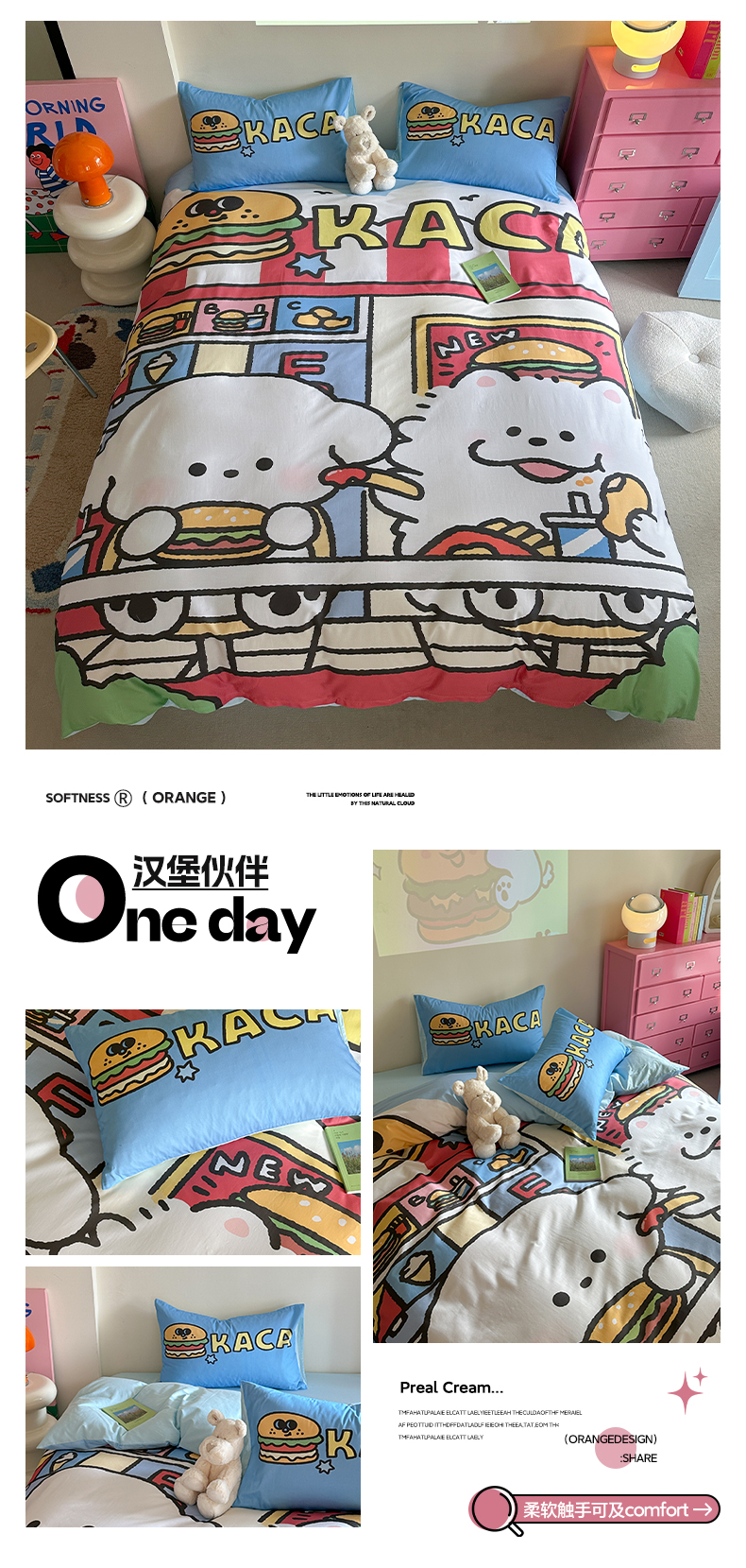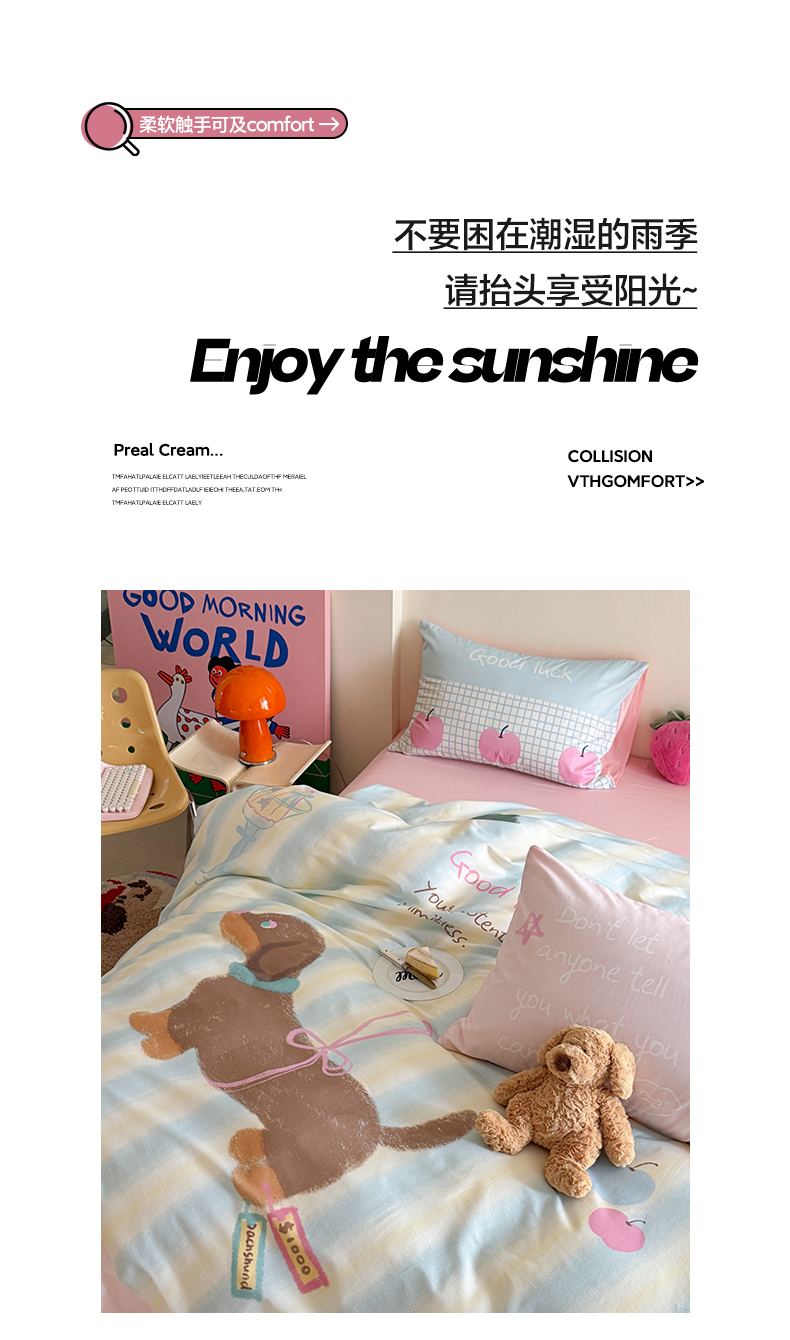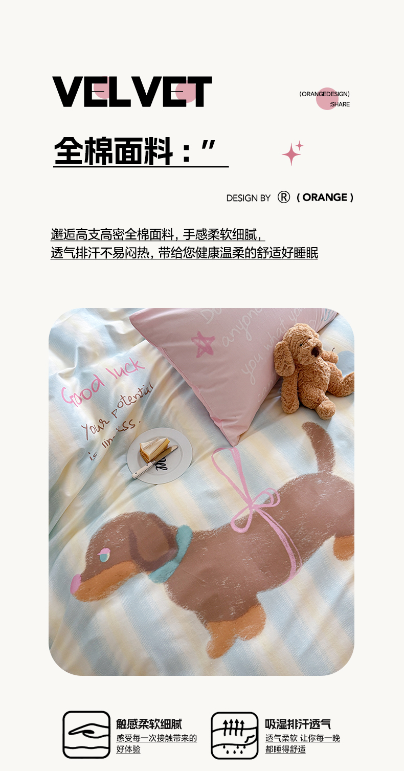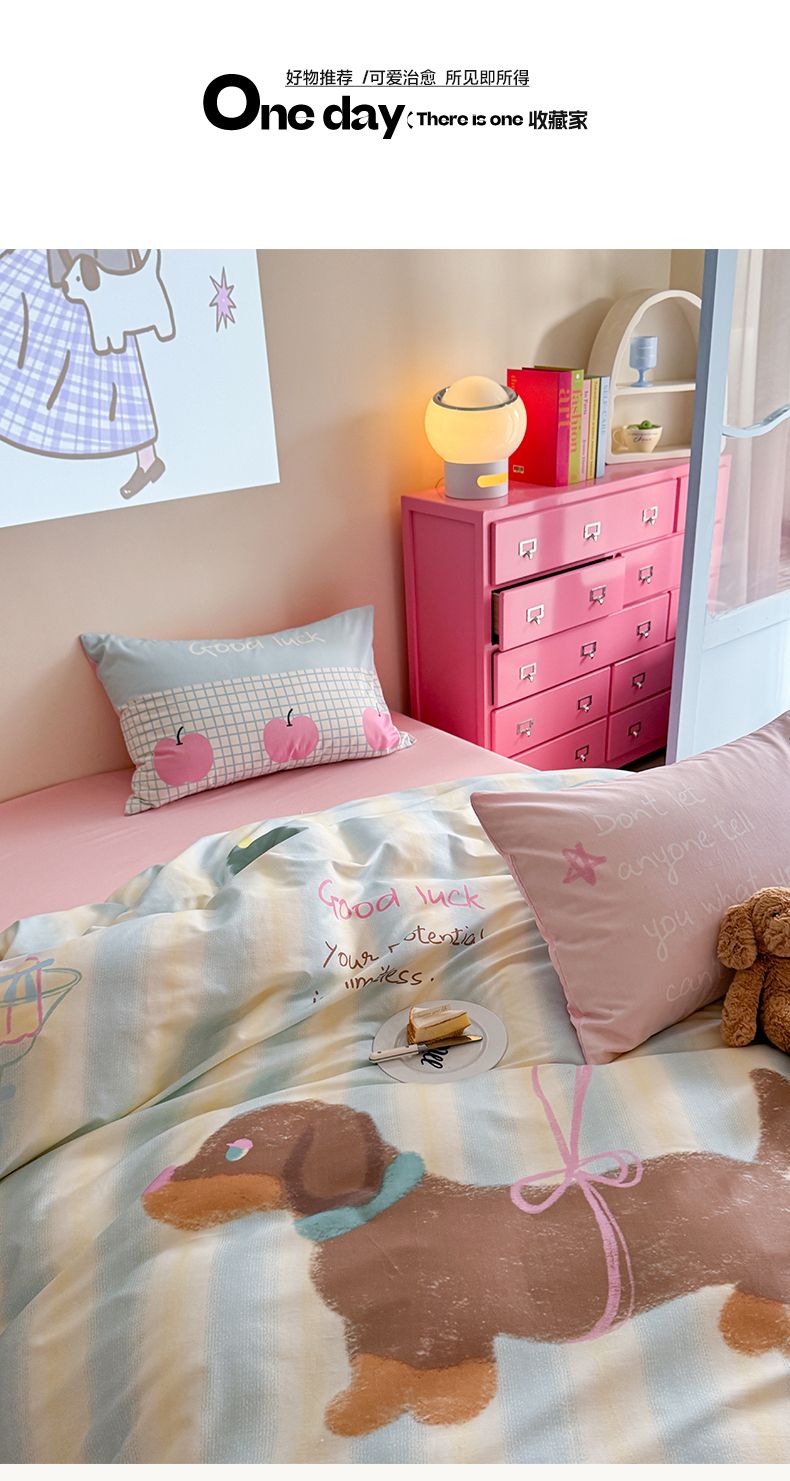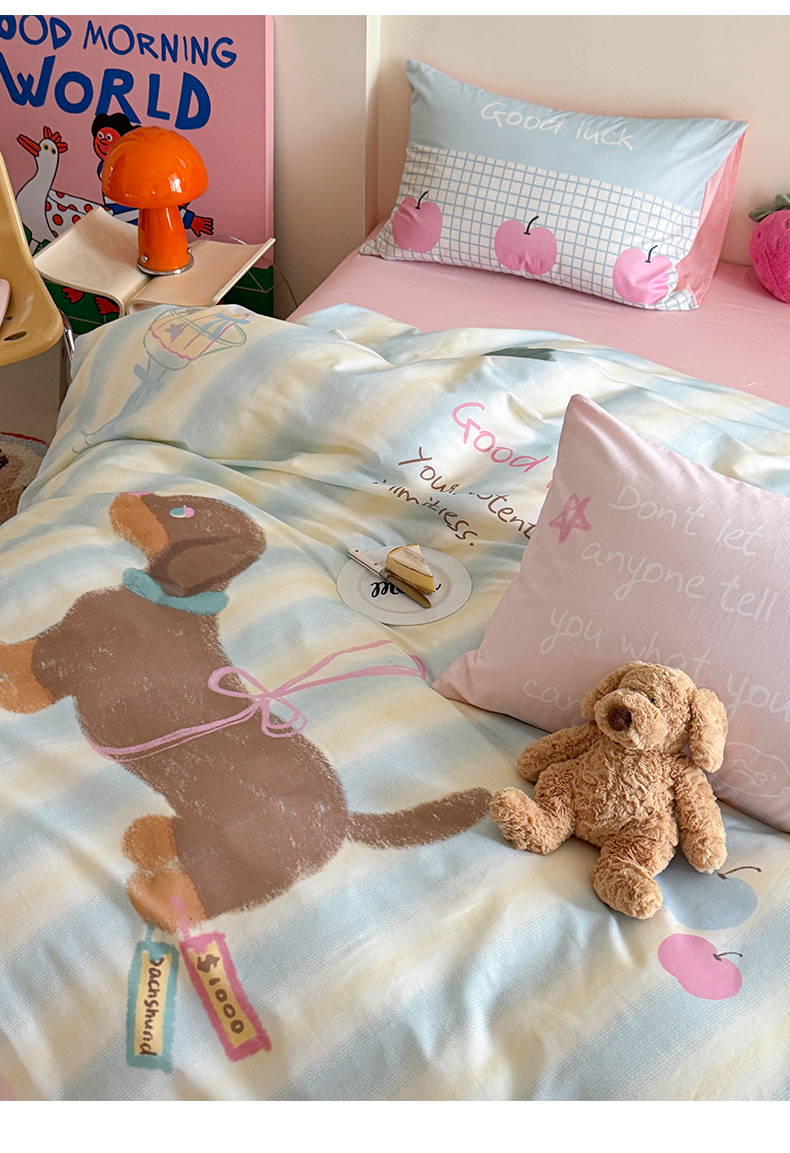 (总)美乐迪家纺 2024新款全棉印花混搭系列四件套,波点小猫,花园小狗,可爱兔,可乐汉堡,奶油狗,甜心小熊,童趣,小熊猫